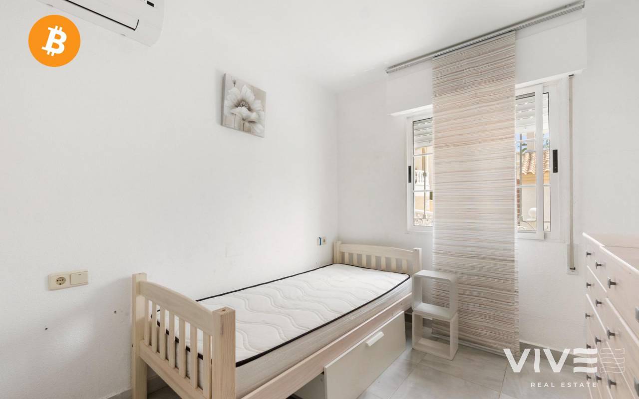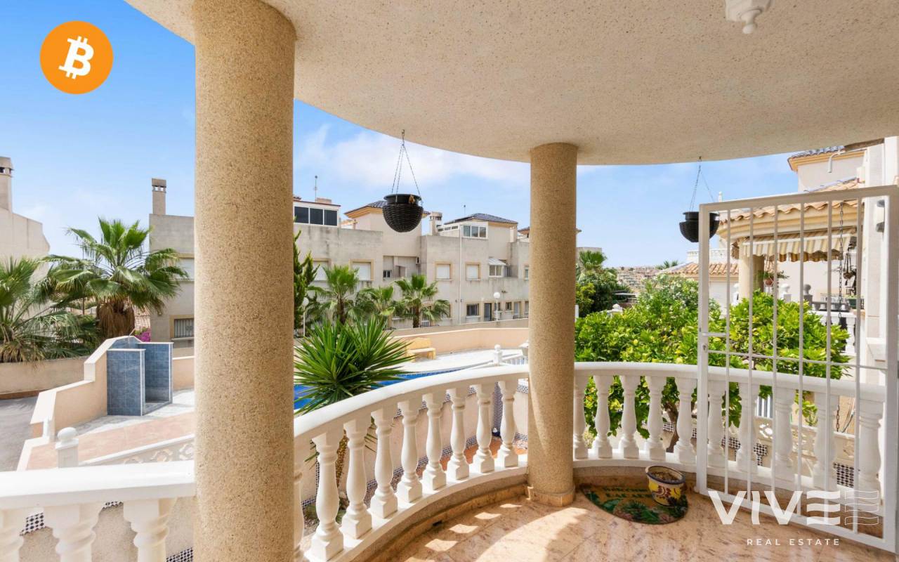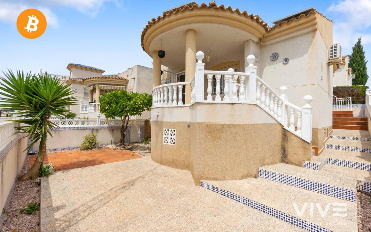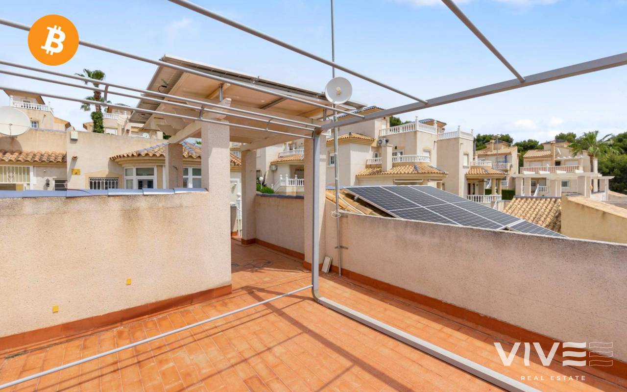 Diese Villa in der Gegend von Villamartin ist eine ausgezeichnete Option für diejenigen, die in einer privilegierten Gegend mit Golfplätzen (Villamartin Golf, Campoamor und Campoamor) leben wollen. Die Verteilung ist auf einer Etage, und es hat 2 Schlafzimmer, ein sehr geräumiges Wohnzimmer mit Küche-Esszimmer und ein Badezimmer. Auf der Sonnenterrasse (die über eine Außentreppe zu erreichen ist) können Sie in absoluter Privatsphäre ein Sonnenbad nehmen und den freien Blick auf die Umgebung und den Pool genießen. Die Größe der Villa ist mehr als ausreichend, um einen langen Urlaub zu genießen; oder um das ganze Jahr über zu wohnen. Die zentrale Lage dieser Villa in Villamartin ermöglicht es, die wichtigsten Sehenswürdigkeiten in kurzer Zeit zu erreichen: das Einkaufszentrum Boulevard (7 Minuten), den Supermarkt Mercadona (3 Minuten), lokale Bars und Restaurants, Geldautomaten und natürlich die Buchten und den Strand von La Zenia. Einen Besuch wert ist auch der bekannte Markt in Playa Flamenca (Orihuela Costa), der immer samstags stattfindet, und mischen Sie sich in die Vielfalt der Nationalitäten (Schwedisch, Englisch, Deutsch, Spanisch, Belgisch, unter anderem), die unsere Küste bereichert. Die Villa befindet sich in Villamartin, einer Gegend, die für ihre 3 Golfplätze bekannt ist: Las Ramblas, Campoamor und Villamartin Golf Platz. Es hat auch sehr einfachen Zugang zur Ausfahrt der Autobahn AP 7, mit direkter Verbindung zu den Flughäfen von Alicante (ca. 40 km) und Murcia (ca. 40 km). Die Südausrichtung macht es sehr hell und warm. Das Grundstück ist ideal für diejenigen, die gerne im Garten arbeiten, oder für diejenigen, die einen Platz zum Entspannen suchen, weit weg vom Stress des Alltags. Die Immobilie verfügt außerdem über einige interessante Extras, wie z.B.: Solaranlagen für den Eigenverbrauch, Klimaanlage warm/kalt, Sicherheitstüren, privater Garten, Abstellraum, gemeinschaftlicher Swimmingpool, der perfekt zur Abkühlung an heißen Tagen ist. Es gibt Einbauschränke, Speisekammer, Fernsehanschluss, Internet und andere Extras. Wir sind "Crypto-Friendly", wenn Sie Interesse am Kauf mit Kryptowährungen sind, zögern Sie nicht, uns für weitere Informationen zu fragen.