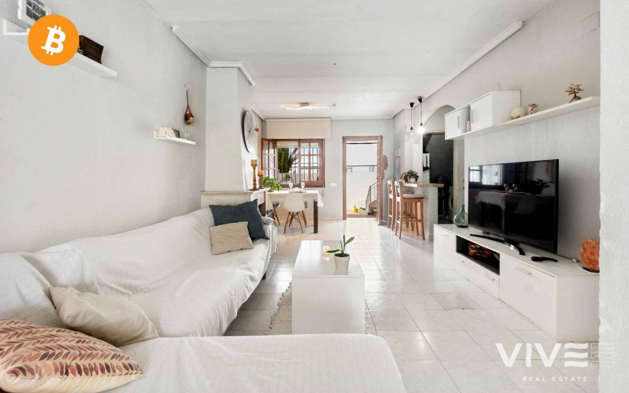 Charmantes Stadthaus im mediterranen Stil in Villamartin (Orihuela Costa), ganz in der Nähe des Golfplatzes Villamartín und des Golfclubs Campoamor. Aufgrund der Nähe zu allen grundlegenden Dienstleistungen, Supermärkten und Cafés eignet es sich perfekt zum Wohnen das ganze Jahr über. Das La Fuente liegt nur wenige entfernt Meter vom Haus entfernt finden Sie zahlreiche Geschäfte, Pubs und verschiedene Restaurants. Das Haus liegt in einer sehr ruhigen Urbanisation, umgeben von Grünflächen, ideal zum Spazierengehen, es verfügt über 67 m2 im Erdgeschoss, von der Straße aus gelangt man in einen unglaublichen 110 m2 großen Garten, perfekt, um das ganze Jahr über die Natur zu genießen. Es ist in ein Wohn-Esszimmer, ein geräumiges Doppelzimmer, ein Badezimmer und eine Küchenzeile aufgeteilt. Es gibt einen Ausgang vom Wohnzimmer zur Außenveranda mit einem weiteren kleinen Garten in Südlage. Im vorderen Bereich des Hauses mit Zugang zum Obergeschoss befindet sich eine Treppe mit Zugang zum ersten Stock (er erscheint in der Kaufurkunde nicht), ein geräumiges Zimmer mit Bad, das als genutzt werden kann Eine an das Haus angeschlossene Wohnung, ideal für den Fall, dass Sie bei Besuch mehr Privatsphäre wünschen oder diese einfach mit einem Loft nutzen möchten. Es handelt sich um ein Haus mit vielen Möglichkeiten, sowohl zum ganzjährigen Wohnen als auch als Urlaubsinvestition. Es verfügt über keinen Gemeinschaftspool, sodass die Wohnanlage das ganze Jahr über sehr wirtschaftlich ist.