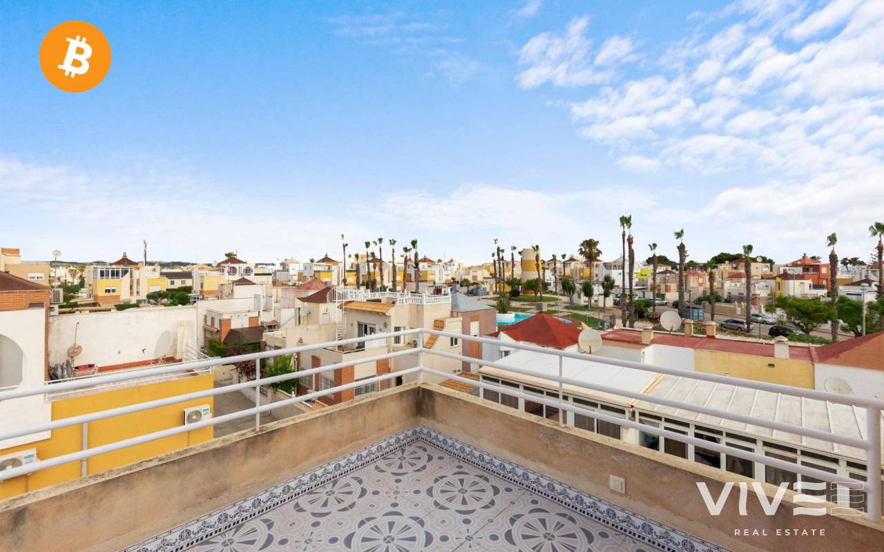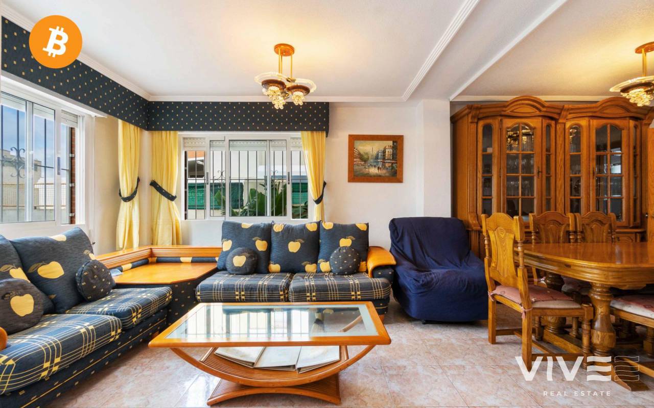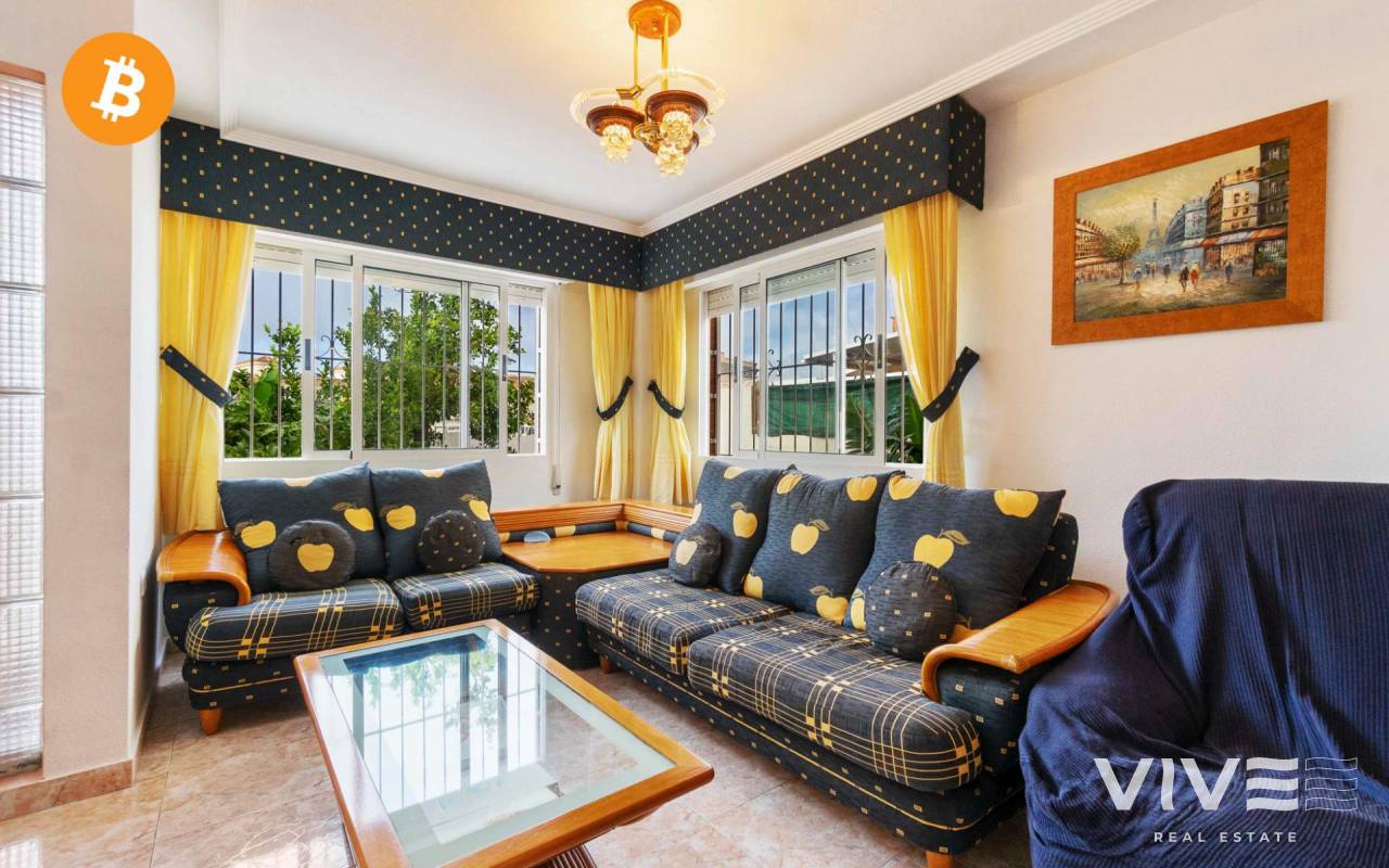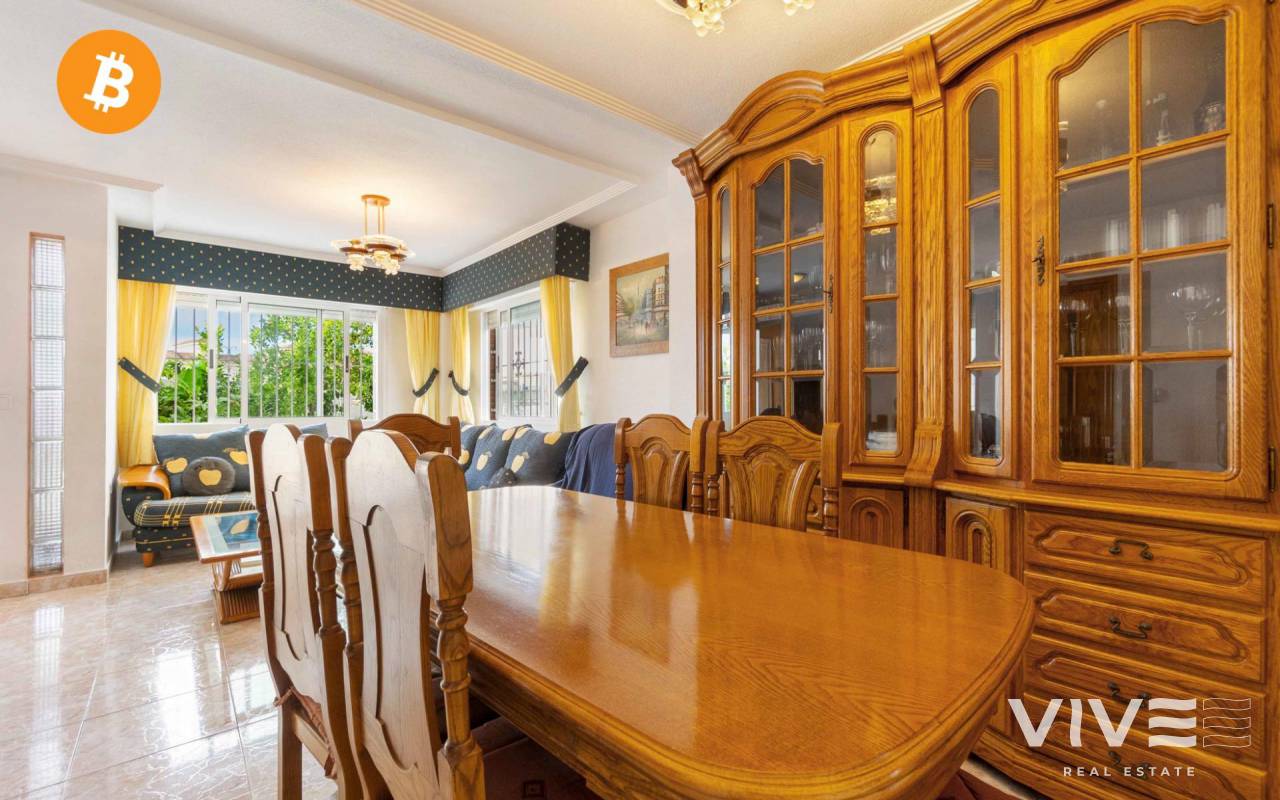 Großes Doppelhaus in der Urbanisation Altos del Mirador Orihuela Costa. Gegenüber finden wir einen perfekten Supermarkt, um nicht mit dem Auto fahren zu müssen, um Einkäufe zu erledigen. Etwa 10 Minuten zu Fuß entfernt finden wir die Urbanisation La Florida mit allen Arten von Dienstleistungen , Restaurants, Cafés, Apotheke, Supermärkte, eine Vielzahl von Kneipen und Terrassen ganztägig im Winter und Sommer sowie Linienbusse das ganze Jahr über, um sich fortzubewegen, ohne für alles das Auto nehmen zu müssen, Sie wohnen in einer ruhigen Gegend, aber mit absoluter Komfort. Das Haus liegt in einer wunderschönen Urbanisation mit Grünflächen und einem Gemeinschaftspool, es ist 106 m2 groß, es ist schwierig, in dieser Gegend so viele Meter Haus zu finden. Von der Außenstraße aus haben wir nichts zu betreten, einen großen Garten von 138 m2 mit privatem Parkplatz und perfekt, wenn Sie einen privaten Pool anlegen möchten, da wir viel Platz dafür haben, wir betreten das Haus und haben ein geräumiges Wohnzimmer Wohnzimmer, offene Küche mit Zugang zum Garten und Badezimmer. Wir gehen die Treppe hinauf in den ersten Stock und haben zwei Doppelzimmer mit einem kompletten Badezimmer. Wir gehen in den zweiten Stock und haben zwei weitere Zimmer mit einem weiteren kompletten Badezimmer im Erdgeschoss und im obersten Stockwerk, sobald wir können Finden Sie die Terrasse (Solarium), um das ganze Jahr über die Sonne zu genießen, da sie nach Südosten ausgerichtet ist. Es ist ein Zuhause für das, was Sie am meisten interessieren könnte, sowohl als Investition für Ferienvermietungen, als auch perfekt, weil es kein Problem mit dem Platz im Haus gibt, oder um das ganze Jahr über zu leben, und wenn Sie eine große Familie sind, werden Sie es nicht haben jedes Platzproblem, zusammengefasst: Ein tolles Zuhause in einer der besten Gegenden von Orihuela Costa. Summe (ibi): 241 € pro Jahr Gemeinschaft: 280 € jährlich