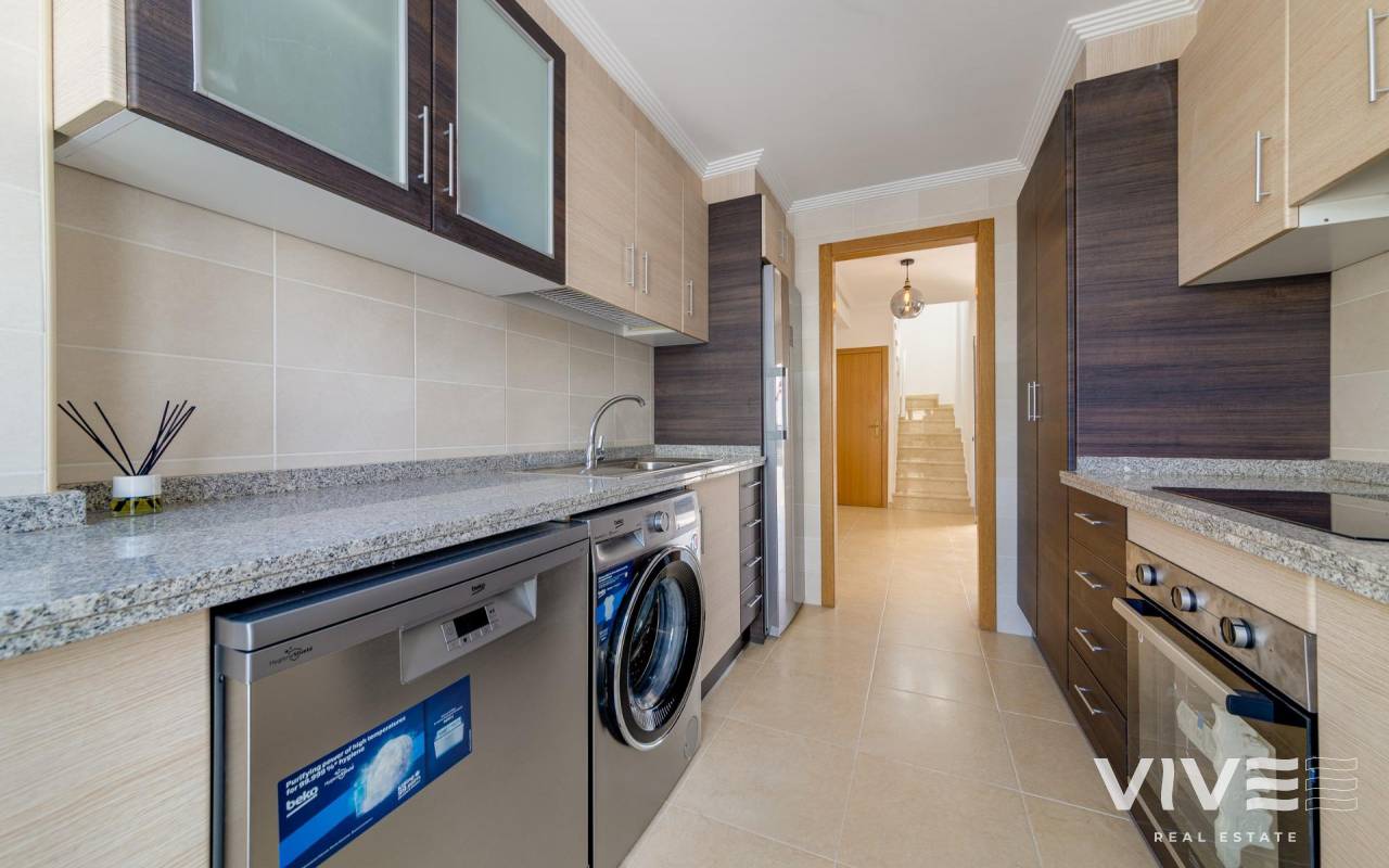 NEUBAU EINER WOHNANLAGE IN SAN FULGENCIO Wohnanlage mit unabhängigen Villen und Doppelhaushälften in San Fulgencio. Die Häuser bestehen aus 2-3 Schlafzimmern, 3 Bädern, Wohnzimmer und separater Küche, 2 Terrassen im Erdgeschoss, eine Terrasse im 2. Stock und ein Solarium auf dem Dach. Jedes Haus hat einen privaten Garten und einen Parkplatz. Es gibt einen großen gemeinschaftlichen Swimmingpool. San Fulgencio ist eine komfortable und bequeme Gegend, bekannt für seine hervorragende Infrastruktur. In unmittelbarer Nähe von Cafés, Restaurants, Bars, Apotheken, 3 große Supermärkte: Lidl, Aldi, Mercadona. Die Wohnanlage befindet sich 10 Autominuten vom Strand und ebenfalls 10 Minuten vom berühmtesten Freizeit- und Familienzentrum dieser Gegend ¨La Marina Resort¨ mit einem Wasserpark, Camping, Fitnessstudio, Spa, Restaurants, Geschäften und Cafés. Die Wohnanlage hat eine einzigartige Lage - 30 Minuten mit dem Auto vom Flughafen, 40 Minuten von der Stadt Alicante und 20 Minuten von der Stadt Torrevieja.