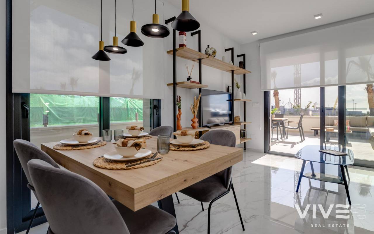 NEUBAU WOHNANLAGE IN PLAYA FLAMENCA Neubau-Luxus-Komplex von Wohnungen mit 2 Schlafzimmern, 2 Bädern und großen Terrassen in Playa Flamenca in der Nähe des Meeres gelegen. Die meisten Wohnungen haben einen Blick aufs Meer! Sie können wählen zwischen Wohnungen im Erdgeschoss mit Garten, Wohnungen im ersten und zweiten Stock mit Terrasse, oder Penthäuser (mit Solarium) im dritten Stock. Alle Wohnungen verfügen über eine Tiefgarage und einen geschlossenen Abstellraum. Der Komplex bietet Ihnen auch einen Gemeinschaftspool mit Grünflächen, einen Fitnessraum mit Sauna, einen Kinderspielplatz und einen Pentaquin-Bereich. Playa Flamenca ist eine ruhige, strandnahe Wohnsiedlung, 40 Autominuten vom Flughafen Alicante und 15 Autominuten von der belebten Stadt Torrevieja entfernt. Die Wohnsiedlung mit Apartments und Villen liegt an einem gepflegten kleinen Strand, an dem in den Sommermonaten Sonnenliegen gemietet werden können. Auf der anderen Seite der Hauptstraße, im Landesinneren der Anlage, befindet sich ein großes modernes Einkaufszentrum mit einem großen Supermarkt, vielen Restaurants und Bars, Banken, Friseuren und Boutiquen. Drei Meisterschaftsgolfplätze sind nur 10 Autominuten von der Anlage entfernt, darunter der fabelhafte Villamartin, der häufig Austragungsort der Mediterranean Open ist. Der Golfplatz von Campoamor liegt inmitten von Palmen und Pinien und ist eine Schönheit; der nahe gelegene Las Ramblas ist ein weiterer großartiger Platz und ein echter Test für die Golfkünste.