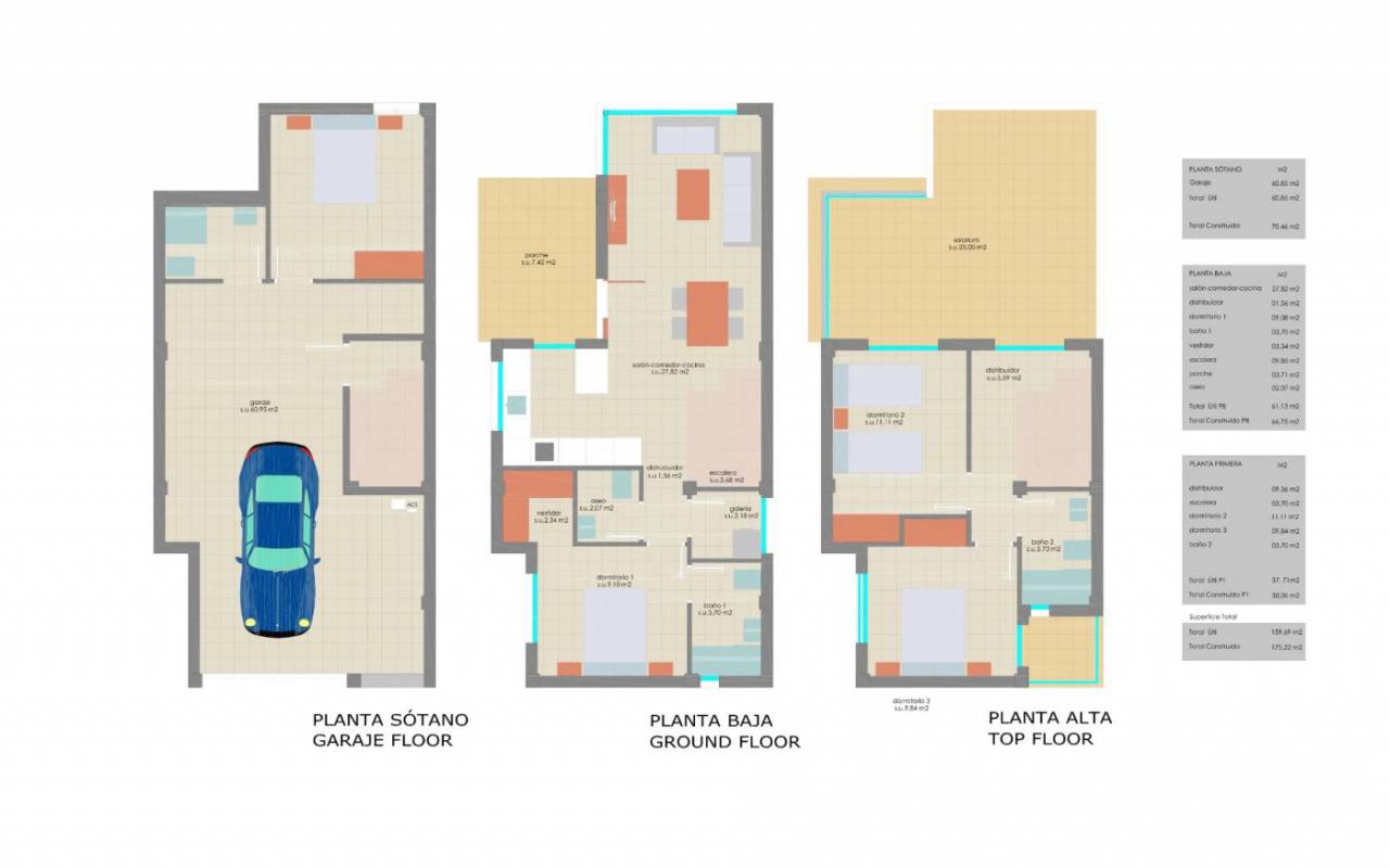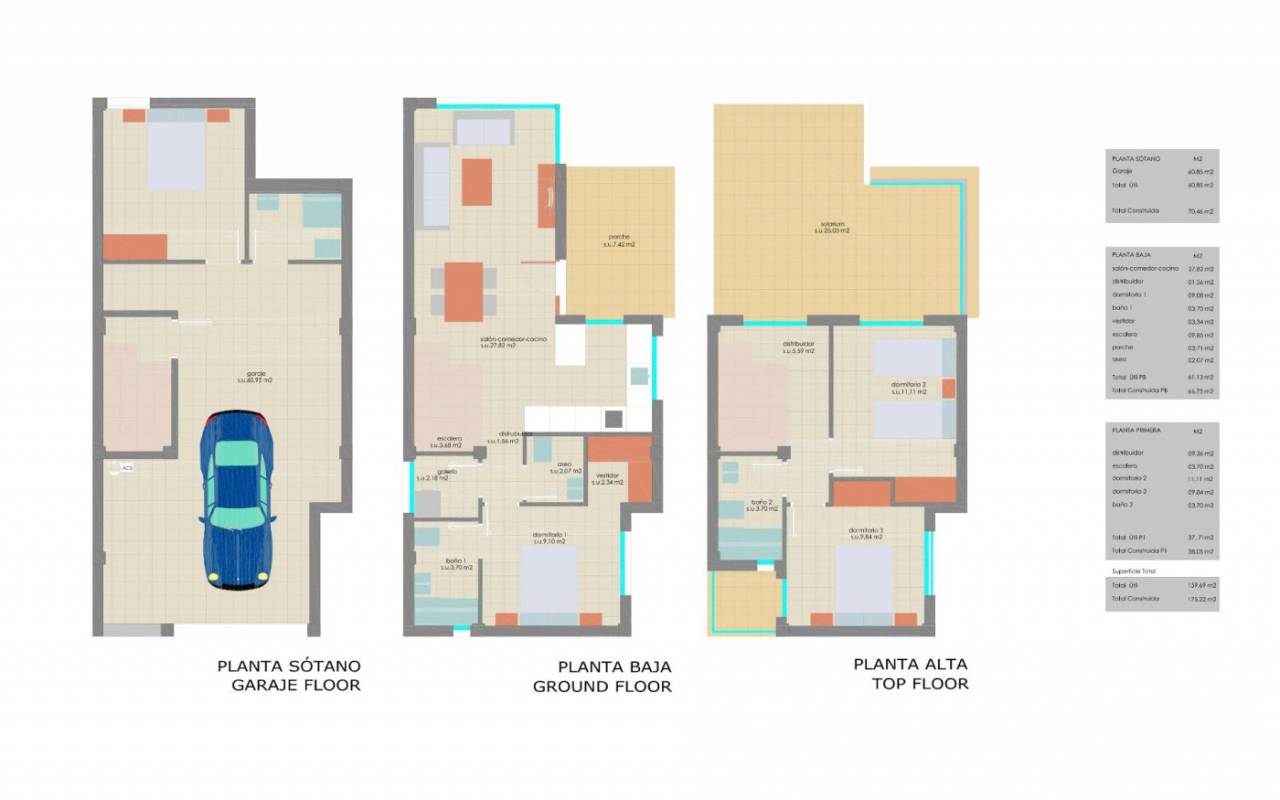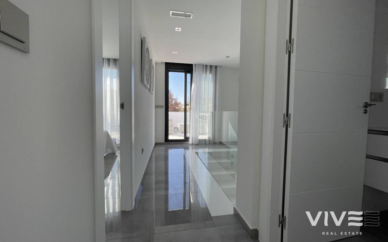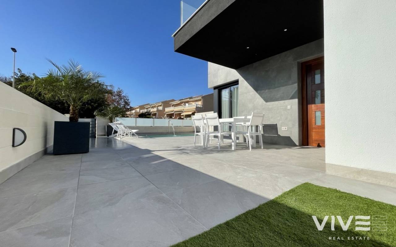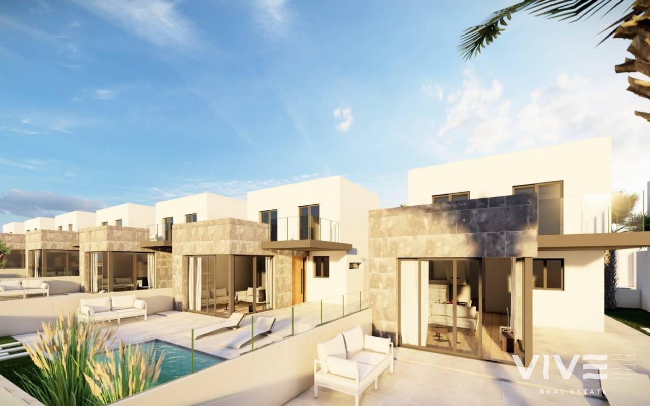 NEU GEBAUTE VILLEN IN LOS ALTOS DE TORREVIEJA Erstaunliche Neubauvillen mit herrlichem Blick in Los Altos, Torrevieja. Die Villen bauen auf Grundstücken zwischen 177 - 254 m2 und sind über zwei Etagen plus Keller verteilt, mit 3 Schlafzimmern, 2 Bädern, Gäste-WC, privatem Pool und Solarium. Im Erdgeschoss gibt es einen offenen Grundriss zwischen dem Wohnzimmer und der Küche, 1 geräumiges Schlafzimmer mit eigenem Bad und begehbarem Kleiderschrank, sowie eine Gästetoilette. Auf der zweiten Etage befinden sich 2 geräumige Schlafzimmer mit Einbauschränken und Ausgang zu einer großen Terrasse, auf der man den ganzen Tag die Sonne genießen kann. Die Villen werden mit einem privaten Swimmingpool, einer Garage im Untergeschoss, einem fertigen Garten mit Kunstrasen und einer vorinstallierten Klimaanlage im Wohnzimmer und den Schlafzimmern geliefert. In der Umgebung finden Sie Restaurants, Supermärkte, Cafés und alle Annehmlichkeiten, die Sie brauchen könnten. Die schönen Strände in Torrevieja - La Veleta, de los Naufragos oder Acequion - sind in wenigen Minuten mit dem Fahrrad oder Auto zu erreichen. Torrevieja ist eine spanische Stadt in der Provinz Alicante, an der Costa Blanca. Sie ist bekannt für ihr typisch mediterranes Klima und ihre Küstenlinie. Entlang der Sandstrände gibt es Strandpromenaden mit Ferienanlagen. Das kleine Museum des Meeres und des Salzes beherbergt Ausstellungen über die Geschichte der Fischerei und des Salzes in der Stadt. Im Landesinneren befindet sich der Naturpark Lagunas de La Mata-Torrevieja mit Wanderwegen und zwei salzhaltigen Lagunen, von denen eine rosa und die andere grün ist. Der Flughafen Alicante ist 40 Minuten und der Flughafen Murcia etwa 1 Stunde entfernt.