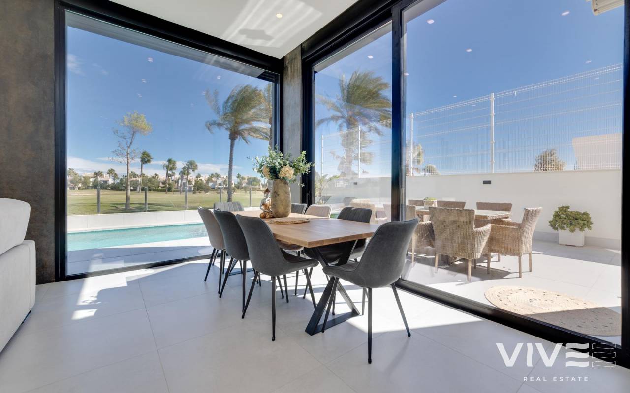 NEUBAU-VILLEN IN PILAR DE LA HORADADA AM GOLFPLATZ Neubau einer Wohnanlage mit 6 freistehenden Villen in Pilar de la Horadada. Neubau einer Ebene Villen verfügt über 3 Schlafzimmer, 2 Bäder, Gäste-WC, offene Küche mit dem Wohnbereich, Einbauschränke, privater Garten mit privatem Pool und abseits der Straße Parkplatz. Pilar de la Horadada ist die südlichste Stadt und Gemeinde an der Costa Blanca in der Provinz Alicante. Die Stadt befindet sich an der Grenze zwischen der Comunidad Valenciana und der Region Murcia. Die Stadt Pilar de la Horadada ist eine typisch spanische Stadt, die nur 2 km von der Küste und den beliebten Stränden von Torre de la Horadada entfernt liegt. Im Zentrum von Pilar de la Horadada finden Sie alle Annehmlichkeiten: Geschäfte, Konditoreien, Banken, etc. entlang der Hauptstraße 'Calle Mayor'. Auch in der Nähe der örtlichen Kirche auf der Plaza de la Iglesia, wo sich mehrere Cafés befinden, werden Sie eine wunderbare Atmosphäre erleben. In Pilar de la Horadada gibt es auch ein gut ausgebautes Rad- und Wanderwegenetz, und es gibt ein großes Angebot an verschiedenen sportlichen Aktivitäten. Der 18-Loch-Golfplatz Lo Romero ist nur eine kurze Autofahrt vom Ort entfernt. Die Flughäfen von Corvera (Murcia) und Alicante sind 40 bzw. 55 Minuten entfernt.