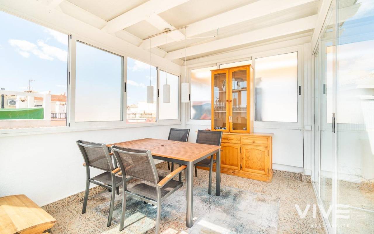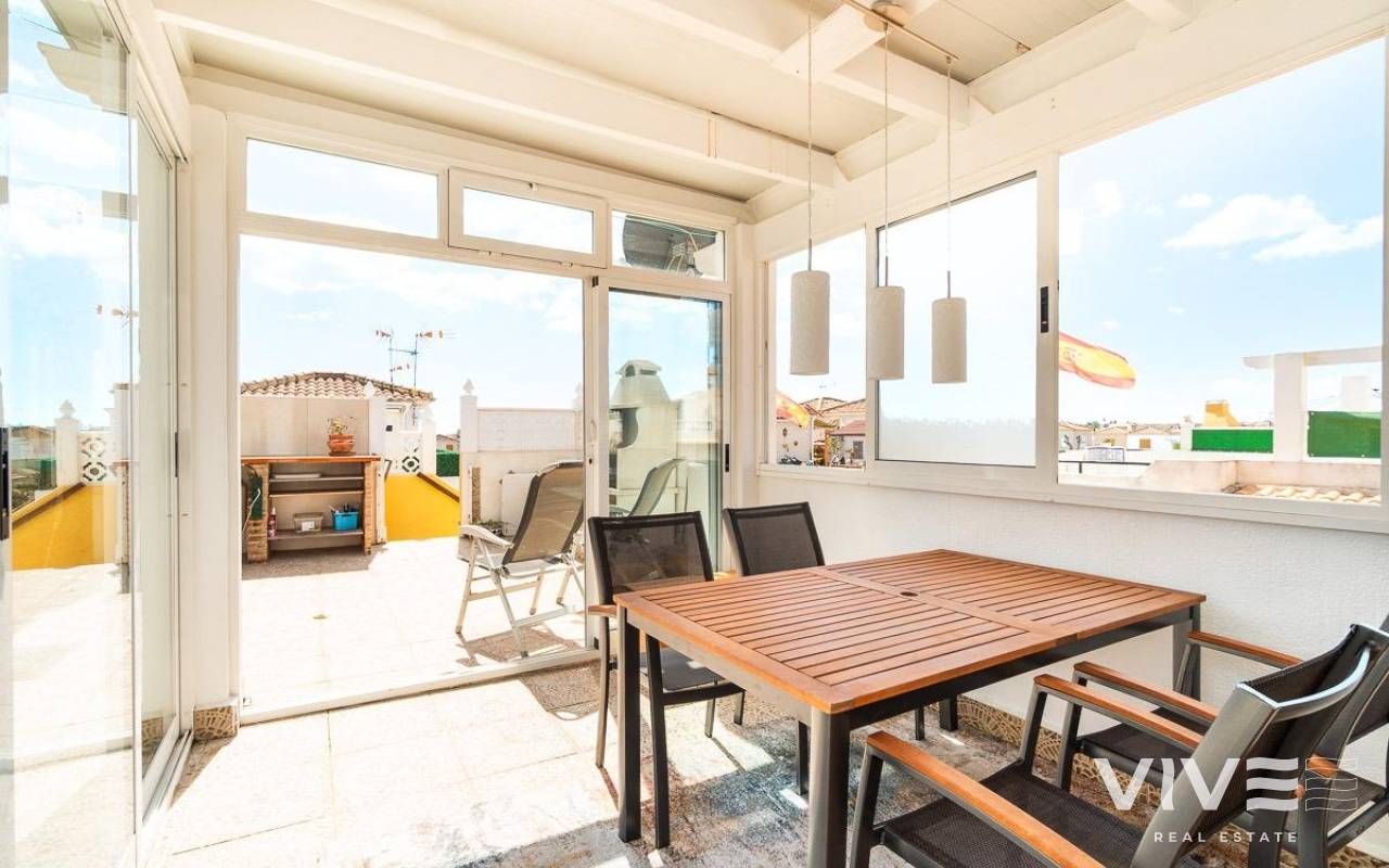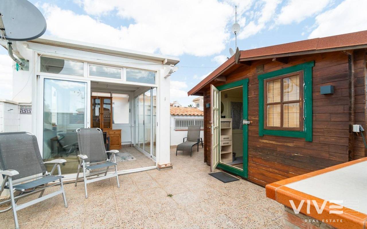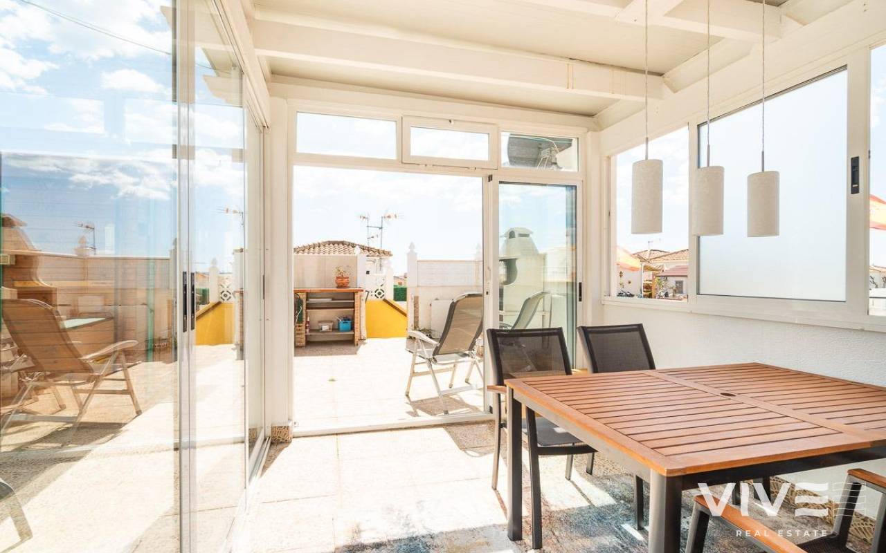 Dieses charmante Stadthaus in Playa Flamenca ist ein Rückzugsort voller Ruhe und Komfort, an dem sich jeder Tag wie ein Urlaub am Meer anfühlt. Gelegen in einer gepflegten und ruhigen Wohnanlage, befindet es sich weniger als 500 Meter von den Stränden von Playa Flamenca und den Buchten von La Mosca entfernt, wo das sanfte Rauschen der Wellen eine perfekte Atmosphäre schafft.. . Nur wenige Gehminuten entfernt bieten das Einkaufszentrum La Mosca und La Zenia Boulevard alles, was das Herz begehrt: Geschäfte, Restaurants mit vielfältigen Spezialitäten, Supermärkte und wichtige Dienstleistungen. Und wenn der Abend kommt, laden die nahegelegenen Bars und Terrassen dazu ein, die mediterrane Atmosphäre zu genießen.. . Im Inneren des Hauses erfüllt natürliches Licht jeden Raum und schafft eine gemütliche und entspannte Umgebung. Der private Garten ist ein kleines Paradies, mit einem bezaubernden Holzhäuschen, das zusätzlichen Charme verleiht. Auf dem Solarium gibt es ein verglastes Zimmer – ein vielseitiger Raum, der sich ideal als Chill-out-Bereich oder drittes Schlafzimmer eignet, perfekt zum Entspannen und um die frische Meeresbrise zu spüren.. . Die Abende hier sind besonders: Lachen und gute Gespräche auf der Terrasse beim Grillen, während man unvergessliche Momente mit Familie und Freunden teilt. Und wenn die Sonne brennt, ist der Gemeinschaftspool mit großzügigen Grünflächen der ideale Ort, um sich abzukühlen und zu entspannen.. . Ein Zuhause für alle, die Lebensqualität, Ruhe und die Schönheit des Mittelmeers direkt vor der Tür suchen. Ein Ort, an dem jeder Sonnenaufgang neue Erlebnisse und unvergessliche Erinnerungen mit sich bringt.