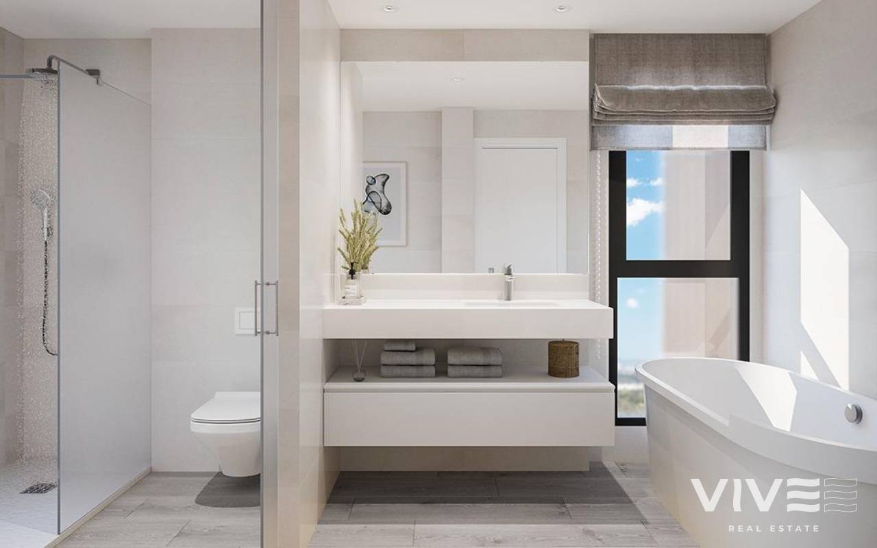 Reihenhäuser und Doppelhaushälften in Cabo de las Huertas, Alicante Hochwertige Immobilien in der besten Wohngegend von Alicante Diese exklusive Wohnanlage in Cabo de las Huertas, Alicante, bietet 14 Reihen- und Doppelhaushälften mit 4 und 5 Schlafzimmern in einer der begehrtesten Gegenden der Stadt, zwischen den Stränden Playa de la Albufereta und Playa de San Juan. Nur 300 Meter vom Meer entfernt, umgeben von natürlichen Buchten, Dienstleistungen, Schulen und Einkaufsmöglichkeiten, verbindet dieses Projekt Ruhe, Komfort und eine hervorragende Anbindung an das Zentrum von Alicante. Modernes Design mit funktionalen Räumen Jede Wohnung verfügt über ein Untergeschoss, einige Einheiten mit Keller, Erdgeschoss, Obergeschoss und Solarium und bietet viel Platz, Privatsphäre und vielfältige Wohnmöglichkeiten für den Alltag. Darüber hinaus verfügen alle Wohnungen über einen privaten Garten und die Möglichkeit eines eigenen Pools. Zu den Gemeinschaftsbereichen gehören ein Gemeinschaftspool und Grünflächen, ideal, um das mediterrane Klima in einer ruhigen und familiären Umgebung zu genießen. Hochwertige Ausstattung und Energieeffizienz Die Wohnungen wurden mit hochwertigen Materialien und Systemen ausgestattet, die Energieeffizienz und Komfort das ganze Jahr über garantieren: Individuelle Aerothermie für Warmwasser Klimatisierung über Kanäle und Fußbodenheizung im gesamten Wohnbereich, außer im Keller Sicherheitstür und Fenster mit thermischer Trennung, Doppelverglasung und motorisierten Rollläden Moderne Badezimmer mit Duschwanne, Trennwänden, Möbeln und großformatigen Spiegeln Alle Terrassen mit Beleuchtung und Steckdosen; im Erdgeschoss und auf der separaten Sonnenterrasse sind Wasseranschlüsse vorhanden. Wichtige Entfernungen: Nächster Strand: 0,3 km Zentrum von Alicante: 6 km Einkaufszentrum Gran Vía: 4 km Golfplatz Alicante Golf: 3 km Yachthafen von Alicante: 6,5 km Flughafen Alicante-Elche: 23 km TRAM und Bushaltestelle: weniger als 500 m Ein mediterranes Leben Cabo de las Huertas steht für Exklusivität, Natur und hochwertige Dienstleistungen. Diese Wohnanlage ist perfekt für alle, die in Meeresnähe leben möchten, ohne auf die Vorteile einer modernen Stadt verzichten zu müssen. In der Umgebung befinden sich renommierte Schulen, Universitäten, Einkaufszentren, Kultur- und Sportanlagen sowie eine gute Anbindung an Autobahnen, Hochgeschwindigkeitszüge und den internationalen Flughafen. Verpassen Sie nicht die Gelegenheit, in einer der privilegiertesten Gegenden Alicantes zu leben. Kontaktieren Sie uns noch heute, um einen Besichtigungstermin zu vereinbaren und Ihr neues Zuhause in Cabo de las Huertas zu entdecken.