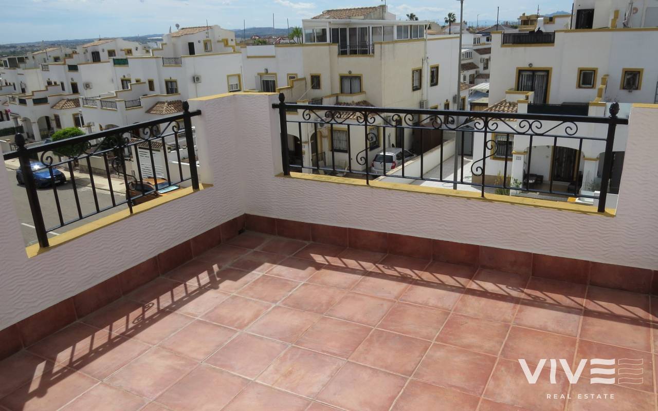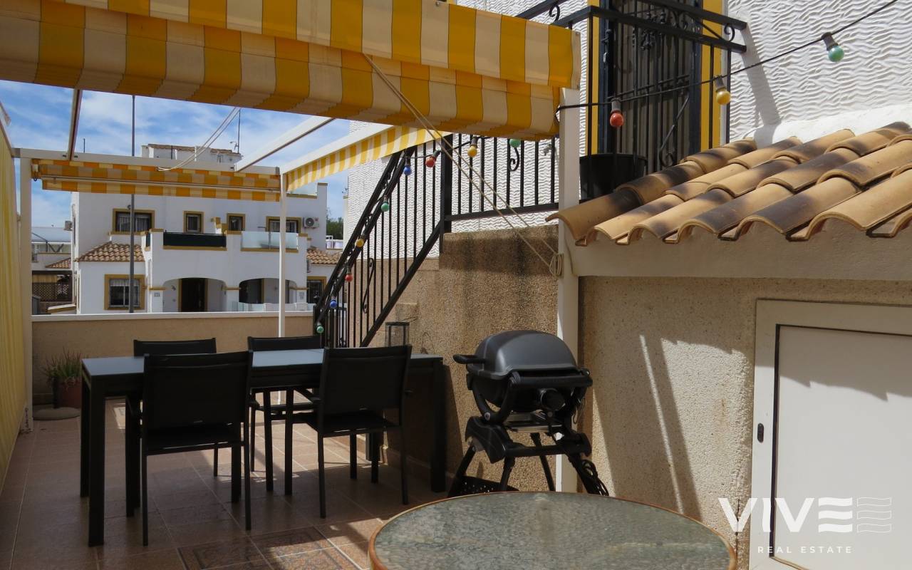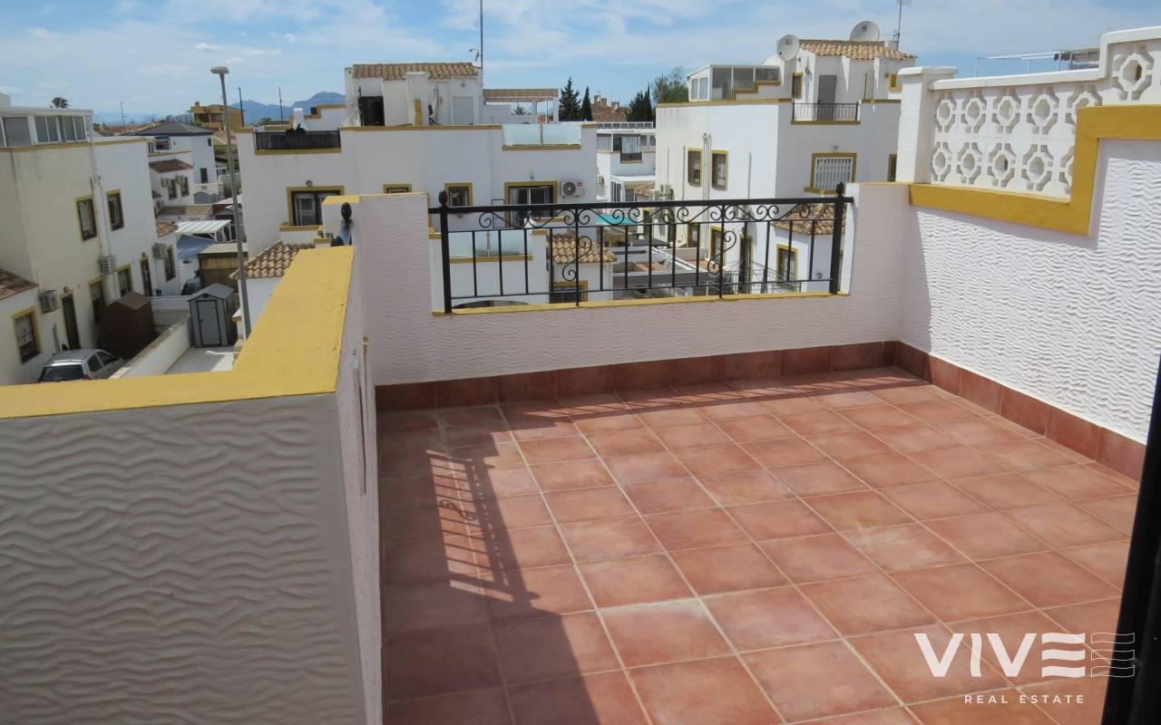 Dieses gepflegte Quad-Haus befindet sich in der begehrten Urbanisation „La Marina“ in San Fulgencio. Diese ruhige, aber zentral gelegene Wohngegend bietet eine große Auswahl an Bars, Restaurants, Geschäften, Fachgeschäften und vielem mehr. Dank der zentralen Lage sind Sie nie weit entfernt von zahlreichen Städten, Sehenswürdigkeiten, Naturgebieten, Golfplätzen usw. Nicht zu vergessen sind die schönen Sandstrände, die diese Region zu bieten hat! Das Haus gehört zu einer kleinen Gemeinschaft, die sich einen großen Garten mit Swimmingpool teilt, der in den heißen Sommermonaten für angenehme Abkühlung sorgt. Das Haus selbst verfügt über einen großen Vorgarten/Terrasse mit Platz zum Parken Ihres Autos, falls Sie dies wünschen. Außerdem gibt es entlang des Hauses eine höher gelegene Terrasse mit Sonnensegeln, auf der Sie mit der ganzen Familie oder mit Freunden gemütlich essen können. Bevor Sie das Haus betreten, haben Sie noch eine gemütliche Balkonterrasse mit Blick auf den Vorgarten und die unmittelbare Umgebung. Danach betreten Sie das Haus und werden in einem geräumigen Wohn-/Esszimmer empfangen, das Zugang zur Küche bietet. Über einen kleinen Flur gelangen Sie zu einem Schlafzimmer und einem Badezimmer im Erdgeschoss. Im ersten Stock finden Sie ein weiteres Schlafzimmer, ein Familienbadezimmer und das Hauptschlafzimmer, das Zugang zu einer privaten Terrasse mit schöner Aussicht auf die Umgebung bietet. Danach können Sie noch eine Etage höher gehen, wo Sie das geräumige, sonnendurchflutete Solarium mit herrlichem Blick auf die Umgebung und die Berge finden. All diese Vorzüge machen dieses Haus zum perfekten Ferien- oder Dauerwohnsitz. Zögern Sie nicht und vereinbaren Sie schnell einen Besichtigungstermin! Suma: 290 Euro/Jahr Gemeinschaftsgebühren: 300 Euro/Jahr