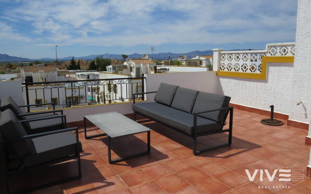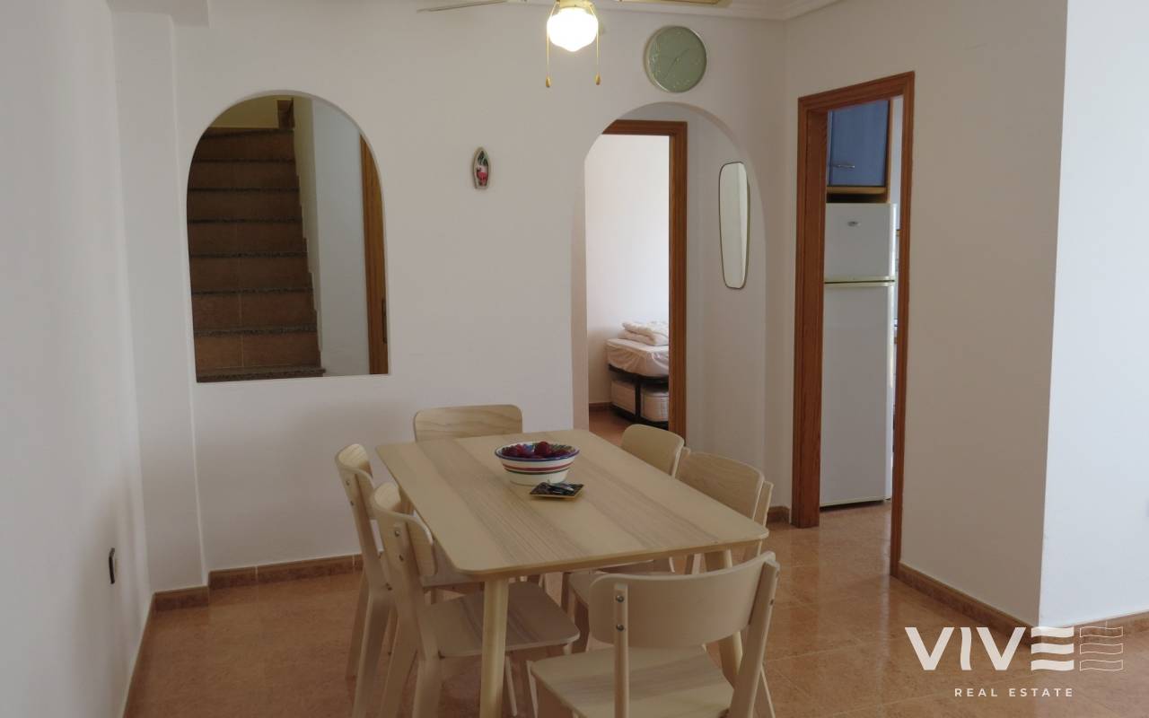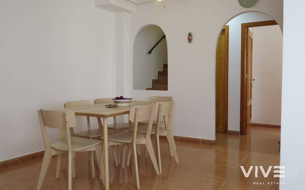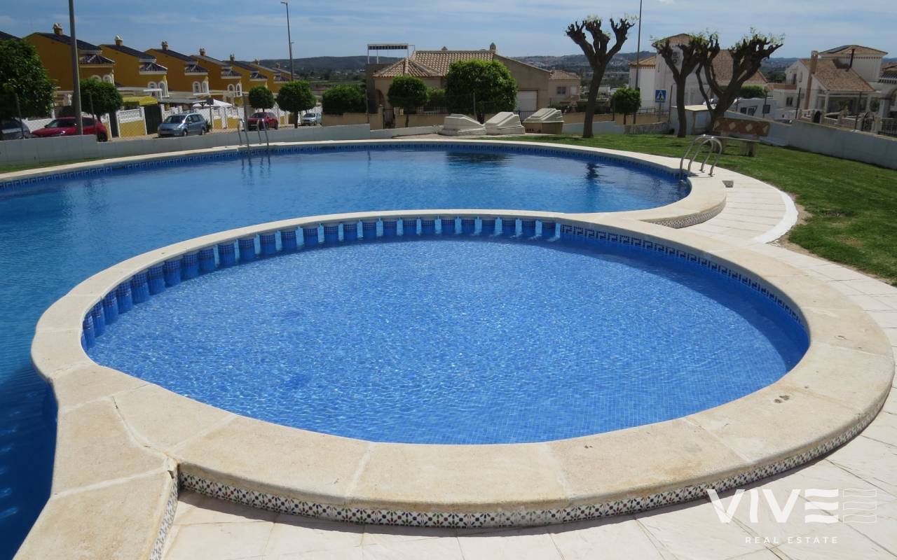 Dieses gepflegte Quad-Haus befindet sich in der begehrten Urbanisation „La Marina“ in San Fulgencio. Diese ruhige, aber zentral gelegene Wohngegend bietet eine große Auswahl an Bars, Restaurants, Geschäften, Fachgeschäften und vielem mehr. Dank der zentralen Lage sind Sie nie weit entfernt von zahlreichen Städten, Sehenswürdigkeiten, Naturgebieten, Golfplätzen usw. Nicht zu vergessen sind die schönen Sandstrände, die diese Region zu bieten hat! Das Haus gehört zu einer kleinen Gemeinschaft, die sich einen großen Garten mit Swimmingpool teilt, der in den heißen Sommermonaten für angenehme Abkühlung sorgt. Das Haus selbst verfügt über einen großen Vorgarten/Terrasse mit Platz zum Parken Ihres Autos, falls Sie dies wünschen. Außerdem gibt es entlang des Hauses eine höher gelegene Terrasse mit Sonnensegeln, auf der Sie mit der ganzen Familie oder mit Freunden gemütlich essen können. Bevor Sie das Haus betreten, haben Sie noch eine gemütliche Balkonterrasse mit Blick auf den Vorgarten und die unmittelbare Umgebung. Danach betreten Sie das Haus und werden in einem geräumigen Wohn-/Esszimmer empfangen, das Zugang zur Küche bietet. Über einen kleinen Flur gelangen Sie zu einem Schlafzimmer und einem Badezimmer im Erdgeschoss. Im ersten Stock finden Sie ein weiteres Schlafzimmer, ein Familienbadezimmer und das Hauptschlafzimmer, das Zugang zu einer privaten Terrasse mit schöner Aussicht auf die Umgebung bietet. Danach können Sie noch eine Etage höher gehen, wo Sie das geräumige, sonnendurchflutete Solarium mit herrlichem Blick auf die Umgebung und die Berge finden. All diese Vorzüge machen dieses Haus zum perfekten Ferien- oder Dauerwohnsitz. Zögern Sie nicht und vereinbaren Sie schnell einen Besichtigungstermin! Suma: 290 Euro/Jahr Gemeinschaftsgebühren: 300 Euro/Jahr