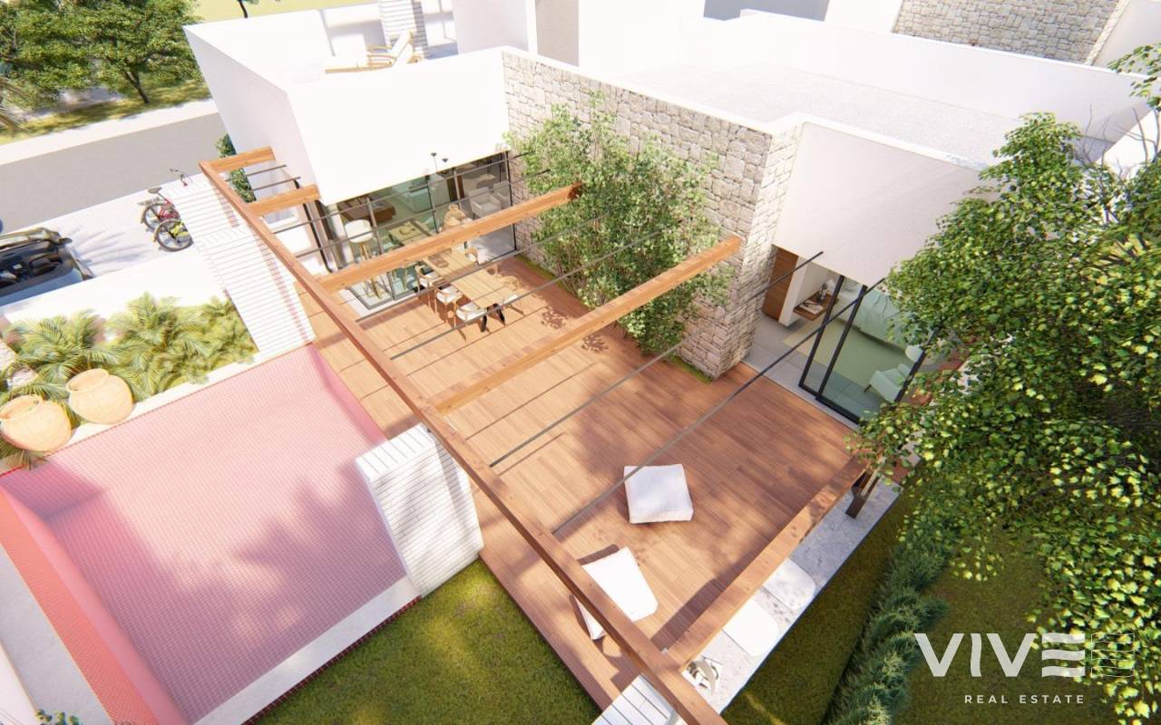 Neubau-Villen in Roldán – Modernes Wohnen im mediterranen Stil Exklusive Neubau-Villen im El Alba Mediterranean Resort Entdecken Sie diese limitierte Kollektion von 3 neu erbauten, unabhängigen Villen in Roldán, gelegen im prestigeträchtigen El Alba Mediterranean Resort. Die Villen sind auf einer Ebene für maximalen Komfort und Funktionalität konzipiert und bieten die Wahl zwischen 2 oder 3 Schlafzimmern sowie 2 Badezimmern, einem privaten Pool und einer Dachterrasse. Diese modernen Häuser verbinden ein elegantes Innendesign mit einem mediterran inspirierten Äußeren mit Naturstein- und Holzelementen. Das Ergebnis ist eine perfekte Mischung aus Stil, Qualität und Komfort in einer ruhigen und dennoch gut angebundenen Umgebung. Geräumige, helle und funktionale Innenräume Jede Villa verfügt über: Offener Wohn- und Essbereich mit moderner Küche im amerikanischen Stil Einbauschränke in allen Schlafzimmern Privater Garten mit Swimmingpool Dachterrasse, ideal zum Sonnenbaden und für Unterhaltung im Freien Zwei private Parkplätze Vorinstallation für eine Klimaanlage Küchen mit hohen und niedrigen Schränken Die einstöckige Aufteilung gewährleistet eine gute Zugänglichkeit und einen praktischen Grundriss im gesamten Haus, wodurch sich diese Villen sowohl für dauerhaftes Wohnen als auch für Ferienzwecke eignen. Unschlagbare Lage in Roldán, Murcia El Alba Mediterranean Resort ist eine bewachte Wohnanlage mit einer Reihe von Annehmlichkeiten, darunter Ein Social Club mit Bar und Lounge Gemeinschaftspool Paddle-Tennisplätze Landschaftlich gestaltete Bereiche und fußgängerfreundliche Straßen Nur einen kurzen Spaziergang vom Zentrum von Roldán entfernt, haben die Bewohner Zugang zu Supermärkten, Banken, Restaurants und Cafés. Die ruhige Stadt Roldán bietet alle Dienstleistungen des täglichen Bedarfs und bewahrt gleichzeitig den Charme eines entspannten Dorfes. Sehenswürdigkeiten in der Nähe Strände des Mar Menor: 15 km Golfplatz Terrazas de la Torre: 4 km La Torre Golf Resort: 6 km Einkaufszentrum Dos Mares: 25 km Internationaler Flughafen Murcia (RMU): 20 km Stadtzentrum von Cartagena: 35 km Stadtzentrum von Murcia: 36 km Diese Region Murcias ist bekannt für ihr mildes Klima, ihre natürliche Schönheit und ihre hohe Lebensqualität. Dank der hervorragenden Verkehrsanbindung erreichen Sie nahegelegene Städte, Strände und Golfplätze in wenigen Minuten. Ihr Traumhaus in der Sonne wartet auf Sie. Kontaktieren Sie uns jetzt, um einen Besichtigungstermin zu vereinbaren oder weitere Informationen anzufordern.