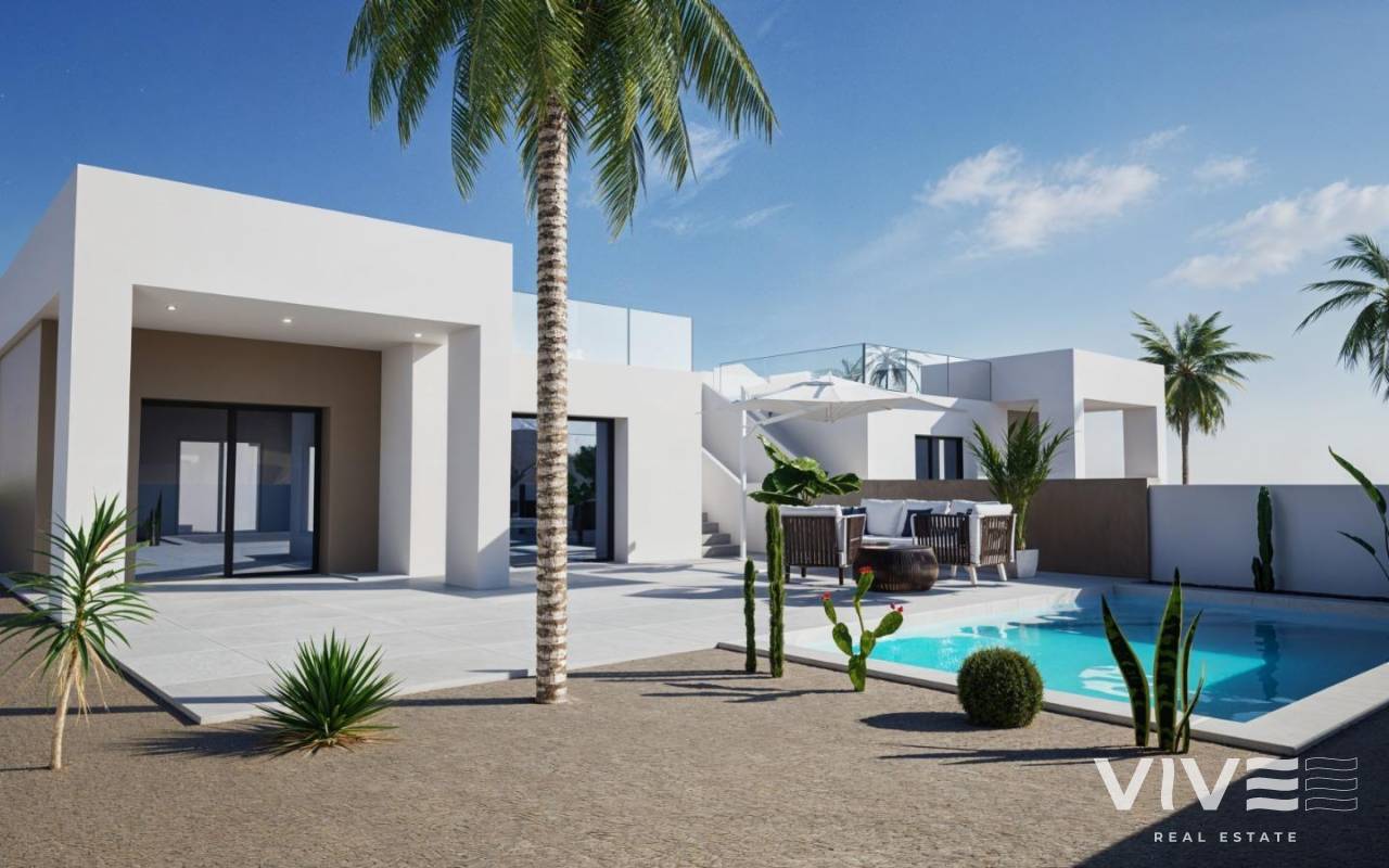 Moderne Villen in La Romana, Alicante Exklusive Neubauwohnungen in einem charmanten spanischen Dorf Diese modernen Neubauvillen in La Romana sind für diejenigen gedacht, die Ruhe, Komfort und den authentischen spanischen Lebensstil suchen. Die Häuser befinden sich auf 370 m² großen Grundstücken in einem Wohngebiet am Rande des Dorfes und sind nur einen kurzen Spaziergang vom Stadtzentrum entfernt, wo Sie traditionelle Restaurants, Geschäfte und alle täglichen Dienstleistungen genießen können. Umgeben von Weinbergen, Mandelbaumhainen und Berglandschaften bietet La Romana eine einzigartige ländliche Umgebung und ist dennoch nur 30 Minuten von der Küste entfernt. Geräumiges Design mit modernem Komfort Jede Villa bietet 127 m² Wohnfläche, verteilt auf 3 Schlafzimmer und 2 Badezimmer, darunter eine Master-Suite mit eigenem Bad. Der offene Wohn- und Essbereich fügt sich nahtlos in die möblierte Küche ein und bietet direkten Zugang zur Terrasse und zum privaten Pool. Zu den weiteren Ausstattungsmerkmalen gehören ein Abstellraum/Waschküche und ein privater Parkplatz auf dem Grundstück. Für diejenigen, die zusätzlichen Platz im Freien wünschen, besteht die Möglichkeit, gegen Aufpreis ein Dachsolarium hinzuzufügen. Premium-Ausstattung inklusive Diese Villen sind mit hochwertigen Oberflächen ausgestattet und verfügen über folgende Ausstattung: Privater Pool von 6 x 3,5 m Klimaanlage mit Wärmepumpe (Installation und Gerät inklusive) Moderne Küche mit weißen Schränken und Granitarbeitsplatten LED-Beleuchtung im gesamten Haus und auf der Veranda Doppelverglasung, weiße Innentüren und Einbauschränke Die Fertigstellung ist 14 Monate nach der Reservierung geplant, sodass Sie ein brandneues, individuell gestaltetes Zuhause erhalten. Ideale Lage in der Landschaft von Alicante La Romana ist ein traditionelles spanisches Dorf im Landesinneren von Alicante, das für seine gastfreundliche Gemeinde und seine natürliche Umgebung bekannt ist. Seine Lage bietet die perfekte Balance zwischen Ruhe und Erreichbarkeit: Aspe – 8 km Elche – 18 km Flughafen Alicante – 35 km Strände der Costa Blanca – 30 km Golfplätze (Font del Llop & Alenda) – 20 km Alicante Stadt – 32 km Ihr mediterraner Lebensstil erwartet Sie Wenn Sie auf der Suche nach einer ruhigen Umgebung sind, umgeben von Bergen, Weinbergen und charmanten spanischen Städten, aber dennoch in der Nähe der Mittelmeerküste, sind diese Villen in La Romana die perfekte Wahl. Kontaktieren Sie uns noch heute für weitere Informationen und sichern Sie sich Ihr neues Zuhause in Alicante.