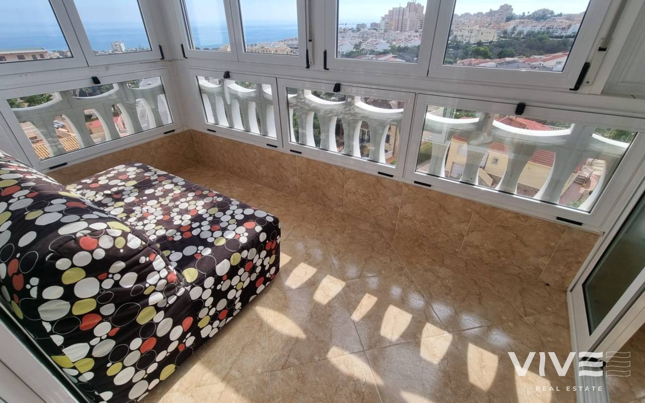 Eines der größten Highlights dieser Wohnung ist der atemberaubende Panoramablick auf das Mittelmeer. Die verglaste Terrasse mit Südostausrichtung füllt das Wohnzimmer den ganzen Tag über mit natürlichem Licht, während die andere Hälfte der Terrasse in den Innenraum integriert wurde, wodurch ein großzügiger, moderner und gemütlicher Wohnbereich entsteht.