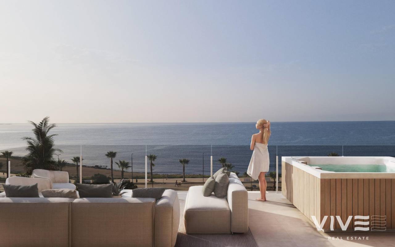 Luxuriöse Apartments am Meer in Villajoyosa mit Panoramablick auf das Mittelmeer Exklusives Wohnen am Meer an der Costa Blanca Erleben Sie den mediterranen Lebensstil vom Feinsten in dieser neuen Wohnanlage direkt am Strand in Villajoyosa, einer charmanten Küstenstadt, die für ihre bunten Häuser, ihre lebendige lokale Kultur und ihr kristallklares Wasser bekannt ist. Nur wenige Meter von der Playa Mallaeta entfernt, bieten diese Wohnungen einen atemberaubenden Meerblick und direkten Zugang zur Promenade und den nahe gelegenen goldenen Sandstränden wie Playa de Villajoyosa, Cala Puntes del Moro und Playa Paraíso, die sich alle perfekt zum Schwimmen, Tauchen oder Genießen eines sonnigen Tages am Meer eignen. Villajoyosa liegt verkehrsgünstig 10 Minuten von Benidorm und 30 Minuten vom Flughafen Alicante (45 km) entfernt und ist mit der Straßenbahn gut an den Hochgeschwindigkeitsbahnhof von Alicante angebunden, was es zu einem idealen Standort sowohl für einen dauerhaften Wohnsitz als auch für einen Urlaubsort macht. Elegantes mediterranes Design und erstklassige Qualität Diese Boutique-Wohnanlage bietet Apartments mit 1 oder 2 Schlafzimmern, großen Terrassen, privaten Gärten im Erdgeschoss oder Solariums in den Penthäusern. Jede Wohnung ist in einem modernen mediterranen Stil gestaltet und kombiniert natürliche Materialien, sanfte Farben und klare architektonische Linien, die sich nahtlos in die Küstenumgebung einfügen. Zu den hochwertigen Ausstattungsmerkmalen gehören: Voll ausgestattete Küchen mit integrierten Geräten Installierte Klimaanlage (warm/kalt) Badezimmer mit Waschtisch, Spiegel und Duschwand Individuelle Gestaltungsmöglichkeiten für die Innenausstattung Privater Parkplatz und Abstellraum in jeder Wohnung Annehmlichkeiten im Resort-Stil mit atemberaubender Aussicht Die Bewohner können außergewöhnliche Gemeinschaftsbereiche genießen, die das Wohnerlebnis bereichern. Der Komplex verfügt über einen Infinity-Pool mit Blick auf das Mittelmeer, einen beheizten Whirlpool, einen Fitnessraum im Freien sowie wunderschön angelegte Gärten und Chill-out-Bereiche. Jedes Detail wurde so gestaltet, dass ein ruhiger und luxuriöser Rückzugsort am Meer entsteht. Die authentische Essenz von Villajoyosa Villajoyosa, auch bekannt als „La Vila”, ist ein malerisches Fischerdorf voller Geschichte, Charme und Flair. Die Altstadt mit ihren gepflasterten Straßen und bunten Häusern bietet eine wahrhaft authentische mediterrane Atmosphäre, ergänzt durch eine ausgezeichnete Gastronomieszene und die berühmte lokale Schokoladentradition. Ihr perfektes Zuhause an der Küste und eine Investitionsmöglichkeit Diese Wohnanlage in Villajoyosa vereint Lage, Qualität und Exklusivität und bietet einen außergewöhnlichen Lebensstil und ein hohes Investitionspotenzial. Kontaktieren Sie uns noch heute, um Ihr neues Zuhause am Meer an der Costa Blanca zu entdecken.