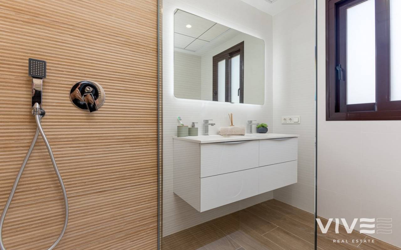 NEU GEBAUTE VILLEN IN BALCON DE FINESTRAT Neue moderne Villen in Balcon de Finestrat. Großzügige und helle Villen mit 3 Schlafzimmern und 2 Bädern, offener Küche mit Wohn-Essbereich, schöner Terrasse, privatem Garten mit dem Pool und Parkplatz. Die Kombination von Holz und Naturstein macht das Haus modern und rustikal zugleich. Die Villen liegen 10 Minuten von Benidorm und nur 2 km von Finestrat entfernt. Die Fahrt nach Tierra Mitica, wo Sie eine schöne Zeit mit Ihrer Familie verbringen können, dauert nur 6 Minuten. Diese Lage macht es eine gute Wahl für ein Ferienhaus. Finestrat liegt in der Region Marina Baixa an der Costa Blanca, in der Nähe des benachbarten Benidorm und etwa 40 Kilometer von der Stadt Alicante und dem internationalen Flughafen entfernt. Das Dorf liegt am Berghang des Puig Campana und bietet einen schönen Blick auf die Berge, die Küste und das Mittelmeer. Benidorm ist nur fünf Autominuten von den Grundstücken entfernt und bietet alle Dienstleistungen, die Sie benötigen, wie Geschäfte, Bars, Restaurants, Supermärkte, Banken, Apotheken und mehrere private internationale Schulen. In der Nähe befinden sich die Strände von Levante, Poniente und Cala de Finestrat, die mit einer Länge von mehr als 6 km zu den besten in Europa gehören und von der Europäischen Union mit der Blauen Flagge ausgezeichnet wurden. Alle Freizeitangebote wie die Themenparks Aqua Natura, Terra Mítica, Terra Natura, Aqualandia und Mundomar, die Golfplätze Sierra Cortina und Villaitana, Wandern und Klettern auf dem Puig Campana in einer unvergleichlichen natürlichen Umgebung oder Wassersport.