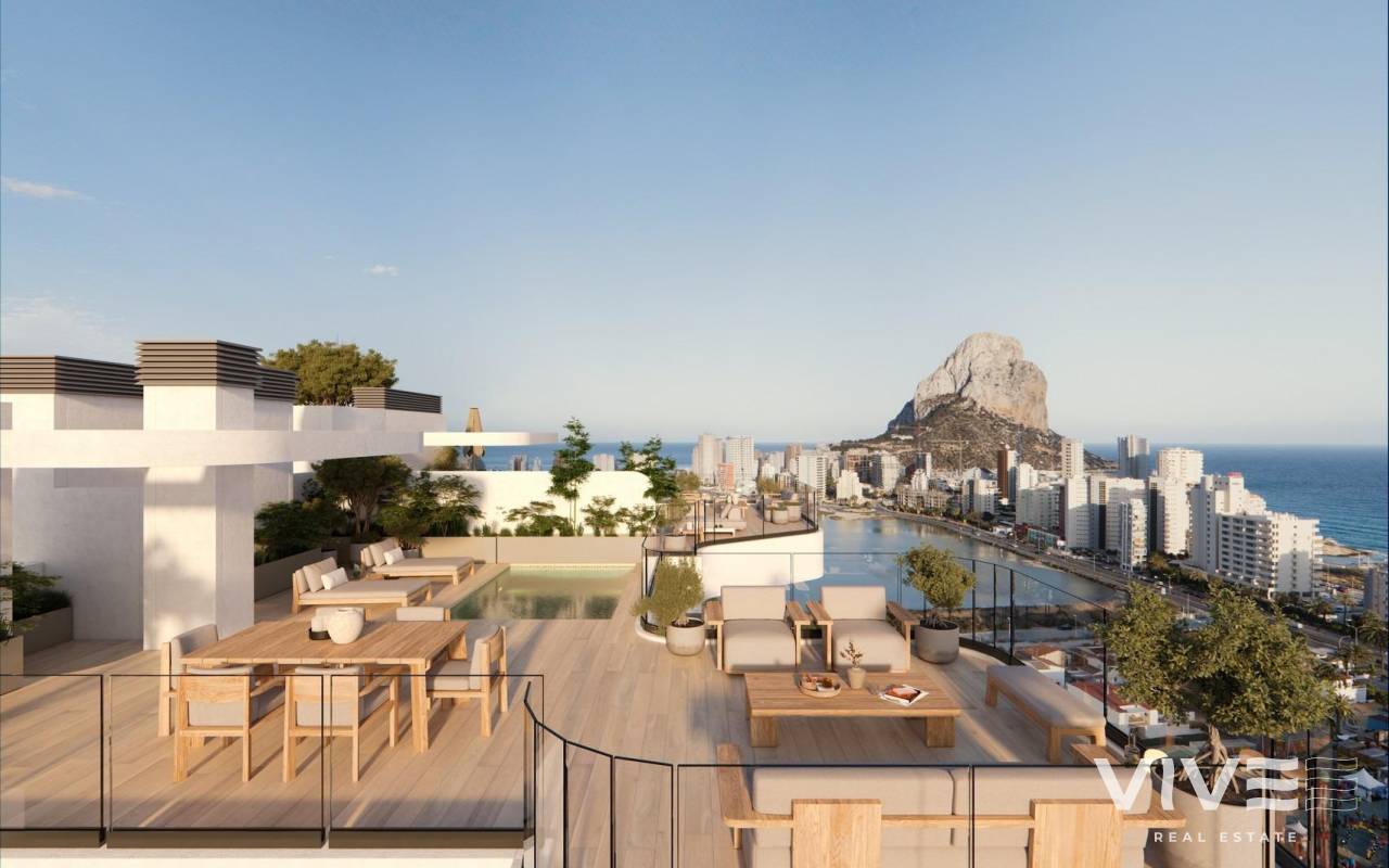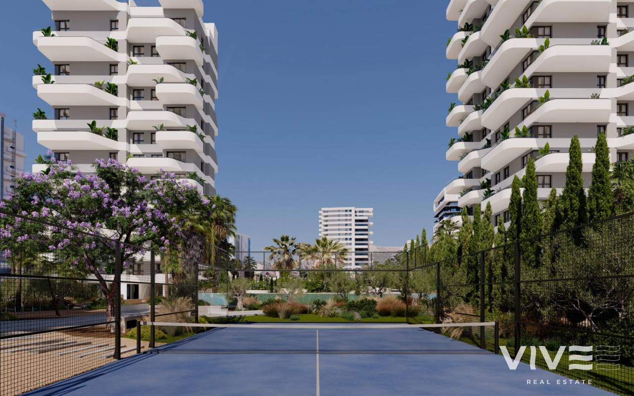 Moderne Neubauwohnungen in Calpe Nur 450 m von Playa del Cantal Roig entfernt Eine zeitgemäße Wohnanlage in Meeresnähe Diese exklusive Wohnanlage umfasst 120 Neubauwohnungen mit 2 und 3 Schlafzimmern, verteilt auf drei moderne Türme. Nur 450 m von Playa del Cantal Roig entfernt und in der ruhigen Gegend von El Saladar gelegen, bietet die Anlage die perfekte Mischung aus Leben an der Küste und urbaner Annehmlichkeit. Das Zentrum von Calpe ist nur wenige Minuten entfernt, während die atemberaubenden Salinas de Calpe und der berühmte Naturpark Peñón de Ifach eine einzigartige natürliche Kulisse bilden. Von der dritten Etage aufwärts hat man Meerblick. Erstklassige Annehmlichkeiten für einen außergewöhnlichen Lebensstil Die geschlossene Wohnanlage wurde für maximalen Komfort konzipiert und bietet eine Vielzahl von Annehmlichkeiten, darunter einen Swimmingpool für Erwachsene, ein Kinderbecken, eine Schwimmbahn, einen Paddle-Tennisplatz, einen Fitnessraum, einen Social Club, Landschaftsgärten mit Spielplätzen, Fahrradabstellplätze und digitale Paketschließfächer. Sicherheit und kontrollierter Zugang werden durch einen Concierge-Service gewährleistet. Parkplätze und Abstellräume sind im Preis inbegriffen. Elegante Wohnungen mit hochwertiger Ausstattung Jede Wohnung verbindet zeitgenössisches Design mit funktionalen Grundrissen und einer ausgezeichneten Ausrichtung. Geräumige Terrassen stehen im Mittelpunkt und bieten den idealen Rahmen, um das mediterrane Klima zu genießen. Die Wohnungen verfügen über Außenfenster und -türen mit thermischer Trennung, motorisierte Rollläden, gepanzerte Eingangstüren, voll ausgestattete Küchen mit Geräten, Klimaanlagen und aerothermische Warmwassersysteme. Entdecken Sie Calpe und seine hervorragende Umgebung Calpe ist einer der bekanntesten Küstenorte der Costa Blanca und für seine Strände, seinen maritimen Lebensstil und sein reiches valencianisches Erbe bekannt. Die Lage bietet eine unschlagbare Anbindung: ca. 80 km zum Flughafen Alicante, 12 km nach Altea, 25 km nach Benidorm und nahtlose Verbindungen über die Autobahn A7 und die Straße N332. Golfbegeisterte finden mehrere Golfplätze im Umkreis von 25 km, während der Real Club Náutico de Calpe und der Yachthafen Puerto Blanco weniger als 3 km entfernt sind. Ihr ideales Zuhause am Mittelmeer Erleben Sie eine neue Art des Wohnens in Calpe mit modernen Häusern, die auf Komfort, Natur und Entspannung ausgelegt sind. Kontaktieren Sie uns noch heute, um einen Besichtigungstermin zu vereinbaren.
