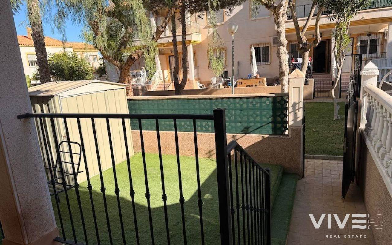 Villamartin, Wohnanlage St. James Hills – Erdgeschoss-Bungalow gegenüber einem 50 m2 großen Gemeinschaftsgarten.. Er verfügt über ein privates Grundstück von ca. 20 m2 sowie über eine Wohnfläche mit 2 Schlafzimmern, 1 Badezimmer, einer Küche und einem Wohn-Esszimmer. Die Immobilie wird möbliert und mit Klimaanlage verkauft, verfügt über einen eigenen Parkplatz und bietet Zugang zu einem großen Gemeinschaftspool.