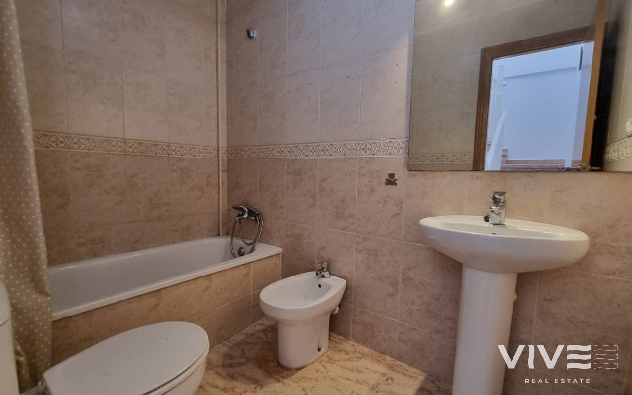 Die Immobilie verfügt über 90 m² Wohnfläche, aufgeteilt in 3 Schlafzimmer, 2 komplette Badezimmer und 1 Gäste-WC, mit einer praktischen und gut durchdachten Raumaufteilung. Zur Ausstattung gehören eine halb-offene Küche, 2 Einbauschränke sowie eine begehrte Südausrichtung, die den ganzen Tag über für viel Tageslicht sorgt.