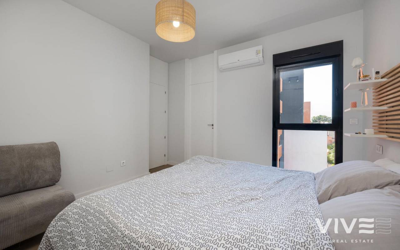 Wir stellen Ihnen diese wunderschöne Wohnung im zweiten Stock eines modernen Gebäudes mit Aufzug vor, die sich durch ihre Großzügigkeit, Helligkeit und ausgezeichnete Raumaufteilung auszeichnet. Mit 87 m² Wohnfläche verfügt diese Wohnung über 2 komfortable Schlafzimmer und 2 voll ausgestattete Badezimmer, ideal für Familien, Paare oder als Zweitwohnsitz.Die Ost-Ausrichtung garantiert den ganzen Vormittag über hervorragenden natürlichen Lichteinfall und schafft warme, angenehme Räume. Einer der größten Vorzüge ist die spektakuläre Terrasse von 35 m², perfekt, um die frische Luft zu genießen, Abendessen zu veranstalten oder einfach in der Sonne zu entspannen.Die Immobilie wird komplett möbliert übergeben, mit funktionalem und einladendem Design. Sie ist mit Klimaanlage ausgestattet, was zu jeder Jahreszeit maximalen Komfort gewährleistet.Außerdem ist im Preis ein privater Tiefgaragenstellplatz enthalten, und das Gebäude gehört zu einer gepflegten Gemeinschaft mit einem schönen Gemeinschaftspool, ideal, um das schöne Wetter in einer ruhigen und angenehmen Umgebung zu genießen.Eine ausgezeichnete Gelegenheit für alle, die Lebensqualität, Komfort und eine unschlagbare Lage suchen.