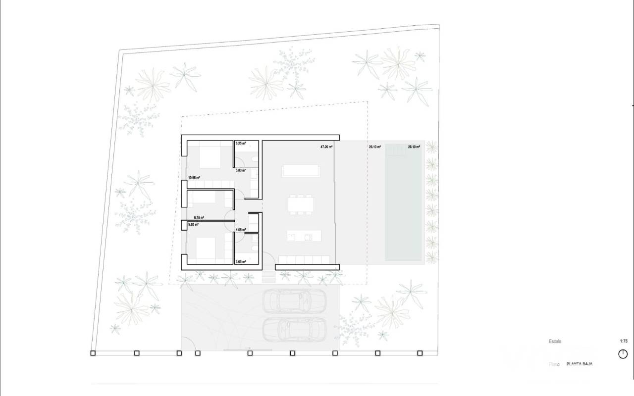 Neubau-Villa im minimalistischen Stil in Benidorm mit privatem Pool Moderne einstöckige Villa in der Nähe des Levante-Strandes Diese minimalistische Neubauvilla befindet sich am Stadtrand von Benidorm, an der wunderschönen Mittelmeerküste der Costa Blanca. Als exklusive und dennoch wirtschaftlich rentable Option in einem zunehmend wettbewerbsintensiven Immobilienmarkt konzipiert, vereint diese Immobilie Funktionalität, zeitgemäßes Design und Komfort in einem einstöckigen Grundriss. Die Villa befindet sich auf einem 530 m² großen Grundstück, nur 2,4 km vom Strand Levante und nur 1,5 km vom Stadtzentrum entfernt, wo Sie Supermärkte, Restaurants, Einkaufsmöglichkeiten, Schulen und alle wichtigen Dienstleistungen finden. Benidorm ist bekannt für seine Sandstrände, seine lebhafte Atmosphäre, seinen Yachthafen und seinen ganzjährigen Sonnenschein, was es zu einem idealen Ziel sowohl für den dauerhaften Wohnsitz als auch für eine Ferienimmobilie macht. Funktionale Aufteilung mit privater Terrasse und Pool Die Villa erstreckt sich über eine Etage und bietet ein praktisches und komfortables Wohnerlebnis. Sie verfügt über 3 Schlafzimmer und 2 Badezimmer, eines davon en suite, und ist somit ideal für Familien oder diejenigen, die zusätzlichen Platz für Gäste oder ein Homeoffice suchen. Der geräumige Wohn- und Essbereich ist direkt mit einer 26 m² großen Terrasse und einem privaten Swimmingpool verbunden und schafft so einen nahtlosen Übergang zwischen Innen- und Außenbereich, der den mediterranen Lebensstil widerspiegelt. Der Außenbereich ist perfekt zum Entspannen, Essen oder um das sonnige Klima das ganze Jahr über zu genießen. Zur Immobilie gehört auch ein privater Parkplatz für zwei Fahrzeuge auf dem Grundstück. Qualitätsmerkmale und Anpassungsmöglichkeiten Diese moderne Villa wird mit hochwertigen Oberflächen und zeitgemäßen Einrichtungen geliefert, darunter: Verstärkte Sicherheitseingangstür Automatisches Zugangstor für Fahrzeuge Voll ausgestattete Küche mit Cerankochfeld, Dunstabzugshaube, Backofen und integrierter Mikrowelle Aerothermisches System für Warmwasser Split-Klimaanlage Minimalistische schwarz lackierte Aluminiumfenster mit thermischer Trennung und Doppelverglasung mit Schallschutz Darüber hinaus können Käufer die Oberflächen, Klimatisierungssysteme, Photovoltaikmodule für den Eigenverbrauch und Hausautomationsfunktionen individuell gestalten, sodass Sie die Immobilie zu einem festen und transparenten Preis an Ihre spezifischen Bedürfnisse anpassen können. Ausgezeichnete Lage und Entfernungen Levante-Strand 2,4 km Zentrum von Benidorm 1,5 km Hafen von Benidorm 3 km Villaitana Golf 4 km Flughafen Alicante 60 km Ihr modernes Zuhause in Benidorm wartet auf Sie Diese neu gebaute Villa bietet modernes Design, Privatsphäre und Strandnähe in einer der dynamischsten Städte an der Costa Blanca. Kontaktieren Sie uns noch heute, um weitere Informationen zu erhalten und sich Ihr neues Zuhause in Benidorm zu sichern.