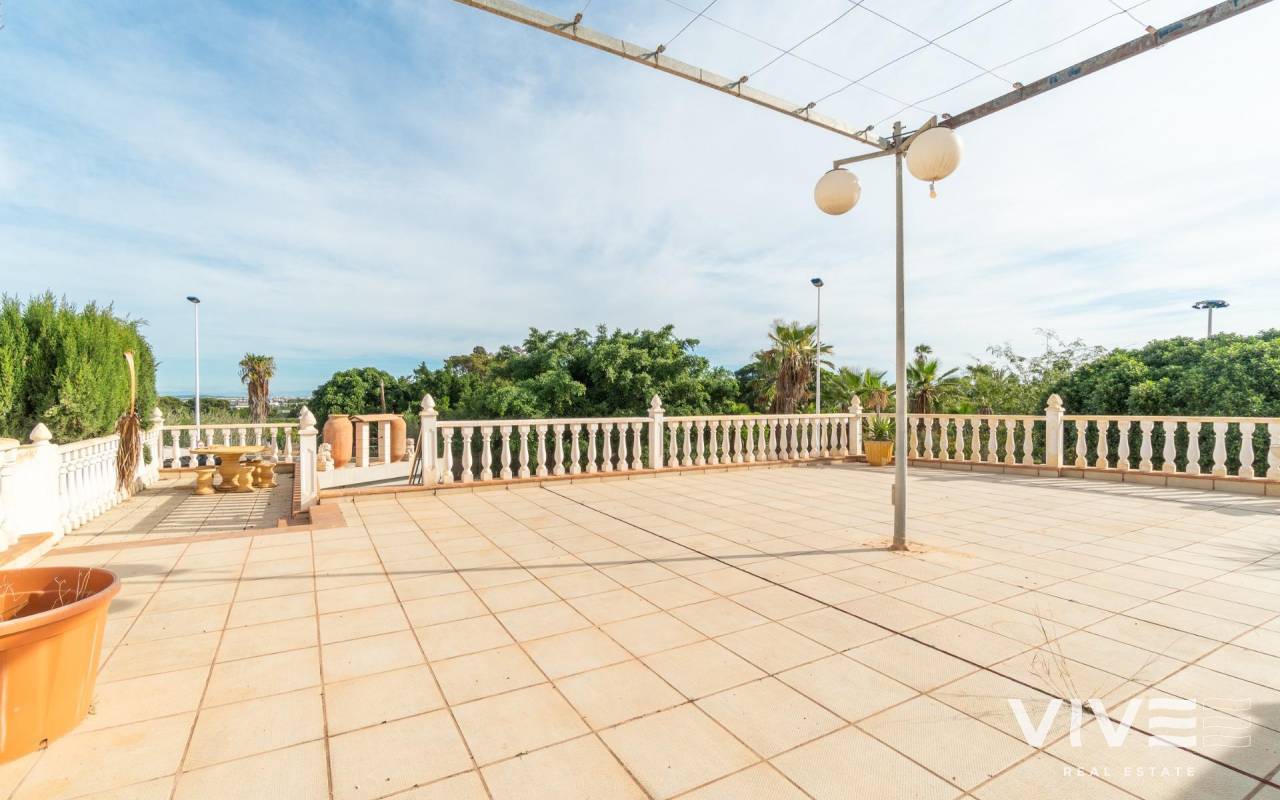 Es wird eine exklusive Immobilie mit großem Potenzial vorgestellt, die sich am Stadtrand von Torrevieja, in der prestigeträchtigen Urbanisation Los Altos, gegenüber dem Hotel Atlas, in einer Gegend mit hoher touristischer und residentialer Aktivität das ganze Jahr über befindet.. Das Haus ist perfekt für ganzjährige Nutzung, und die angrenzenden Gebäude bieten Potenzial, den Wohnraum zu erweitern oder sogar Einnahmen zu erzielen, indem die Nutzfläche erhöht wird, z. B. für Langzeitvermietung.. . Das Anwesen besteht aus zwei unabhängigen Immobilien auf einem Grundstück von etwa 440 m2 mit einer Gesamtbaufläche von ca. 310 m2, was zahlreiche Möglichkeiten für große Familien oder diejenigen bietet, die zusätzlichen Platz für Gäste, Vermietung oder private Nutzung suchen, wie oben erwähnt.. . Das Hauptgebäude im Erdgeschoss besticht durch Geräumigkeit, Charakter und Komfort. Es verfügt über 4 große Schlafzimmer und 2 Badezimmer, eines davon angepasst für Menschen mit Behinderung oder ältere Personen, ein großes Wohn-Esszimmer mit Kamin und eine separate Küche. Alle Räume sind hell und komfortabel, auf das Familienleben ausgelegt, wobei das Herzstück des Hauses ein großes Salon im kastilischen Stil mit traditionellem Kamin ist, das Wärme und Persönlichkeit verleiht.. Das Anwesen hat keinen Wasseranschluss. Beide Immobilien werden vollständig leer übergeben, ohne Möbel oder Geräte.. . Vom Hauptgebäude aus gelangt man direkt zum gemeinschaftlichen Innenhof, in dem sich der private Pool befindet, was eine perfekte Umgebung für Entspannung, Freizeit und Treffen im Freien schafft.. . Die zweite Immobilie ist ein unabhängiger Bereich, der früher intern über das zentrale Grundstück mit dem Hauptgebäude verbunden war, derzeit jedoch getrennt ist, sodass zwischen den beiden Bereichen vollständige Privatsphäre besteht oder eine einfache Wiederintegration möglich ist.. . Dieser zweite Bereich bietet vielfältige Nutzungsmöglichkeiten, sobald die erforderlichen Umnutzungsarbeiten durchgeführt wurden: Er kann in ein zweites Wohnhaus, Gästeapartment, zusätzlichen Familienbereich oder unabhängigen Bereich innerhalb derselben Immobilie umgewandelt werden. Außerdem verfügt er über eine Terrassen-Solarium über dieser zweiten Immobilie, ideal für den Sommer, zum Grillen oder als Chill-out-Bereich für Familie und Freunde.. . Lage. In einer strategischen Lage von Los Altos, umgeben von Wohnanlagen und sehr nah an allen Dienstleistungen, liegt die Immobilie nur wenige Minuten von Stränden, Einkaufszentren, Restaurants, Golfplätzen und den wichtigsten Verkehrsverbindungen entfernt.. . Eine einzigartige Immobilie mit Charakter und Vielseitigkeit, ideal für diejenigen, die Platz, Privatsphäre und eine privilegierte Lage an der Costa Blanca suchen, mit vielen Erweiterungsmöglichkeiten, um den Wert der bestehenden Immobilie zu steigern.. Preis: 449.000 €. Steuern und Kaufnebenkosten nicht inbegriffen (gemäß geltender Gesetzgebung). Eine Aufstellung der zusätzlichen Kosten wird vor der Reservierung zur Verfügung gestellt..