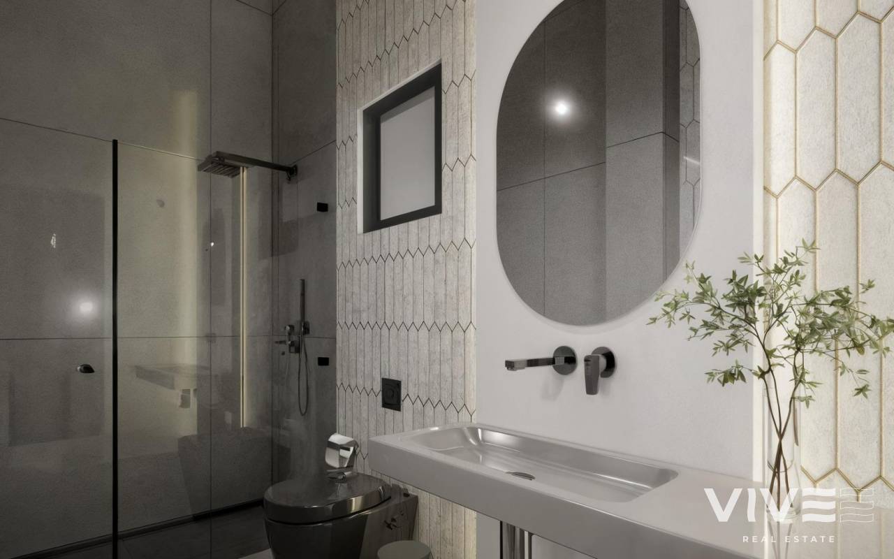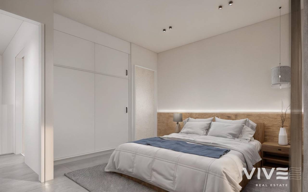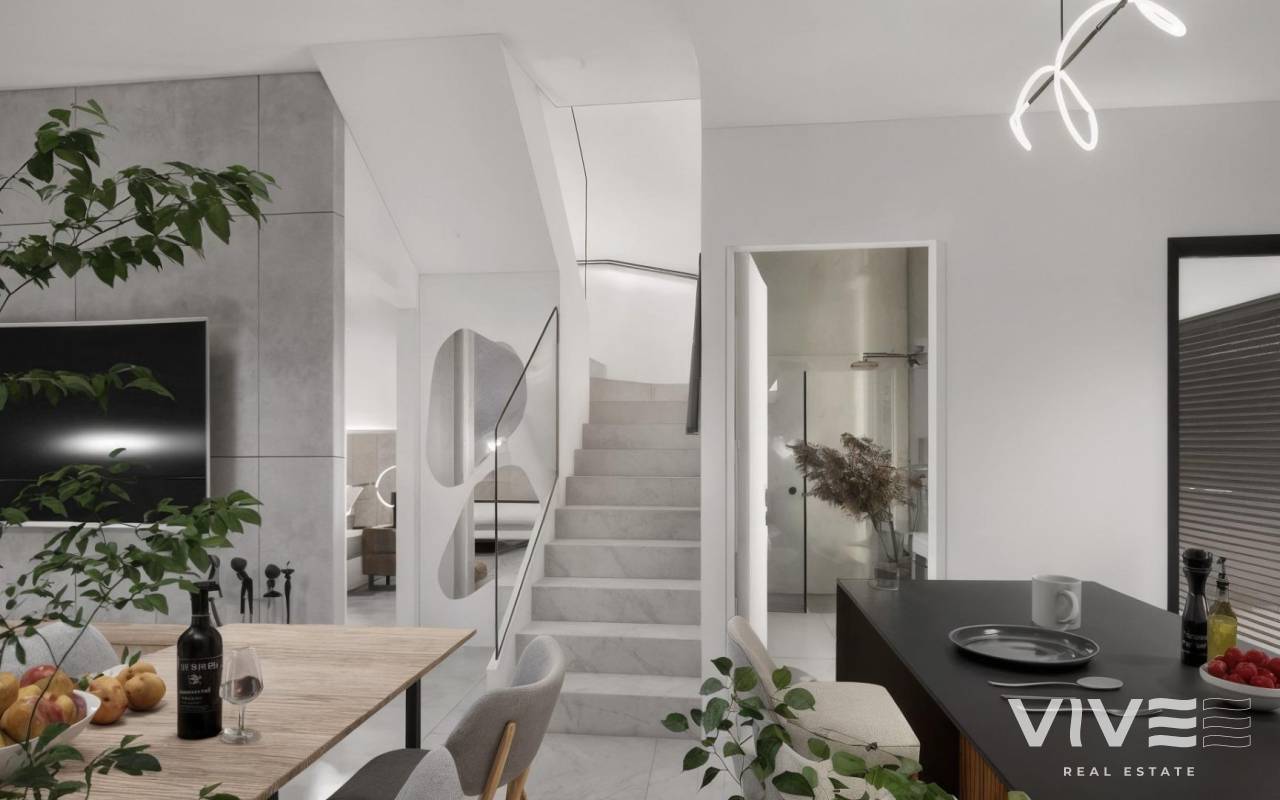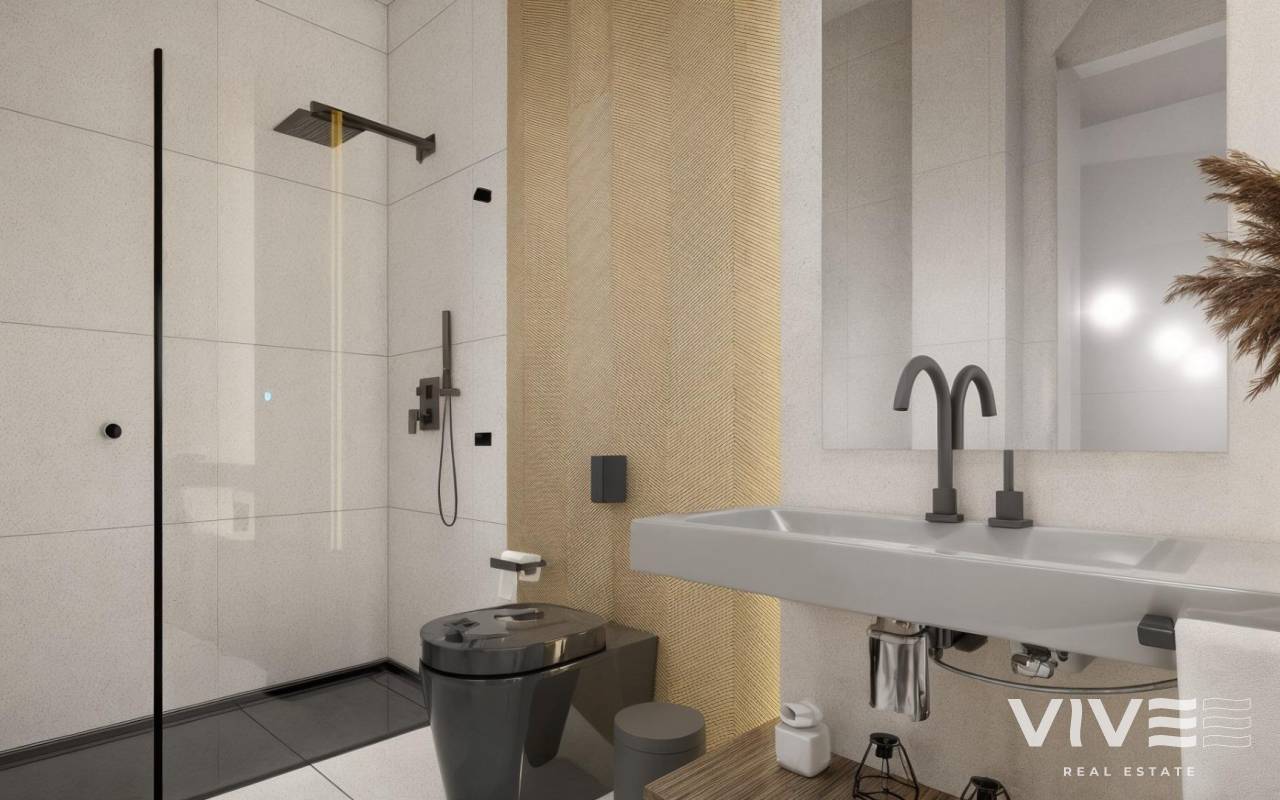 Moderne, neu gebaute Villen in La Herrada Los Montesinos mit privatem Swimmingpool Exklusives Wohnprojekt in ruhiger Lage Diese exklusive Wohnanlage mit 16 modernen Villen befindet sich in der prestigeträchtigen Wohngegend La Herrada in Los Montesinos und bietet Privatsphäre, Komfort und eine ausgezeichnete Lebensqualität. La Herrada ist bekannt für seine ruhige Wohnatmosphäre, die Nähe zu allen Annehmlichkeiten des täglichen Lebens und seine privilegierte Lage zwischen den berühmten Salinen von Torrevieja und La Mata. Es ist ein idealer Ort für diejenigen, die einen entspannten und gesunden mediterranen Lebensstil im Süden der Costa Blanca suchen. Zeitgenössisches Design mit optimierten Innenräumen Jede Villa verfügt über 130 m² gut aufgeteilte Wohnfläche auf zwei Etagen, die so gestaltet sind, dass sie natürliches Licht und Funktionalität maximieren. Die auf Grundstücken ab 250 m² erbauten Immobilien bieten großzügige Außenbereiche, die sich perfekt zum Sonnenbaden, Unterhalten oder Entspannen am privaten Pool eignen. Komfortable Aufteilung auf zwei Etagen Das Erdgeschoss verfügt über einen offenen Wohnbereich mit einer voll integrierten Küche und direktem Zugang zum Garten und Poolbereich. Auf dieser Etage befinden sich außerdem zwei Schlafzimmer, ein komplettes Badezimmer und ein praktischer Waschraum. Im Obergeschoss befinden sich zwei geräumige Schlafzimmer, jedes mit eigenem Badezimmer, eines davon en-suite. Beide Schlafzimmer haben Zugang zu einer 28 m² großen offenen Privatterrasse. Für diejenigen, die noch mehr Platz im Freien wünschen, gibt es gegen Aufpreis ein optionales Solarium auf dem Dach. Hochwertige Ausstattung und moderne Funktionen Die Villen verfügen über eine hochwertige Ausstattung wie Badezimmermöbel, Spiegel, Duschwände und Fußbodenheizung in allen Badezimmern. Es gibt eine Vorinstallation für eine Klimaanlage, ein motorisiertes Eingangstor für Fahrzeuge, einen privaten Parkplatz auf dem Grundstück und einen geschlossenen Zugang zur Wohnanlage über eine private interne Straße. Erstklassige Lage in der Nähe wichtiger Annehmlichkeiten und Sehenswürdigkeiten Die Strände von Guardamar und Torrevieja sind 9 km entfernt La Marquesa Golf, La Finca Golf und Vistabella Golf sind weniger als 5 km entfernt Der Flughafen Alicante ist 29 km entfernt Naturparks, Salinen, Radwege und Wanderwege in der Umgebung Komfortables Wohnen im Herzen der Costa Blanca Diese neu gebauten Villen in Los Montesinos bieten die perfekte Kombination aus modernem Komfort, natürlicher Umgebung und ausgezeichneter Erreichbarkeit. Ob Sie einen dauerhaften Wohnsitz oder ein Ferienhaus suchen, diese Wohnanlage bietet Ihnen alles, was Sie brauchen, um einen ruhigen und komfortablen mediterranen Lebensstil zu genießen. Kontaktieren Sie uns noch heute, um einen Besichtigungstermin zu vereinbaren und sich Ihr neues Zuhause in La Herrada zu sichern.