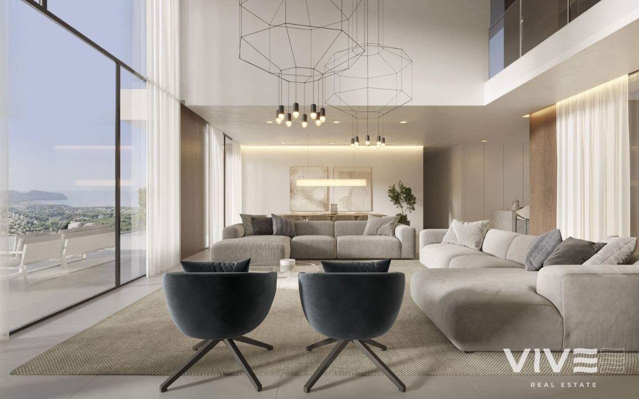 Luxuriöse, moderne Villa mit Meerblick in Benimeit, Moraira Exklusive Neubauvilla in Benimeit, Moraira Diese exklusive, moderne Villa vereint auf perfekte Weise Funktionalität, elegante Architektur und hochwertige Ausstattungsdetails. Die Immobilie befindet sich in der begehrten Wohngegend Benimeit in Moraira auf einem erhöhten Hanggrundstück und bietet einen weiten Panoramablick über die umliegende Landschaft bis hin zum Mittelmeer. Die Villa liegt weniger als 3 km von der Küste entfernt und bietet die perfekte Balance zwischen Privatsphäre, Ruhe und guter Erreichbarkeit des Strandes sowie lokaler Annehmlichkeiten. Das Design des Hauses wurde sorgfältig durchdacht, um eine nahtlose Verbindung zwischen den Wohnbereichen im Innen- und Außenbereich zu schaffen, das natürliche Licht optimal zu nutzen und die wunderschöne Umgebung zum Teil des Alltags werden zu lassen. Großzügiger offener Wohnbereich mit nahtlosem Übergang von drinnen nach draußen Im Erdgeschoss befindet sich ein großer offener Wohn- und Essbereich, der direkt mit den Außenterrassen und dem Poolbereich verbunden ist. Raumhohe Fenster öffnen den gesamten Raum nach draußen, schaffen eine helle und luftige Atmosphäre und rahmen den Panoramablick ein. Das Wohnzimmer öffnet sich zudem zur Rückseite des Grundstücks hin, was den Blick auf beide Seiten ermöglicht und die natürliche Belüftung verbessert. Die moderne Designerküche ist mit hochwertigen Savi-Küchenschränken und erstklassigen Miele-Geräten ausgestattet und bietet sowohl Stil als auch Funktionalität für den Alltag und zum Bewirten von Gästen. Elegante Schlafzimmer mit außergewöhnlicher Aussicht Die Villa bietet eine durchdachte Anordnung der Schlafzimmer, die darauf ausgelegt ist, die Aussicht und die Privatsphäre zu maximieren. Zwei Gästezimmer öffnen sich zur Ostseite des Grundstücks hin, während das Hauptschlafzimmer im Erdgeschoss den Blick nach Westen genießt. Das gesamte Erdgeschoss ist eng mit den Außenbereichen verbunden, darunter eine große überdachte Terrasse mit Blick auf den Infinity-Pool sowie eine intimere Pergola auf der Rückseite, die sich ideal für entspannte Momente eignet. Das Obergeschoss ist ausschließlich der beeindruckenden Master-Suite gewidmet, einem spektakulären Raum, der das Anwesen krönt und einen fast 180-Grad-Panoramablick auf die umliegende Landschaft und das Mittelmeer bietet. Hochwertige Ausstattung und erstklassige Verarbeitung Diese Luxusimmobilie besticht durch hochwertige Materialien und modernste Technologie im gesamten Haus. Zur Ausstattung gehören Technal-Fenster mit Argon-Isolierung, Fußbodenheizung und eine Kanalklimaanlage mit Wärmepumpe sowie ein Smart-Home-System von Niessen FreeHome mit individueller Raumtemperaturregelung über Airzone. Zu den weiteren Ausstattungsmerkmalen gehören ein Personenaufzug, der alle drei Ebenen verbindet, Axor-Badarmaturen mit Sanitärkeramik von Villeroy & Boch, ein voll ausgestatteter Hauswirtschaftsraum mit Miele-Geräten, ein chlorfreier Infinity-Pool, 4,5-kW-Solarmodule, eine Alarmanlage, eine Tiefgarage für zwei Autos und ein zusätzlicher Außenparkplatz. Erstklassige Lage an der Costa Blanca Moraira ist einer der begehrtesten Küstenorte an der Costa Blanca, bekannt für seinen charmanten Yachthafen, den entspannten mediterranen Lebensstil und die ausgezeichnete Gastronomie. Der Ort bietet wunderschöne Strände und Buchten wie Playa de l’Ampolla, Cala Cap Blanc und die beeindruckende Cala del Moraig. Zu den wichtigsten Entfernungen zählen das Stadtzentrum von Moraira (3 km), der Strand Playa de l’Ampolla (3 km), der Club de Golf Ifach (4 km), der Hafen Marina Moraira (3,5 km), der internationale Flughafen Alicante (90 km) und der Flughafen Valencia (125 km). Diese außergewöhnliche Neubauvilla bietet modernes Design, luxuriöse Ausstattung und eine privilegierte Lage an der Costa Blanca. Kontaktieren Sie uns noch heute für weitere Informationen oder um einen privaten Besichtigungstermin für diese bemerkenswerte Immobilie 278