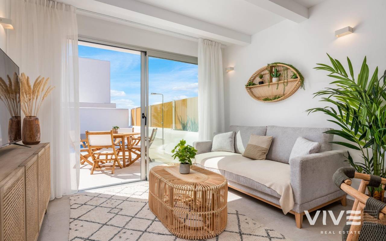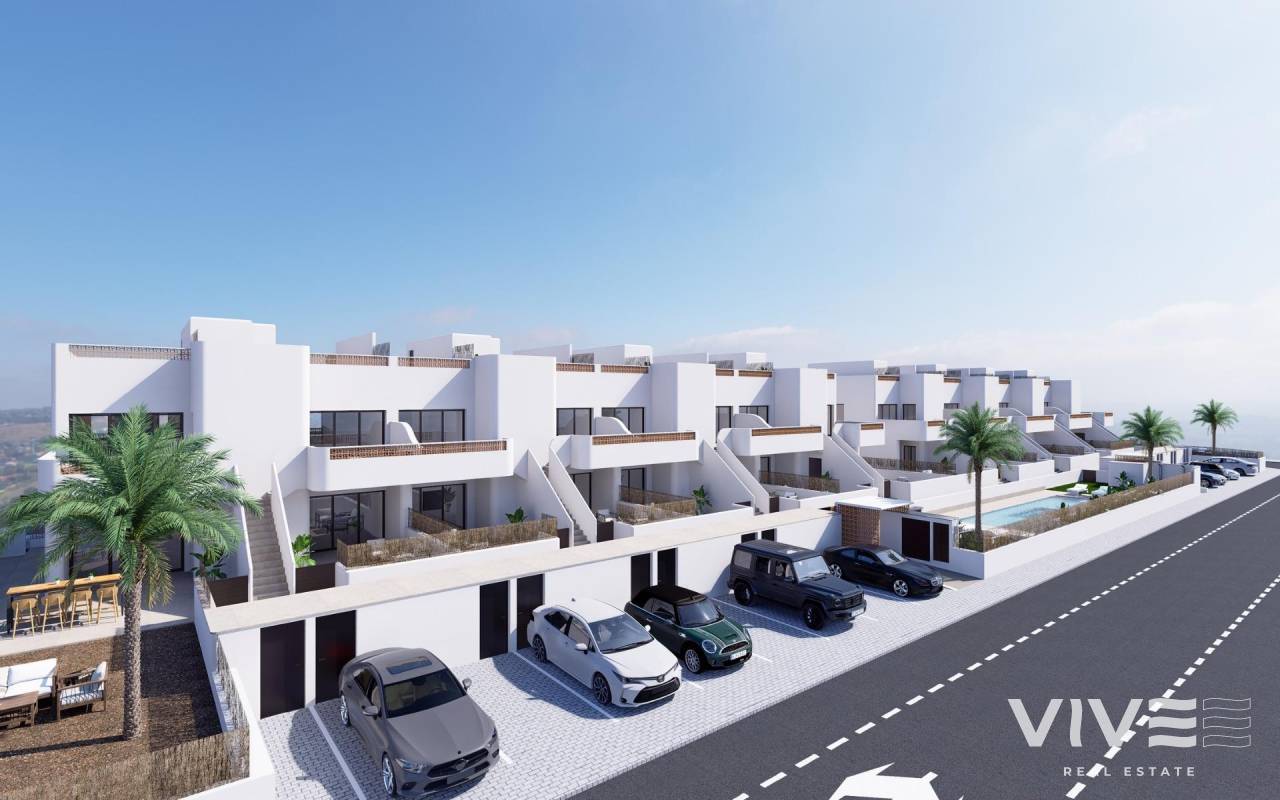 Neubau Bungalows in Dolores Wohnimmobilien mit Erdgeschoss mit Garten oder Dachgeschoss mit privatem Solarium, mit 3 Schlafzimmern und 2 Bädern, befinden sich in Dolores (Alicante), einer privilegierten Gegend der Costa Blanca, neben dem Naturpark El Hondo, umgeben von Natur und mit allen Dienstleistungen ausgestattet. Es ist 25 Minuten vom Flughafen Alicante, in der Nähe der schönen Strände von Guardamar del Segura und nur wenige Minuten von den wichtigsten Golfplätzen in der Region. Die hervorragende Lage macht die Anlage zu einer perfekten Option für alle, die Ruhe und Frieden suchen. Zu jeder Wohnung gehört ein eigener Parkplatz und in den meisten Wohnungen ein Abstellraum. Außerdem gibt es einen schönen Gemeinschaftspool mit Toilette zum Entspannen nach einem Arbeitstag oder einer Besichtigungstour. Hochwertige Oberflächen und moderne Annehmlichkeiten Die Wohnungen werden mit hochwertigen Materialien und Oberflächen gebaut. Die Außentischlerarbeiten sind aus Aluminium mit Wärmebrückenunterbrechung, die Bäder haben Badmöbel mit Spiegel. Die in der gesamten Wohnung installierte Beleuchtung garantiert Energieeffizienz und eine moderne Atmosphäre. Die Einbauschränke sind von innen verkleidet. All diese Merkmale schaffen ein komfortables und stilvolles Wohnumfeld für Sie und Ihre Familie. Erstklassige Lage in der Nähe der täglichen Annehmlichkeiten Am Rande der charmanten Stadt Dolores gelegen, sind diese Häuser nur einen kurzen Spaziergang von den wichtigsten Einrichtungen des täglichen Lebens entfernt, darunter Geschäfte, Restaurants und lokale Dienstleistungen. Dolores gehört zur Region Vega Baja del Segura im Süden der Provinz Alicante, die für ihre landwirtschaftlich geprägte Landschaft und ihren entspannten Lebensrhythmus bekannt ist. Nahe gelegene Sehenswürdigkeiten Strand La Marina: 10 km Strand von Guardamar: 10 km Flughafen Alicante: 30 km Flughafen Murcia-Corvera: 60 km Golfplätze: 10 km Einkaufszentren: 12 km Perfekt, um den Lebensstil der Costa Blanca zu genießen Mit dem mediterranen Klima, den schönen Stränden in unmittelbarer Nähe und mehreren Golfplätzen bietet diese Urbanisation die ideale Mischung aus Entspannung und Freizeit. Ob Sie nun ein Ferienhaus oder einen dauerhaften Wohnsitz suchen, diese neu gebauten Häuser in Dolores bieten modernes Wohnen in einer ruhigen und gut angebundenen Lage.