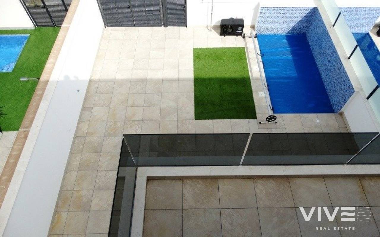 NEUBAU VON 4 DOPPELHAUSHÄLFTEN IN PILAR DE LA HORADADA New Build 4 Doppelhaushälften Villen in Pilar de la Horadada gelegen. Villen bauen über 2 Etagen und hat private Solarium, verfügt über 3 Schlafzimmer, 3 Bäder, offene Küche mit dem Wohnzimmer, Garten mit privatem Pool und Parkplatz. Villen befindet sich ein paar Meter von allen Dienstleistungen und das Zentrum. Pilar de la Horadada ist ein typisch spanisches Dorf im südlichsten Teil der Costa Blanca. Die große Hauptstraße hat Supermärkte, viele Geschäfte, Restaurants und Bars und einige schöne Plätze. Die schönen Strände von Torre de la Horadada und Mil Palmeras mit ihrer feinen Sandpromenade sind nur 5 Minuten entfernt. In Pilar de la Horadada gibt es außerdem ein gut ausgebautes Rad- und Wanderwegenetz und ein großes Angebot an verschiedenen sportlichen Aktivitäten. Der 18-Loch-Golfplatz Lo Romero ist nur eine kurze Autofahrt vom Ort entfernt. Die Flughäfen von Corvera (Murcia) und Alicante sind 40 bzw. 55 Minuten entfernt.