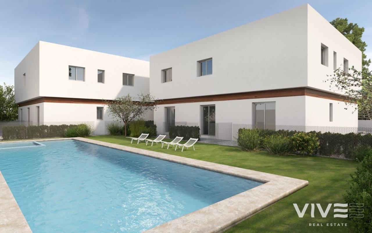 Exklusive Neubau-Wohnanlage in Orihuela Costa Privilegierte Lage im Herzen der Costa Blanca Diese moderne, geschlossene Wohnanlage befindet sich in Orihuela Costa, einer der begehrtesten Gegenden der Costa Blanca, nur 4 km von den Stränden von Orihuela Costa entfernt. Dank der hervorragenden Lage können Sie das ganze Jahr über die Sonne des Mittelmeers genießen und haben Zugang zu einem breiten Freizeit-, Golf- und Dienstleistungsangebot. In nur 5 Autominuten erreichen Sie den Golfplatz von Villamartin und das Einkaufszentrum La Zenia Boulevard, das größte in der Provinz Alicante, mit mehr als 150 Geschäften, Restaurants und Unterhaltungsbereichen. Modernes Design und exklusive Wohnungen Diese Wohnanlage bietet eine Auswahl an neu gebauten Häusern, die nach den höchsten Qualitäts- und Komfortstandards entworfen wurden: 7 Stadthäuser mit 2 und 3 Schlafzimmern und Zugang zu einem Gemeinschaftspool. 2 freistehende Villen mit 3 Schlafzimmern und 3 Bädern, jeweils mit privatem Swimmingpool. Optional: Tiefgaragenstellplätze und Abstellräume gegen Aufpreis. Exklusive Qualitäten und Merkmale Jede Immobilie wurde nach modernen und funktionalen Gesichtspunkten entworfen, wie zum Beispiel: Begrünte Außenbereiche mit Kunstrasen neben dem Swimmingpool. Aerothermische Heizung für mehr Energieeffizienz. Küche mit Quarz-Frühstücksbar, Sitzbereich und 50 cm Metallspüle. Treppe mit Handlauf aus Glas und Edelstahl. Voll ausgestattete Bäder mit Oberschränken, Spiegel und Duschwand. Vorinstallation für eine Kanal-Klimaanlage. Einbauschränke in jedem Schlafzimmer, mit Schiebetüren und Soft-Closing-System. Sicherheitseingangstür für den Seelenfrieden. Nähe zu interessanten Orten Strand von Punta Prima - 4 km. Villamartin Golfplatz - 5 km. Einkaufszentrum „La Zenia Boulevard“ - 5 km. Stadtzentrum Torrevieja - 10 km. Flughafen Alicante - 40 Minuten. Flughafen Murcia-Corvera - 1 Stunde. Erleben Sie den mediterranen Lebensstil Diese exklusive Wohnanlage ist ideal für diejenigen, die ein modernes Haus an der Costa Blanca suchen, mit Zugang zu Stränden, Golf und allen Annehmlichkeiten. Lassen Sie sich diese einmalige Gelegenheit nicht entgehen und kontaktieren Sie uns noch heute für weitere Informationen oder um einen Besichtigungstermin zu vereinbaren.