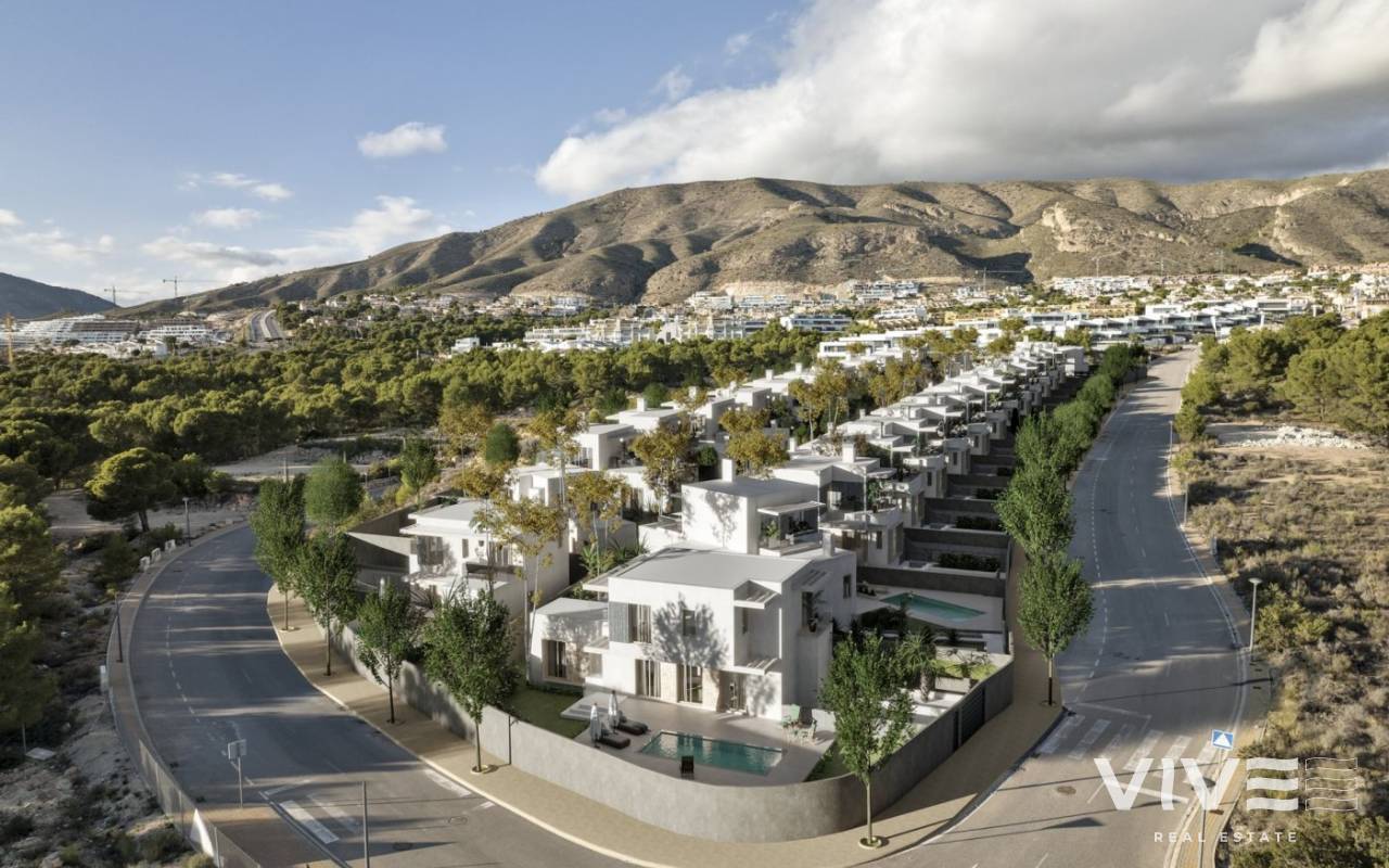 NEU GEBAUTE VILLEN IN FINESTRAT Neubau von 30 unabhängigen Villen mit avantgardistischem Design in Sierra Cortina, Finestrat, im Herzen der Costa Blanca, eine luxuriöse Anlage, wo Sie eine einzigartige Umgebung der Ruhe genießen können. Villen über 2 Etagen gebaut, hat 3 Schlafzimmer, 3 Bäder, Gäste-WC, offene Küche mit Wohnzimmer, Einbauschränke, Terrassen, privater Garten mit dem Pool und Keller mit der Garage Wohnanlage in der Sierra Cortina Resort-Komplex, neben zwei Golfplätzen, Themenparks, ein großes Einkaufszentrum und ein paar Minuten von den Stränden von Benidorm. Finestrat liegt in der Region Marina Baixa an der Costa Blanca, in der Nähe des benachbarten Benidorm und etwa 40 Kilometer von der Stadt Alicante und dem internationalen Flughafen entfernt. Das Dorf liegt am Berghang des Puig Campana und bietet einen schönen Blick auf die Berge, die Küste und das Mittelmeer.