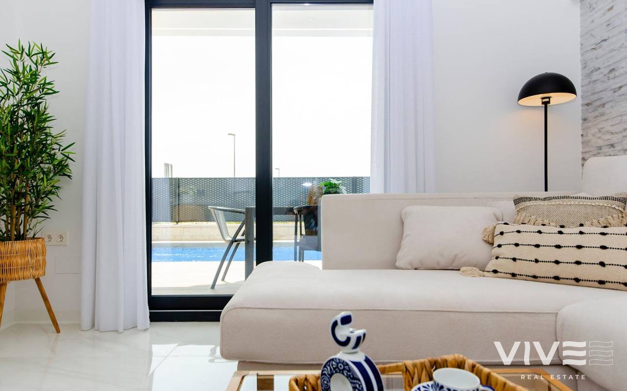 NEU GEBAUTE VILLEN IM VISTABELLA GOLF RESORT Neubau von Luxusvillen über 2 Etagen im Vistabella Golf Resort, zwischen San Miguel und Los Montesinos an der Orihuela Costa. Villen mit 3 Schlafzimmern, 3 Bädern, einem offenen Wohnzimmer mit Küche, privatem Garten mit Pool und Parkplatz. Optional können Sie eine private Sonnenterrasse gegen einen Aufpreis haben. Auf Vistabella Golf gibt es Platz für alle. Der Platz ist so angelegt, dass jeder Spieler ihn von Anfang bis Ende genießen kann. Seine hügeligen Straßen, strategischen Bunker oder Seen sind einige der Merkmale, die ihn zu einem der attraktivsten Plätze der Gegend machen, wo jeder Schlag eine Herausforderung und ein Genuss für die Sinne ist. Die 18 Löcher von Vistabella Golf, Par 72 und mehr als 6.000 Meter lang, wurden nach den Richtlinien der modernen Felder mit 4 Abschlägen von großer Amplitude an jedem Loch, breiten Fairways und erhöhten Bunkern entworfen. Das Clubhaus und das Restaurant von Vistabella Golf sowie die örtlichen Bars und Geschäfte sind in 5 Minuten zu Fuß zu erreichen. Die geschäftige Stadt San Miguel de Salinas und Los Montesinos sind nur 5 Autominuten entfernt und die schönen Strände von Guardamar, die mit der Blauen Flagge ausgezeichnet sind, sind nur 15 Autominuten entfernt. Der Flughafen Alicante ist 35 Minuten entfernt und der neue Flughafen Corvera Murcia ist 45 Minuten entfernt.