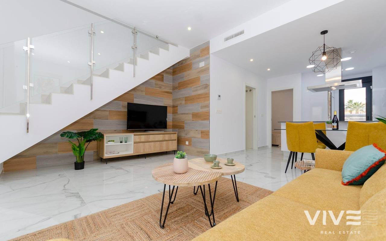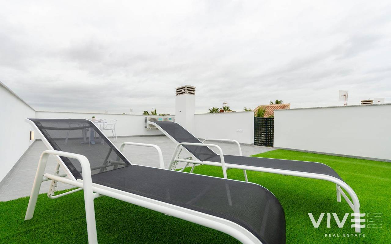 NEU GEBAUTE VILLEN IN TORREVIEJA Neubau Villen in Torreta, Torrevieja. Schöne New Build Villen bauen über 2 Etagen mit 3 Schlafzimmern, 3 Bädern, offene Küche mit Wohnbereich, Einbauschränke, Terrasse und private Solarium in einigen Einheiten. Villa comming mit Garten mit privatem Pool und Parkplatz auf dem Grundstück. Torrevieja ist eine spanische Stadt in der Provinz Alicante, an der Costa Blanca. Sie ist bekannt für ihr typisch mediterranes Klima und ihre Küstenlinie. Entlang der Sandstrände gibt es Strandpromenaden mit Ferienanlagen. Das kleine Meeres- und Salzmuseum beherbergt Ausstellungen über die Fischerei- und Salzgeschichte der Stadt. Im Landesinneren befindet sich der Naturpark Lagunas de La Mata-Torrevieja mit Wanderwegen und zwei salzhaltigen Lagunen, von denen eine rosa und die andere grün ist. Der Flughafen Alicante ist 40 Minuten und der Flughafen Murcia etwa 1 Stunde entfernt.