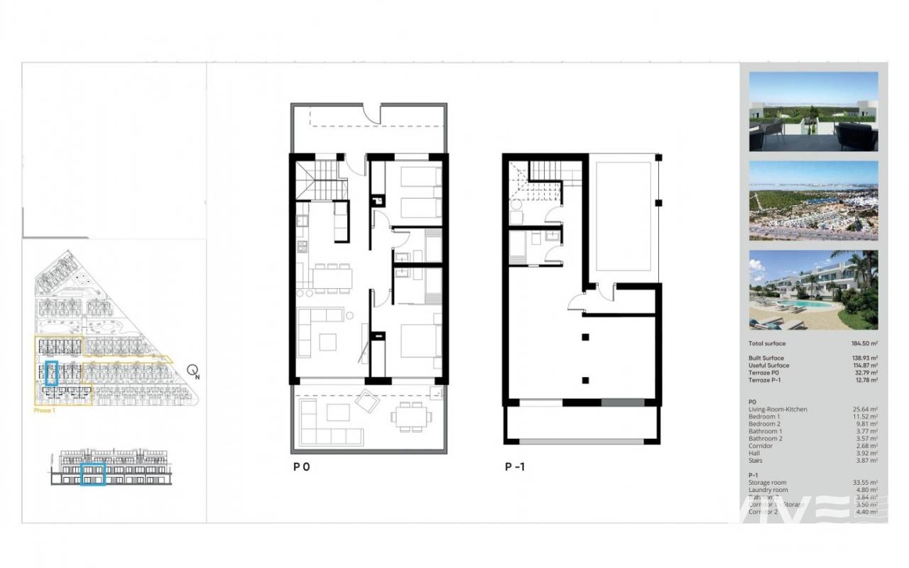 NEUBAU WOHNANLAGE IN LOS BALCONES, TORREVIEJA Neubau Wohnanlage mit Doppelhaushälften und Bungalows in Los Balcones mit Blick auf den rosa See. Neubau Bungalows im obersten Stockwerk mit 2 Schlafzimmern, 2 Bädern, offener Küche mit geräumigem Wohnzimmer, Einbauschränken, Terrasse, privatem Solarium und Tiefgaragenstellplatz. Neue exklusive Wohnanlage mit großen Gemeinschaftsbereichen; Gärten, Garten-Turnhalle, Spielplatz, 2 große Gemeinschaftspools - einer davon für Erwachsene und der andere für Kinder. Los Balcones ist eine kleine Stadt in der Nähe von Torrevieja Süd. Torrevieja ist eine spanische Stadt in der Provinz Alicante, an der Costa Blanca. Sie ist bekannt für ihr typisch mediterranes Klima und ihre Küstenlinie. Entlang der Sandstrände gibt es Strandpromenaden mit Ferienanlagen. Das kleine Meeres- und Salzmuseum beherbergt Ausstellungen über die Fischerei- und Salzgeschichte der Stadt. Im Landesinneren befindet sich der Naturpark Lagunas de La Mata-Torrevieja mit Wanderwegen und zwei salzhaltigen Lagunen, von denen eine rosa und die andere grün ist. Der Flughafen Alicante ist 40 Minuten und der Flughafen Murcia etwa 1 Stunde entfernt.
