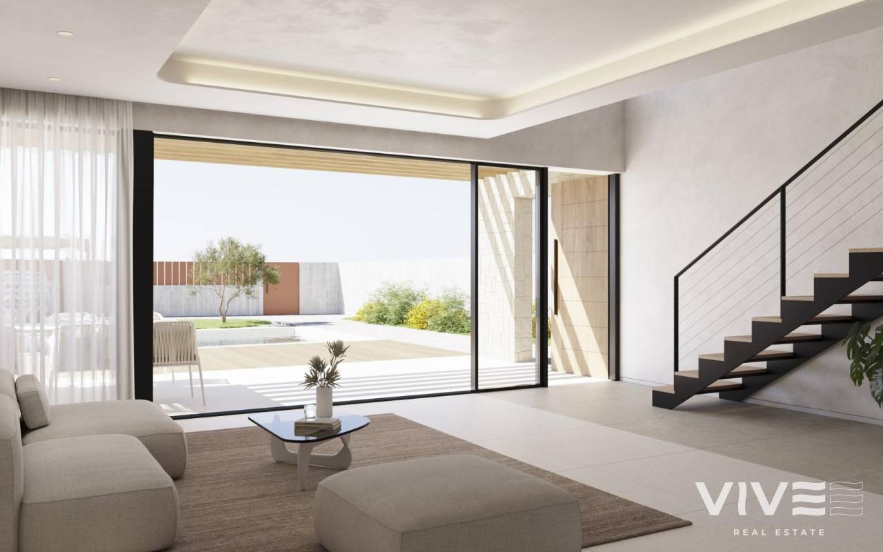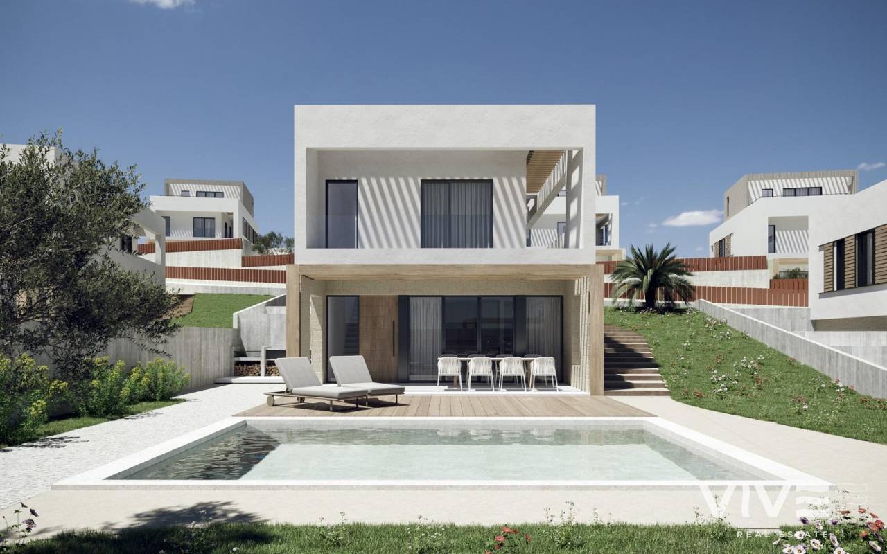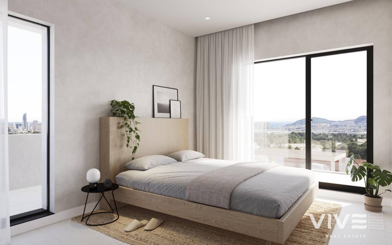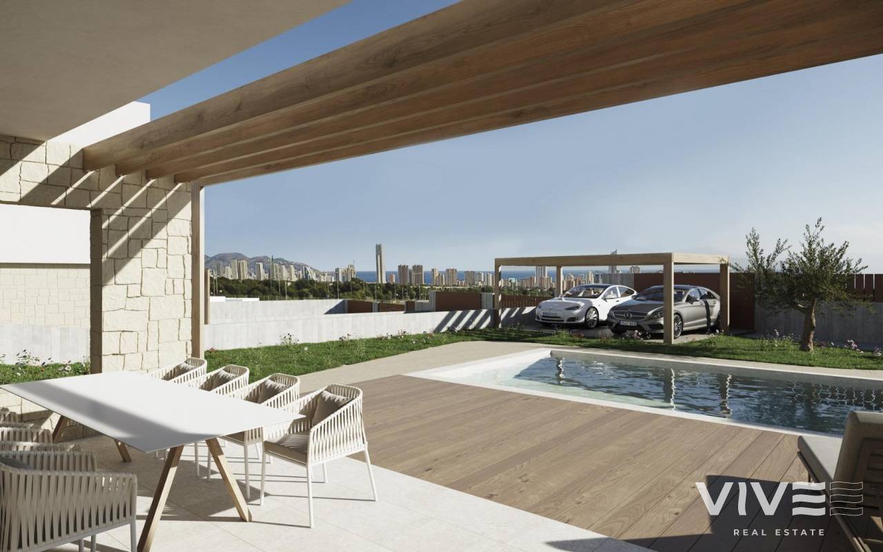NEU GEBAUTE VILLEN IN FINESTRAT Neubau Moderne Villen in Finestrat. Villen mit 3 Schlafzimmern und 3 Bädern, offener Küche mit Wohnbereich, Terrasse mit herrlichem Blick über Benidorm, privatem Garten mit Schwimmbad und Parkplatz. Es ist als vollständig begehbarer Raum mit Innen- und Außenwegen konzipiert, die einen unabhängigen Zugang zu jeder Etage ermöglichen. Dieser Entwurf bietet verschiedene Perspektiven auf den architektonischen Komplex und seine Umgebung, wobei das Meer und die Sierra Cortina als malerische Kulisse dienen. Der Haupteingang der Villa befindet sich im unteren Teil des Grundstücks und bietet ausreichend Parkmöglichkeiten für zwei Fahrzeuge. Ein Wasserspiel mit Liegestühlen führt Sie in das Erdgeschoss, das sich durch breite, gemauerte Wände auszeichnet. An das Wohnzimmer schließt sich nahtlos eine Terrasse an, die durch ein großes Klappfenster ermöglicht wird. Hölzerne Fensterläden an gemauerten Wänden bieten einen teilweise überdachten Außenbereich für zusätzlichen Komfort. Der Pool mit seinen aquamarinfarbenen Tönen und seiner Auskleidung aus Gresit grenzt an einen Fußbodenbereich aus rutschfesten Porzellanfliesen in Holzoptik. Zu diesem Bereich gehört auch ein Grillplatz, der je nach den Bedürfnissen des Nutzers gestaltet werden kann und über einen gepflasterten Bereich durch das natürliche Gelände zugänglich ist. Finestrat liegt in der Region Marina Baixa an der Costa Blanca, in der Nähe des benachbarten Benidorm und etwa 40 Kilometer von der Stadt Alicante und dem internationalen Flughafen entfernt. Das Dorf liegt am Berghang des Puig Campana und bietet einen schönen Blick auf die Berge, die Küste und das Mittelmeer. Benidorm ist nur fünf Autominuten von den Grundstücken entfernt und bietet alle Dienstleistungen, die Sie benötigen, wie Geschäfte, Bars, Restaurants, Supermärkte, Banken, Apotheken und mehrere private internationale Schulen.