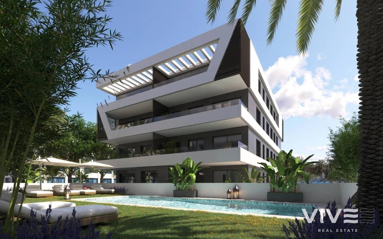 NEU GEBAUTE WOHNANLAGE IN SAN JUAN DE ALICANTE Neubau-Wohnanlage mit 32 modernen Wohnungen und Penthäusern in der Gegend von Nou Nazareth in San Juan de Alicante. Sie verfügt über große Terrassen, Parkplätze, Abstellräume, einen Coworking-Bereich, einen Fitnessraum, einen Swimmingpool und Grünflächen, um Ihr Zuhause zu einem vielseitigen und dynamischen Ort zu machen. Die mit viel Liebe zum Detail gestaltete Architektur verbindet Funktionalität, Design und die Energieeffizienz eines exklusiven Hauses. Die elegante Zeitlosigkeit der Oberflächen und die Helligkeit der großen Terrasse verleihen dem Haus Tiefe und Kontinuität mit dem Außenbereich und schaffen viel Raum zum Genießen. Diese Wohnanlage hat sich der Nachhaltigkeit verschrieben, indem sie verbrauchsoptimierte Arbeiten ausführt. Alle unsere Häuser weisen eine hohe Energieeffizienz auf, so dass Sie nicht nur einen Beitrag zum Schutz der Umwelt und des Planeten leisten, sondern auch von großen Einsparungen bei Ihren Haushaltsrechnungen profitieren. Alle Wohnungen verfügen über effiziente Klimaanlagen und Luftqualitätssysteme. LED-Beleuchtungssysteme, um einen optimalen Verbrauch und eine lange Lebensdauer zu gewährleisten. Die Toiletten sind sparsam im Verbrauch und ermöglichen erhebliche Wassereinsparungen. Die Gemeinschaftsbereiche werden mit Energie aus den in der Anlage installierten Solarzellen versorgt. Die Wohnanlage befindet sich in Nou Nazareth, einer der begehrtesten Gegenden von San Juan de Alicante. Nur wenige Meter vom Meer entfernt und umgeben von allen Dienstleistungen, sind Sie nur 15 Minuten vom Zentrum von Alicante und seinen belebten Straßen entfernt. Der Lebensstil in dieser Stadt ist ruhig und familienfreundlich, umgeben von Stränden, Sportanlagen und Unterhaltungsmöglichkeiten. Sie können entlang der Strandpromenade und durch das charmante Dorf schlendern, wo Sie sich dank der Freundlichkeit der Einwohner wie zu Hause fühlen werden. Außerdem liegt es in der Nähe des Krankenhauses San Juan, der Universität Miguel Hernández und des internationalen Flughafens von Alicante. Und das alles, während Sie das idyllische Klima der Costa Blanca und des Mittelmeers genießen können.