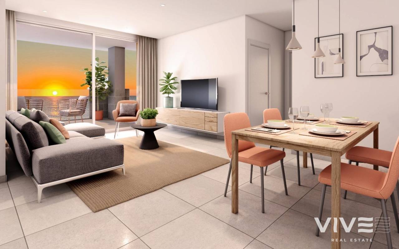 NEU GEBAUTE WOHNANLAGE IN LA MANGA Die neue Wohnanlage befindet sich an einem einzigartigen und besonderen Ort, zwischen zwei Meeren, in einer privilegierten Lage und mit allen Dienstleistungen, die Sie in der Region Murcia benötigen, an einer wunderschönen Küste mit Stränden mit transparentem und flachem Wasser. In dieser Wohnanlage wurden die Wohnungen so konzipiert, dass jeder Winkel des Grundstücks optimal genutzt wird, ebenso wie die die Auswahl der Materialien und das Design der Wohnungen. Erleben Sie eine Welt der Sensationen und angenehmen Momente mit allen Dienstleistungen und Aktivitäten, die Sie sich wünschen, zur Hand. Installationen - Klimaanlagen: Klimatisierungssystem durch Kanäle, für warm und kalt, im ganzen Haus (außer in den Verteilern und Bädern) und durch zentrale Konsole betrieben. Elektrische Geräte: Backofen aus rostfreiem Stahl. Schwarzes Keramikkochfeld mit drei Brennern. Kühlschrank aus rostfreiem Stahl. In die Möbel integrierte Dunstabzugshaube. Integrierter Geschirrspüler. Gemeinsame Bereiche: Zugang zum Gebäude durch weiße PVC-Tür und Doppelverglasung mit Luftkammer. Eingangshallen und Treppenstufen speziell mit nationalem Marmor verziert. Handlauf aus weißem, thermolackiertem Aluminium an den Innentreppen. Beleuchtung mit Anwesenheitserkennung im Keller und in den Gemeinschaftsbereichen. Weißes motorisiertes Garagen-Sektionaltor. Geländer der Urbanisation aus Edelstahl. Video-Türsprechanlage. Satellitenschüssel mit europäischen Kanälen. Schwimmbad mit begrünter Sonnenterrasse. La Manga del Mar Menor ist ein natürlicher Landstreifen, der von zwei Meeren umgeben ist: dem Mar Menor und dem Mittelmeer. Zu dieser Seltenheit kommen die zahlreichen Freizeitmöglichkeiten, Restaurants, Supermärkte, Ärzte, Apotheken, Wassersportzentren und Golfplätze. La Manga liegt an der Nordküste der Costa Calida und ist ein beliebtes Urlaubsziel für Touristen. Der schmale Landstreifen, der die warme Lagune vom kälteren Meer trennt, hat ein einzigartiges Mikroklima. Es ist eine der exotischsten Gegenden Spaniens. Der Flughafen von Corvera ist etwa 1 Autostunde und der Flughafen von Alicante etwa 2 Stunden entfernt.