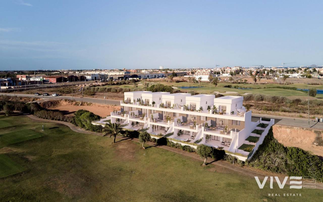 Neubau-Doppelhaushälften in La Serena Golf-Los Alcázares Entdecken Sie Ihr Traumhaus in den beeindruckenden Doppelhaushälften in erster Linie zum Golfplatz La Serena in Los Alcázares, wo modernes Leben auf atemberaubende Ausblicke auf den Golfplatz trifft. Diese sorgfältig gestalteten Häuser mit 3 Schlafzimmern und 4 Bädern sind perfekt für Familien, die Luxus, Komfort und einen Hauch von mediterranem Charme suchen. Schlafzimmer und Bäder: Drei geräumige Schlafzimmer, die mit Blick auf Komfort entworfen wurden. Jedes Schlafzimmer verfügt über Einbauschränke, die für reichlich Stauraum sorgen. Vier moderne Badezimmer mit hochwertigen Armaturen und Oberflächen. Eine gemütliche offene Küche und ein Wohnzimmer, ideal für Unterhaltung und Familienzusammenkünfte. Großes Wohnzimmer mit großen Fenstern, die den Raum mit Tageslicht durchfluten und einen atemberaubenden Blick auf den Golfplatz bieten. Ein großzügiger Keller, der als Freizeitraum, Heim-Fitnessstudio oder zusätzlicher Stauraum genutzt werden kann. Eigener Garagenplatz für sicheres Parken und Komfort. Privater Pool, umgeben von einem wunderschönen Garten, ideal zum Entspannen und Genießen der Sonne. Große Terrasse für Mahlzeiten im Freien und Unterhaltung mit malerischem Blick auf den Golfplatz. Klimaanlage und Heizung für ganzjährigen Komfort. Nähe zu lokalen Annehmlichkeiten wie Geschäften, Restaurants und natürlich Weltklasse-Golfplätzen. Los Alcázares ist bekannt für seine schönen Strände, seine lebendige Gemeinde und eine Vielzahl von Outdoor-Aktivitäten. Die Lage bietet eine perfekte Balance zwischen Ruhe und Erreichbarkeit und ist somit ein idealer Ort sowohl für Touristen als auch für ganzjährige Bewohner. Diese Immobilie ist eine perfekte Mischung aus moderner Architektur, Komfort und Freizeitmöglichkeiten. Verpassen Sie nicht die Gelegenheit, ein Stück Paradies in Los Alcázares zu besitzen!