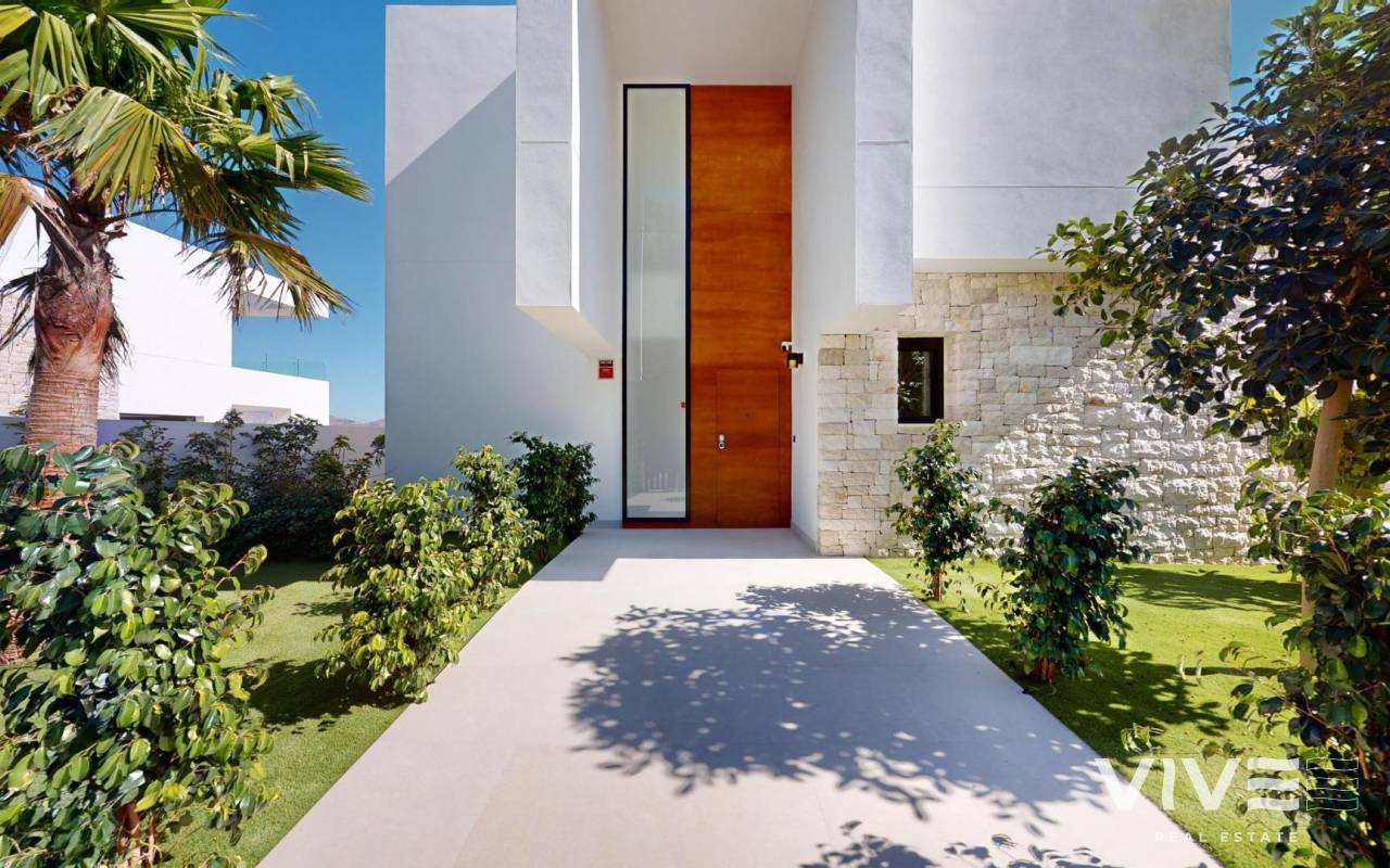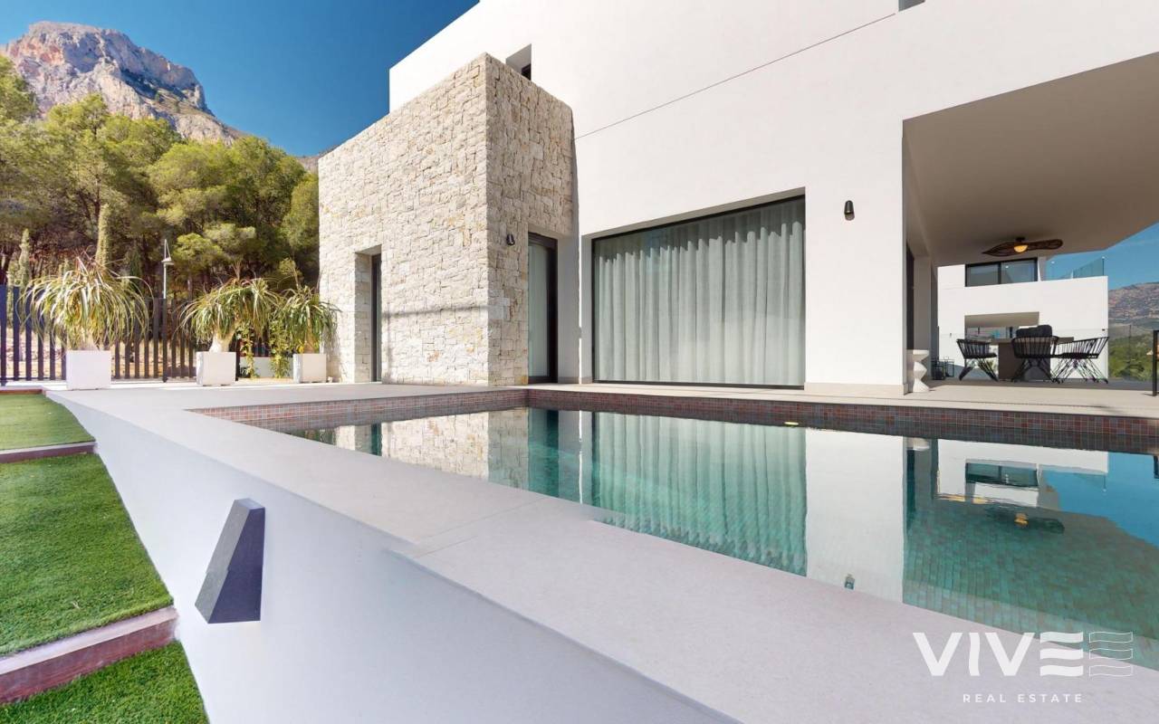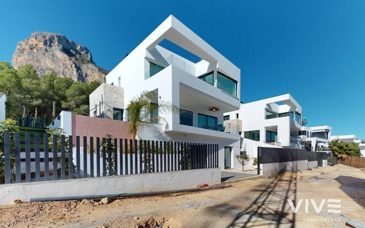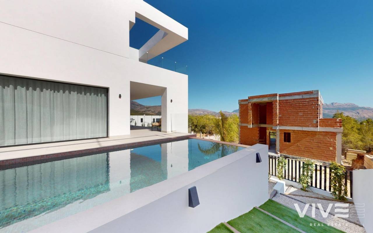 Neubau von Luxusvillen in Polop mit atemberaubender Aussicht Exklusive Entwicklung von 6 Luxusvillen in Polop Dieses brandneue Projekt mit 6 Luxusvillen befindet sich in Polop und bietet einen atemberaubenden Blick auf das Meer und die Berge. Jede Villa steht auf einem eigenen Grundstück mit privatem Swimmingpool, Parkplatz, Grillplatz und einem großen Garten. Die Villen erstrecken sich über zwei Etagen und einen Halbkeller mit insgesamt 293 m² auf privaten Grundstücken von 393 m². Großzügige Aufteilung und modernes Design Im Erdgeschoss finden Sie eine moderne Küche mit Kochinsel, einen offenen Wohn- und Essbereich, ein Schlafzimmer, ein Badezimmer, eine überdachte Terrasse und eine große offene Terrasse, von der aus Sie den Blick auf Polop, Altea und die umliegenden Berge genießen können. Im ersten Stock befinden sich zwei große Schlafzimmer, zwei Bäder und zwei überdachte und offene Terrassen. Der Halbkeller kann in einen unabhängigen Wohnraum umgewandelt werden. Qualitativ hochwertige Ausstattung und Energie-Effizienz Die Villen verfügen über eine voll ausgestattete Küche mit Siemens-Geräten. Die Bäder sind mit hochwertigen Roca-Armaturen ausgestattet. Jedes Haus hat eine Fußbodenheizung, eine Klimaanlage und einen Infinity-Pool. Die Villen wurden unter Berücksichtigung der Energieeffizienz entworfen und verfügen über ein Energiezertifikat der Klasse A. Erstklassige Lage in der Nähe von Annehmlichkeiten Diese Villen liegen nur 10 km von Benidorm und Altea entfernt und sind nur eine kurze Fahrt von La Nucía und Alfaz del Pi entfernt. Die Gegend bietet einfachen Zugang zu den wichtigsten Sehenswürdigkeiten, einschließlich der Strände von Benidorm (15 km), des Flughafens von Alicante (65 km) und mehrerer Golfplätze (innerhalb von 10 km). Die Nähe zu diesen Annehmlichkeiten und die ruhige Lage machen Polop zu einem idealen Ort für Naturliebhaber und Ruhesuchende.