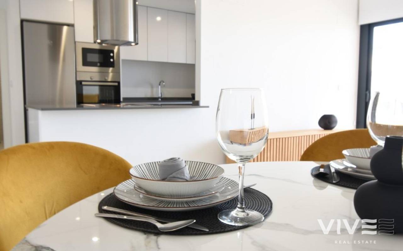 Neue Wohnsiedlung in San Miguel de Salinas Exklusive Wohnungen in einer einzigartigen natürlichen Umgebung Entdecken Sie dieses neue Projekt in San Miguel de Salinas, eine exklusive Wohnanlage, die aus 5 Wohnblöcken mit großzügigen Gemeinschaftsbereichen besteht, die Komfort und Lebensqualität bieten. Diese geschlossene Anlage verfügt über einen spektakulären Gemeinschaftsgarten von fast 10.000 m², der sich über drei Ebenen erstreckt und in den drei Gemeinschaftspools integriert sind, die von natürlichen Rasenflächen und sorgfältig ausgewählten Bäumen und Pflanzen umgeben sind. Die Wohnungen wurden so konzipiert, dass sie das natürliche Licht und die ungehinderte Aussicht nutzen und sich sowohl als Zweitwohnsitz als auch für das ganzjährige Wohnen eignen. Verfügbare Wohnungstypen In dieser exklusiven Wohnanlage haben Sie die Wahl zwischen: Erdgeschosse mit großen privaten Gärten. Zwischenebenen mit Terrassen von mehr als 20 m². Penthäuser mit Terrassen und privatem Solarium auf dem Dach. Derzeit verfügbar ist Block 1 mit 42 Wohnungen zu einem hervorragenden Preis-Leistungs-Verhältnis. Erstklassige Qualität und Ausstattung Alle Wohnungen sind komplett ausgestattet, einschließlich: Elektrogeräte in der Küche inklusive. Vollständig ausgestattete Badezimmer mit Möbeln, Bildschirmen und LED-Beleuchtungssystem. Komplette Installation einer Klimaanlage mit Luftkanälen. Parkplatz und Abstellraum sind im Preis inbegriffen. Wir haben auch Musterwohnungen in einem anderen ähnlichen Projekt, so dass Sie die Qualität der Oberflächen vor der Lieferung sehen können. Strategische Lage an der Costa Blanca San Miguel de Salinas ist ein charmantes Städtchen in der Region Vega Baja del Segura, nur wenige Minuten von den besten Stränden und Golfplätzen der Costa Blanca entfernt. Umgeben von einer privilegierten natürlichen Umgebung, bietet die Gemeinde eine ruhige Atmosphäre und alle wichtigen Dienstleistungen wie Supermärkte, Restaurants, Gesundheitszentren und Schulen. Entfernungen zu den wichtigsten Punkten von Interesse Las Colinas und Campoamor Golfplätze - 7 km. Strände von Orihuela Costa und Torrevieja - 10 km. Einkaufszentrum Zenia Boulevard - 9 km. Flughafen Alicante - 50 km. Flughafen Murcia-Corvera - 55 km. Ihr neues Zuhause erwartet Sie in San Miguel de Salinas Egal, ob Sie eine Investition an der Costa Blanca suchen oder ein Haus, das Sie das ganze Jahr über genießen können, diese Anlage bietet eine perfekte Kombination aus Luxus, Komfort und unschlagbarer Lage. Kontaktieren Sie uns noch heute, um weitere Informationen zu erhalten und einen Besichtigungstermin zu vereinbaren.