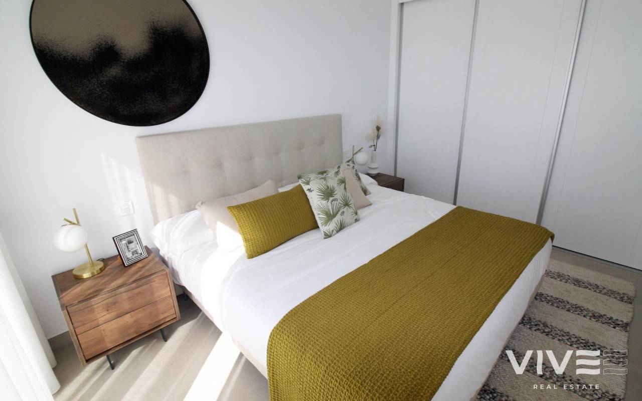 Moderne Reihenhäuser und Doppelhaushälften in Pilar de la Horadada Entdecken Sie diese exklusive Wohnanlage mit nur sechs modernen Doppelhaushälften und Reihenhäusern in der ruhigen Stadt Pilar de la Horadada an der Südspitze der Costa Blanca. Diese Neubauten mit moderner Architektur und hochwertiger Ausstattung bieten eine perfekte Mischung aus Komfort und Stil in einer begehrten Lage. Geräumige Grundrisse mit drei und vier Schlafzimmern Jedes Haus verfügt über großzügige Wohnbereiche mit einer offenen Küche und einem Wohnzimmer, die so gestaltet sind, dass sie viel Tageslicht hereinlassen. Wählen Sie zwischen Grundrissen mit drei oder vier Schlafzimmern und je nach Modell zwei oder drei Badezimmern. Die Grundrisse im Erdgeschoss umfassen zwei Terrassen: eine vordere Terrasse mit Platz für einen privaten Parkplatz und eine hintere Terrasse mit direktem Zugang zum Gemeinschaftspool. Im ersten Stock befindet sich eine zusätzliche Terrasse neben den Schlafzimmern, während im Obergeschoss eine Dachterrasse mit Panoramablick und einem idealen Platz für Unterhaltung im Freien bietet. Hochwertige Innenausstattung Die Innenräume sind mit hochwertigen Materialien ausgestattet, darunter glatte Putzwände, Porzellanfliesenböden und Einbauschränke in jedem Schlafzimmer. Die offenen Küchen sind komplett mit modernen Einbauschränken ausgestattet. Zu den weiteren Annehmlichkeiten gehören die Vorinstallation für eine Klimaanlage und aerothermische Systeme für energieeffiziente Warmwasserbereitung. Gemeinschaftseinrichtungen und Privatparkplatz Die Bewohner genießen einen gepflegten Gemeinschaftspool, der sich perfekt zum Entspannen an sonnigen Tagen eignet. Jedes Haus verfügt über einen privaten Parkplatz auf dem Grundstück, der Sicherheit und Komfort gewährleistet. Pilar de la Horadada: Traditioneller Charme an der Costa Blanca Pilar de la Horadada ist eine charmante spanische Stadt, die für ihre einladende Atmosphäre und ihre traditionelle Architektur bekannt ist. Das Stadtzentrum ist nur einen kurzen Spaziergang entfernt, wo Sie Supermärkte, lokale Geschäfte, Restaurants, Bars und malerische Plätze finden. Genießen Sie einen gemütlichen Spaziergang entlang der Hauptstraße, probieren Sie authentische mediterrane Küche oder erkunden Sie Kunsthandwerksboutiquen. Nähe zu Stränden und Flughäfen Erleben Sie das Beste des Lebens an der Küste mit den feinen Sandstränden von Torre de la Horadada und Mil Palmeras, die nur 5 Autominuten (ca. 2 km) von Ihrem neuen Zuhause entfernt sind. Diese Strände bieten klares Wasser, goldenen Sand und eine lebhafte Promenade mit Cafés und Restaurants mit Meerblick. Für eine gute Anbindung ist der Flughafen Corvera (Murcia) ca. 40 km (40 Minuten mit dem Auto) und der Flughafen Alicante ca. 55 km (55 Minuten mit dem Auto) entfernt. Darüber hinaus befindet sich das Einkaufszentrum La Zenia Boulevard in 15 km (15 Minuten) Entfernung von der Wohnanlage und bietet eine große Auswahl an Geschäften, Restaurants und Unterhaltungsmöglichkeiten. Sichern Sie sich noch heute Ihr neues Zuhause Verpassen Sie nicht diese Gelegenheit, eine brandneue Doppelhaushälfte oder ein Reihenhaus in Pilar de la Horadada zu erwerben. Mit ihrem modernen Design, der hochwertigen Ausstattung und der erstklassigen Lage in der Nähe von Stränden, Geschäften und Dienstleistungen eignen sich diese Immobilien ideal als Dauerwohnsitz, Ferienhaus oder Kapitalanlage. Kontaktieren Sie uns jetzt für weitere Informationen und um einen Besichtigungstermin zu vereinbaren.