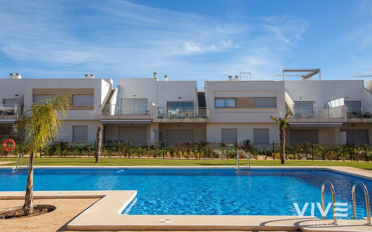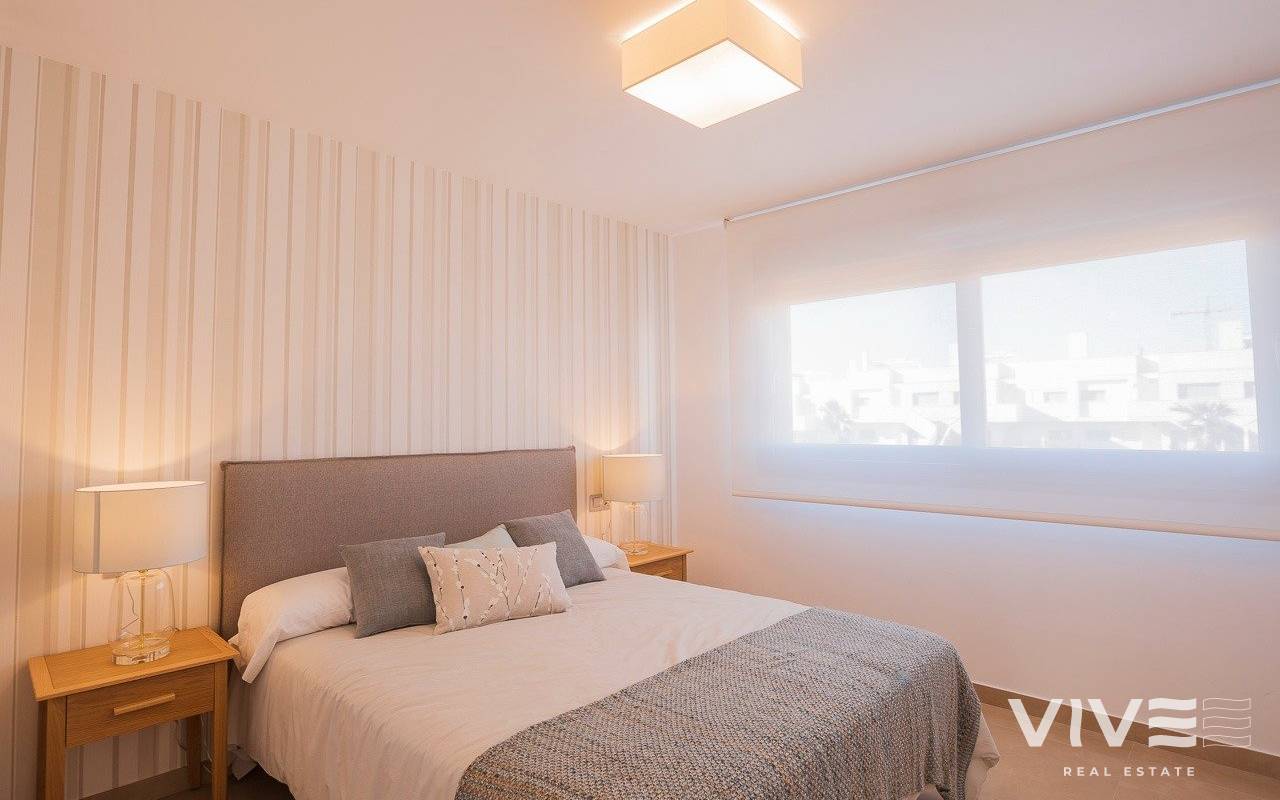 NEUBAU WOHNANLAGE MIT BUNGALOW-APPARTEMENTS IN VISTABELLA Neubau Wohnanlage auf Bungalow-Wohnungen in Vistabella in der Nähe des Golfplatzes. Komplex mit Gemeinschaftseinrichtungen und Schwimmbad bestehen aus 2 und 3 Schlafzimmer Bungalows, im Erdgeschoss mit privatem Garten und Dachgeschoss mit privatem Solarium, offene Küche mit dem Wohnbereich, Einbauschränke, Terrasse. Jede Wohnung hat einen privaten Parkplatz. Eine Option Abstellraum zu einem Aufpreis. Auf Vistabella Golf gibt es Platz für alle. Der Platz ist so angelegt, dass jeder Spieler ihn von Anfang bis Ende genießen kann. Seine hügeligen Straßen, strategischen Bunker oder Seen sind einige der Merkmale, die ihn zu einem der attraktivsten Plätze der Gegend machen, wo jeder Schlag eine Herausforderung und ein Genuss für die Sinne ist. Die 18 Löcher von Vistabella Golf, Par 72 und mehr als 6.000 Meter lang, wurden nach den Richtlinien der modernen Felder mit 4 Abschlägen von großer Amplitude an jedem Loch, breiten Fairways und erhöhten Bunkern entworfen. Das Clubhaus und das Restaurant von Vistabella Golf sowie die örtlichen Bars und Geschäfte sind in 5 Minuten zu Fuß zu erreichen. Die geschäftige Stadt San Miguel de Salinas und Los Montesinos sind nur 5 Autominuten entfernt und die schönen Strände von Guardamar, die mit der Blauen Flagge ausgezeichnet sind, sind nur 15 Autominuten entfernt. Der Flughafen Alicante ist 35 Minuten entfernt und der neue Flughafen Corvera Murcia ist 45 Minuten entfernt.