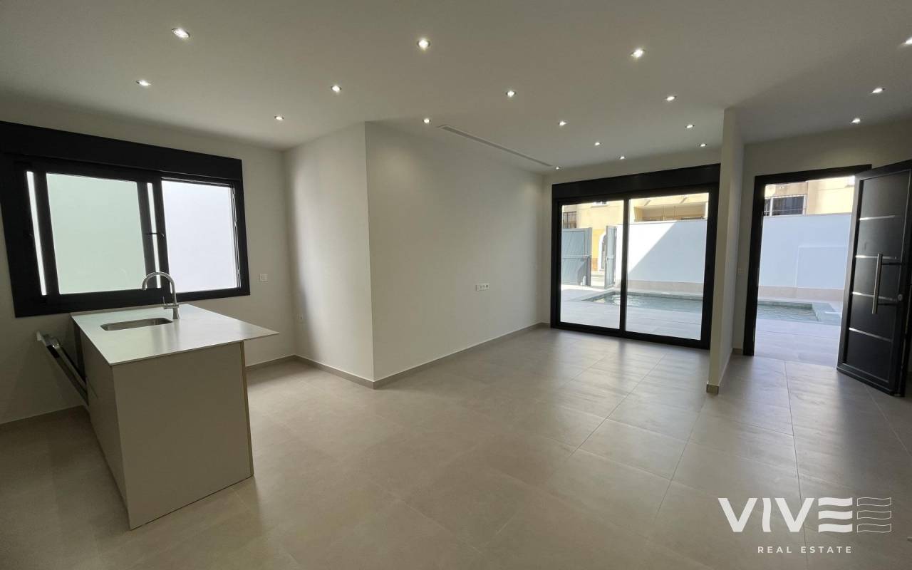 Neubau-Villen zum Verkauf in Las Heredades, Costa Blanca Moderne Villen in einer ruhigen und gut angebundenen Gegend Entdecken Sie diese exklusive Wohnanlage mit 5 modernen Villen in Las Heredades, einem charmanten und ruhigen Dorf in der Nähe von Rojales und Almoradí, im Herzen der Costa Blanca Süd. Diese ruhige Wohngegend bietet einen authentischen spanischen Lebensstil inmitten der Natur und dennoch in der Nähe aller Annehmlichkeiten, Golfplätze und der nur 12 km entfernten Mittelmeerstrände von Guardamar del Segura und Torrevieja. Elegantes und funktionales Design Diese neu gebauten Villen zeichnen sich durch ein modernes mediterranes Design aus, das Komfort, Stil und Funktionalität vereint. Jede Immobilie erstreckt sich über zwei Etagen und bietet helle und geräumige Innenräume, die nahtlos in die Außenbereiche übergehen. Die Villen verfügen über 3 Schlafzimmer und 3 Badezimmer, eine offene Küche mit voll integrierten Geräten und einen geräumigen Wohn-Essbereich mit direktem Zugang zur Terrasse und zum Garten. Diese Häuser wurden mit hochwertigen Materialien und Liebe zum Detail gebaut und garantieren das ganze Jahr über einen komfortablen und energieeffizienten Lebensstil. Private Außenbereiche und Premium-Ausstattung Jede Villa wurde auf einem eigenen Grundstück erbaut und verfügt über: Privaten Swimmingpool (6 x 3 m) Landschaftsgarten mit automatischem Bewässerungssystem Privaten Parkplatz für zwei Fahrzeuge Terrassen und Sitzbereiche im Freien, die sich perfekt eignen, um das mediterrane Klima zu genießen Weitere Ausstattungsmerkmale sind: Klimaanlage über Luftkanäle LED-Beleuchtung im gesamten Innen- und Außenbereich Einbauschränke in allen Schlafzimmern Voll ausgestattete Küche mit modernen Geräten Ein perfekter Ort für entspanntes Leben am Mittelmeer Las Heredades ist ideal für diejenigen, die Ruhe suchen, ohne auf die Nähe zu Stränden, Golfplätzen und Freizeitgebieten zu verzichten. Mit seiner traditionellen spanischen Atmosphäre und den hervorragenden Verkehrsanbindungen ist diese Gegend sowohl für das dauerhafte Wohnen als auch für den Urlaub an der Costa Blanca perfekt geeignet. Entfernungen zu wichtigen Sehenswürdigkeiten: Strände von Guardamar del Segura: 12 km Stadtzentrum von Rojales: 3 km Almoradí: 2 km La Marquesa Golf: 5 km Torrevieja: 15 km Internationaler Flughafen Alicante: 40 km (ca. 45 Minuten mit dem Auto) Flughafen Murcia (Corvera): 50 km Kontaktieren Sie uns noch heute, um einen Besichtigungstermin zu vereinbaren und Ihr Traumhaus in Las Heredades an der Costa Blanca zu entdecken.