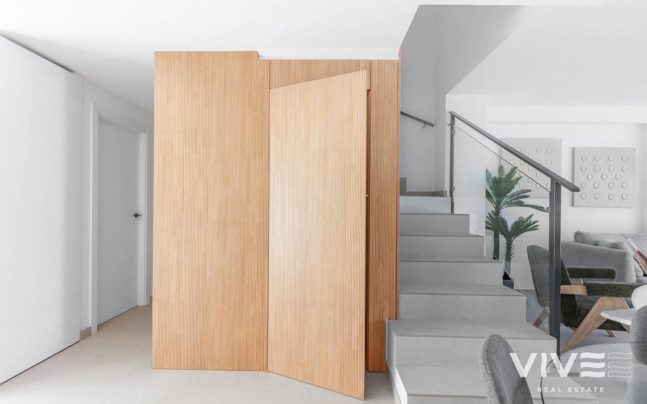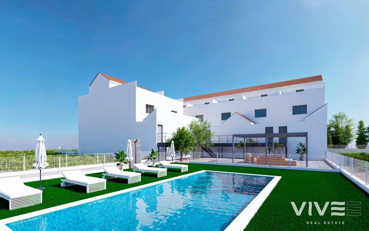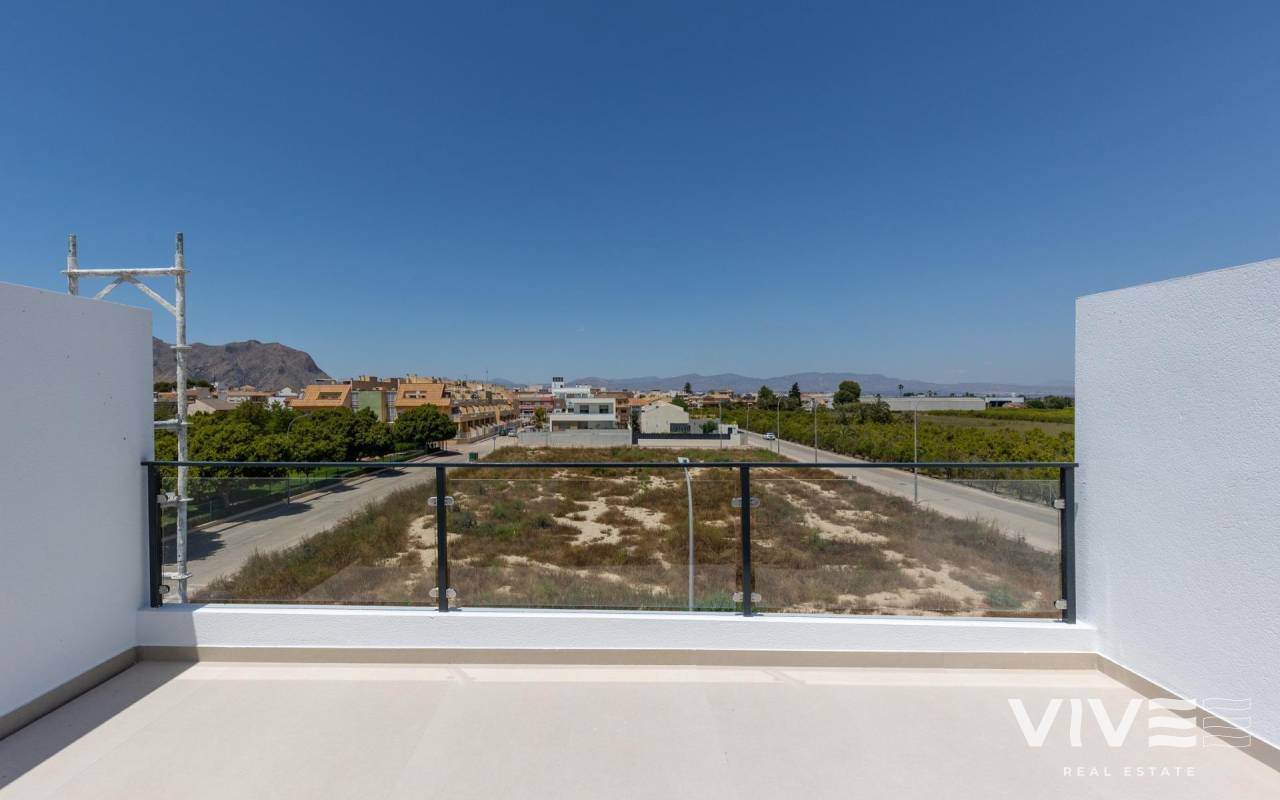 Moderne Reihenhäuser mit Solarium und Keller in Rafal, Alicante Geräumige Häuser in ruhiger, gut angebundener Lage In der charmanten Stadt Rafal, im Herzen der Region Vega Baja in Alicante, bietet diese neu renovierte Wohnanlage eine einzigartige Gelegenheit, Raum, Komfort und Lebensqualität in einer entspannten mediterranen Umgebung zu genießen. In einer ruhigen Gegend neben dem städtischen Sportkomplex gelegen, ist diese Wohnanlage nur einen kurzen Spaziergang vom Stadtzentrum entfernt, wo Sie alle wichtigen Dienstleistungen des täglichen Bedarfs finden. Exklusive Wohnanlage mit nur 9 Stadthäusern Diese Boutique-Siedlung besteht aus nur 9 geräumigen Reihenhäusern mit jeweils über 200 m² Wohnfläche, einschließlich eines 66 m² großen Untergeschosses mit privatem Parkplatz für 2 Fahrzeuge. Die Häuser sind auf drei Etagen verteilt und verfügen über: 4 Schlafzimmer 2 Badezimmer (eines davon en-suite) 1 Gäste-WC im Erdgeschoss Mehrere Terrassen, darunter eine private Sonnenterrasse im zweiten Stock Gemeinschaftspool mit Kunstrasenfläche Genießen Sie von den oberen Etagen aus den Blick auf die offene Landschaft und profitieren Sie von viel Tageslicht und großzügigen Innenräumen, die für modernes Familienleben konzipiert sind. Hochwertige Ausstattung und Energieeffizienz Diese Häuser wurden unter Berücksichtigung von Qualität und Nachhaltigkeit gebaut: Sicherheitseingangstür Aluminiumfenster mit thermischer Trennung und Doppelverglasung Motorisierte Rollläden in Schlafzimmern und Wohnzimmer Duschwannen aus Kunstharz mit Glasabtrennungen Vorinstallierte Klimaanlage Warmwasser über aerothermisches System Privater Parkplatz abseits der Straße Besuchen Sie das Musterhaus und überzeugen Sie sich selbst von der hochwertigen Ausstattung! Dank der hervorragenden Anbindung an die Autobahn A-7 ist die Wohnanlage gut mit den wichtigsten Städten verbunden: Orihuela – 11 km Elche – 25 km Alicante – 45 km Murcia – 50 km Flughafen Alicante-Elche – 47 km Strände von Guardamar del Segura – 25 km La Finca Golf Resort – 14 km Ein nachhaltiges Stadterneuerungsprojekt Dieses Projekt ist das Ergebnis einer ehrgeizigen Stadterneuerungsinitiative. Ursprünglich aufgrund der Finanzkrise unvollendet geblieben, wurden die Gebäude nun in moderne, erschwingliche und nachhaltige Wohnungen umgewandelt, wobei ihr Charakter erhalten blieb und sie an die heutigen Standards angepasst wurden. Diese Wohnanlage fördert ein verantwortungsbewusstes Stadtwachstum, indem bestehendes Land wiederverwendet wird, anstatt neues Terrain zu verbrauchen. Ihr ideales Zuhause in der Region Vega Baja Wenn Sie ein geräumiges, helles und modernes Zuhause in einer ruhigen und dennoch gut angebundenen Stadt suchen, bietet Ihnen diese limitierte Kollektion von nur 9 Häusern Komfort, Exklusivität und nachhaltiges Wohnen. Kontaktieren Sie uns noch heute, um sich Ihren Platz in dieser einzigartigen Wohnanlage im Herzen des südlichen Alicante zu sichern.