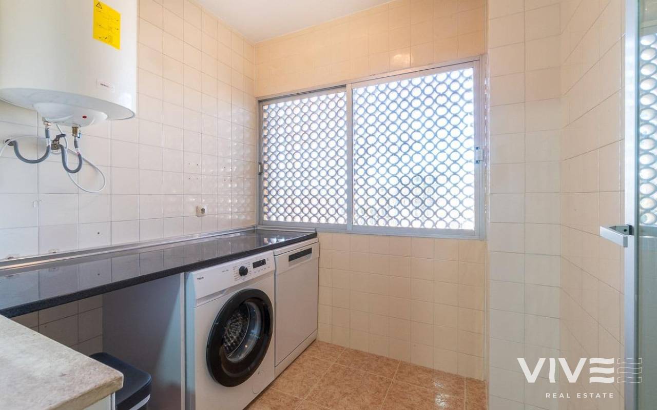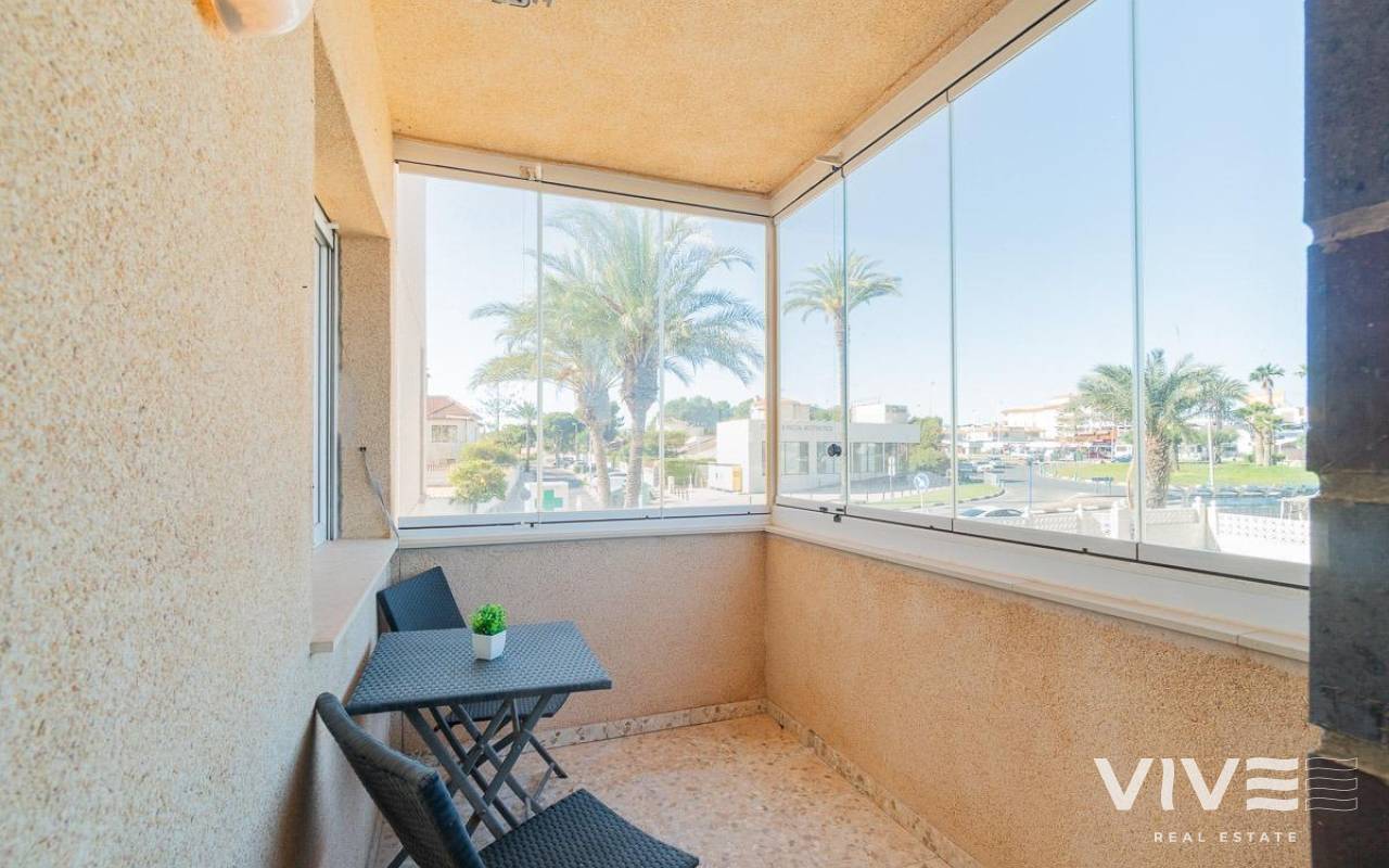Entdecken Sie dieses charmante Apartment in Orihuela Costa, idyllisch gelegen in La Zenia. Es befindet sich nur 300 Meter von einem der schönsten Strände des Mittelmeers entfernt und ist nur wenige Gehminuten vom Einkaufszentrum Zenia Boulevard mit seinen Geschäften, einer Apotheke, Bars und Restaurants entfernt.. . Die Wohnung liegt in einem Apartmentgebäude mit Gemeinschaftspool und Gartenanlage. Ein Parkplatz im Gemeinschaftsbereich sowie eine private, abgeschlossene Garage/ein Abstellraum im Untergeschoss gehören ebenfalls dazu. Dies ist besonders in den Sommermonaten von Vorteil, wenn die Parkplatzsuche schwieriger und die Lage voller ist. So können Sie Ihr Fahrzeug bequem parken und haben in Ihrer privaten Garage Platz für Auto, Koffer, Fahrräder und andere persönliche Gegenstände.. . Dieses Refugium, ideal zum ganzjährigen Wohnen oder für Ferien, ist nach Süd-Südwesten ausgerichtet und verfügt über eine verglaste Terrasse mit Morgensonne und eine weitere mit Nachmittagssonne. Im Winter können Sie diese als Solarium nutzen, und die Wärme der verglasten Außenbereiche sorgt für ein angenehmes Raumklima im restlichen Haus. Im Sommer lassen sich die Glaspaneele der Anbauten öffnen, um die Meeresbrise für optimale Belüftung ins Haus zu lassen.. . Das Haus selbst bietet drei komfortable Doppelzimmer, alle geräumig und mit Einbauschränken ausgestattet, sowie zwei Badezimmer mit Dusche für mehr Komfort und barrierefreien Zugang.. . Die neu renovierte und voll ausgestattete Küche lädt zu kulinarischen Abenteuern ein und verfügt über einen separaten, geschlossenen Hauswirtschaftsraum, in dem Sie die Waschmaschine benutzen können, ohne die anderen Bewohner zu stören. All dies öffnet sich zu einem großen Wohn-Esszimmer neben der bereits erwähnten, geräumigen und hellen Hauptterrasse mit Glasfront.. . Die weißen PVC-Fenster mit Doppelverglasung sorgen für Komfort sowie Wärme- und Schalldämmung und ermöglichen Ihnen so, das Haus das ganze Jahr über unbeschwert zu genießen.. . Dieses charmante Apartment verfügt über eine Klimaanlage in den Schlafzimmern für einen angenehmen Schlaf an warmen Tagen, Einbauschränke für zusätzlichen Komfort und zwei Balkone, die sich perfekt eignen, um bei Sonnenuntergang ein Glas Wein zu genießen.. . In einer ruhigen Ecke gelegen, bietet dieses Apartment einen unverbaubaren Ausblick, der zum Entspannen einlädt. Nur wenige Schritte entfernt finden Sie alles, was Sie für einen gelungenen Urlaub brauchen: Busse, Geschäfte, Ärztezentren, Schulen, Golfplätze, Krankenhäuser und Parks. La Zenia ist ein lebendiger und pulsierender Ort, ideal für einen unvergesslichen Urlaub.. . Dieses Apartment ist die perfekte Wahl für alle, die einen festen Wohnsitz für ihre Familie oder ein Feriendomizil suchen, wo Komfort und Bequemlichkeit auf den Charme und die Schönheit des Mittelmeers treffen.. . Preis: 189.900 €. Steuern und Nebenkosten sind nicht enthalten (gemäß den geltenden Bestimmungen). Eine Aufschlüsselung der zusätzlichen Kosten erhalten Sie vor der Buchung.