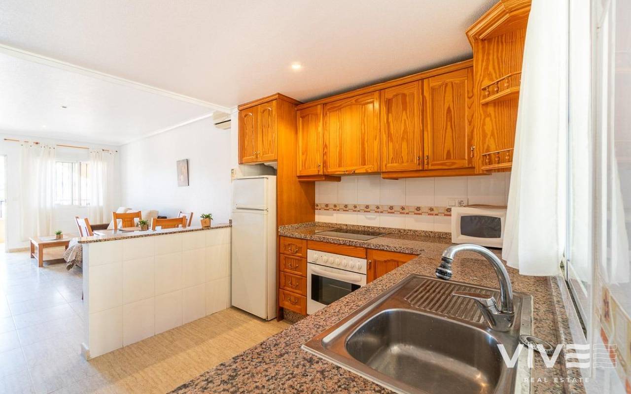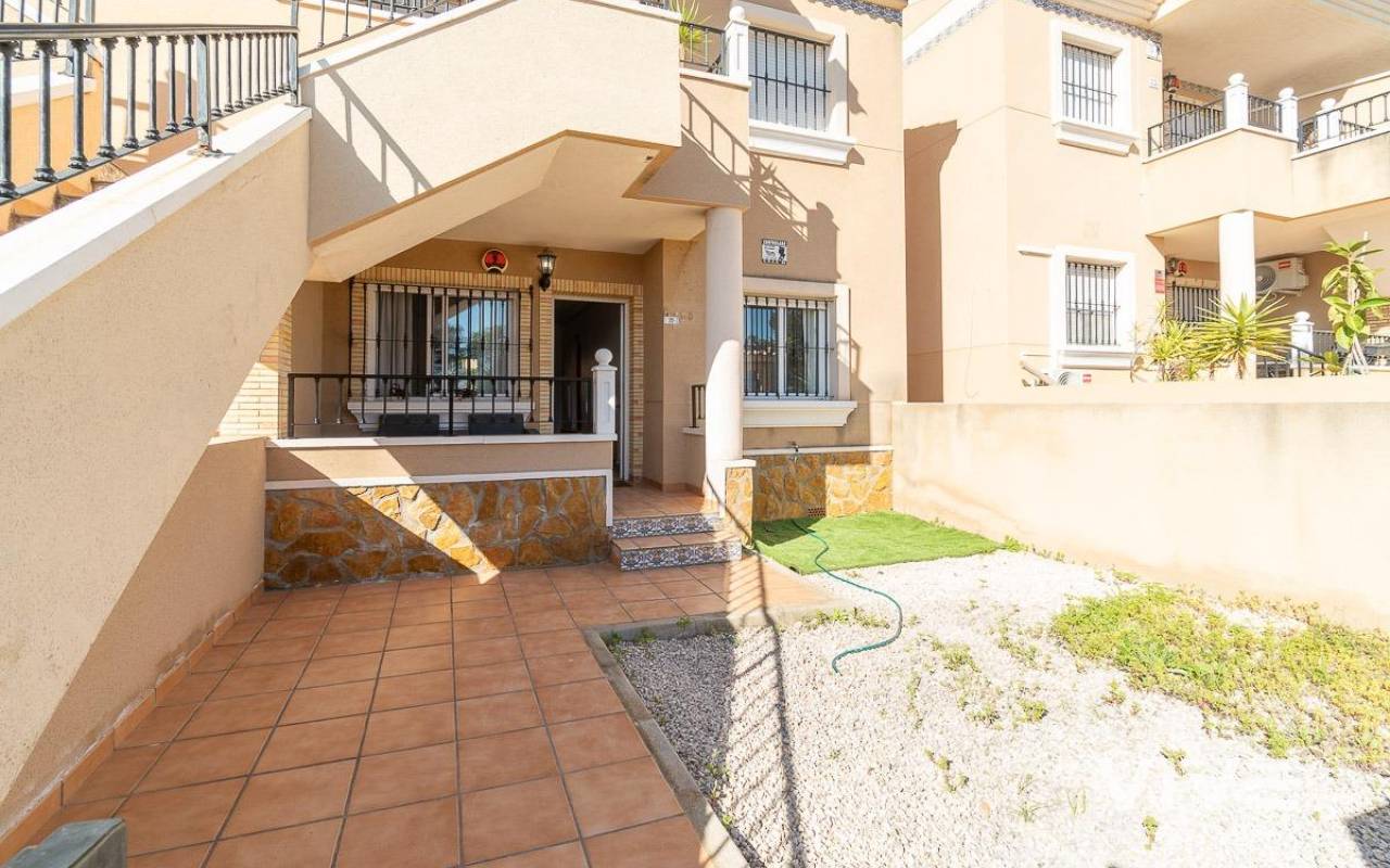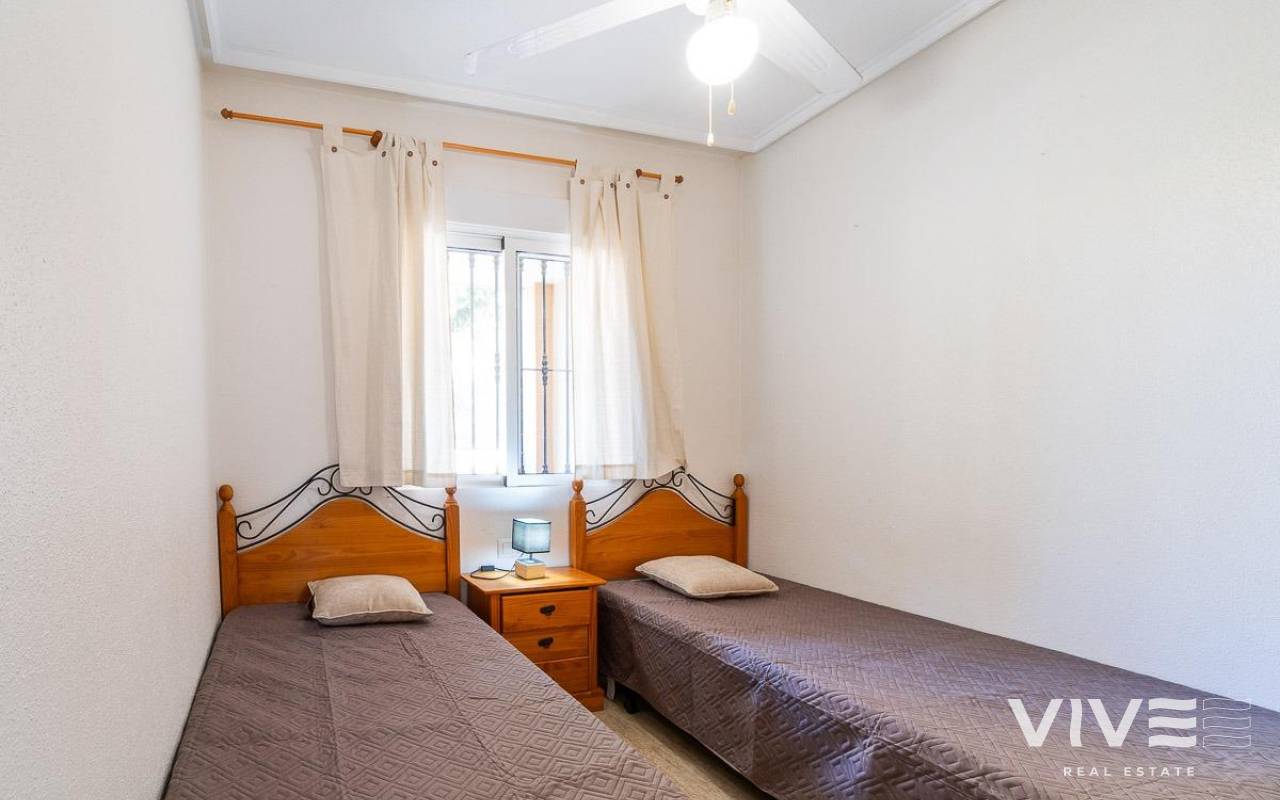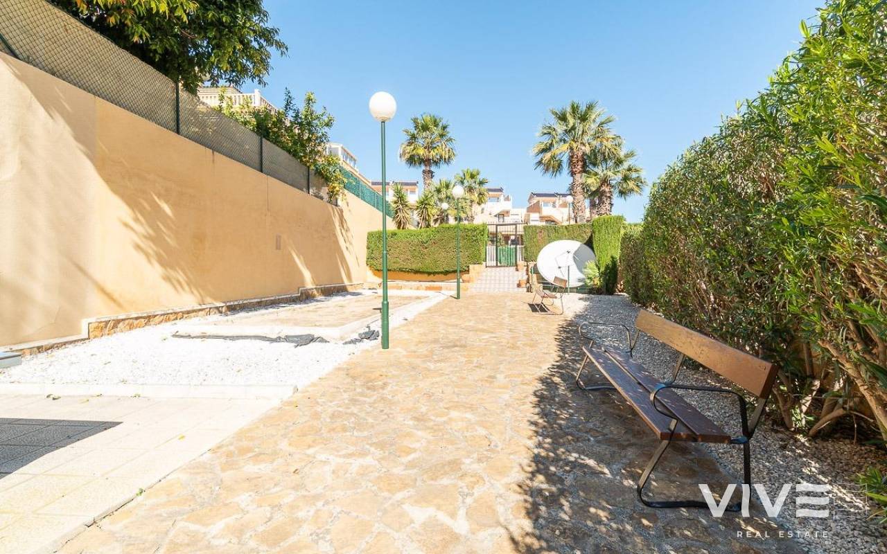 Erdgeschoss-Bungalow in der Gegend PAU 26 in Orihuela Costa, eine ruhige und gut angebundene Lage, ideal sowohl als Hauptwohnsitz als auch für Urlaubsaufenthalte.. . Die Immobilie verfügt über eine Nord- und Südausrichtung, die eine hervorragende Belüftung und Helligkeit den ganzen Tag über gewährleistet. Vorne befindet sich ein angenehmer Außenbereich/Garten mit direktem Zugang zum Haus, ideal zum Entspannen im Freien.. . Hinter dem Haus gibt es einen großen, nach Süden ausgerichteten Patio, perfekt, um die Sonne zu genießen, mit direktem Zugang zum gemeinschaftlichen Swimmingpool, der sich in einer gepflegten Wohnanlage mit viel Grünfläche befindet.. . Im Inneren bietet die Immobilie ein großes Wohnzimmer mit offener Küche, das einen funktionalen und komfortablen Raum für den Alltag schafft. Es verfügt über zwei helle Schlafzimmer und ein voll ausgestattetes Badezimmer, alles in perfektem Zustand und bezugsfertig.. . Die Lage ist ausgezeichnet, sehr nahe am renommierten Campo de Golf Villamartín, dem beliebten Zenia Boulevard sowie Supermärkten und allen Dienstleistungen in wenigen Minuten, was Komfort und Lebensqualität das ganze Jahr über garantiert.. . Darüber hinaus wurde die Immobilie mehrfach als Langzeitmiete vermietet, was sie auch als Investition zu einer hervorragenden Option macht und ein nachweisliches Mietpotenzial bietet.. . Eine ideale Gelegenheit für alle, die Ruhe, Sonne und Nähe zu allen Dienstleistungen an der Costa Blanca suchen, mit dem zusätzlichen Vorteil einer Immobilie mit stabilem Vermietungsverlauf.. . Preis: 169.000 €. Steuern und Kaufnebenkosten sind nicht im Preis enthalten (gemäß geltender Gesetzgebung). Eine Aufschlüsselung der zusätzlichen Kosten wird vor der Reservierung bereitgestellt.. . Im Falle einer Transaktion mit Doppelvermittlung betragen die vom Käufer zu zahlenden Provisionen 1,5 % des endgültigen Kaufpreises, mindestens jedoch 3.000 €, zuzüglich Mehrwertsteuer (21 %), sofern nichts anderes ausdrücklich vereinbart wurde. Diese Gebühren sind nicht im angegebenen Preis enthalten..