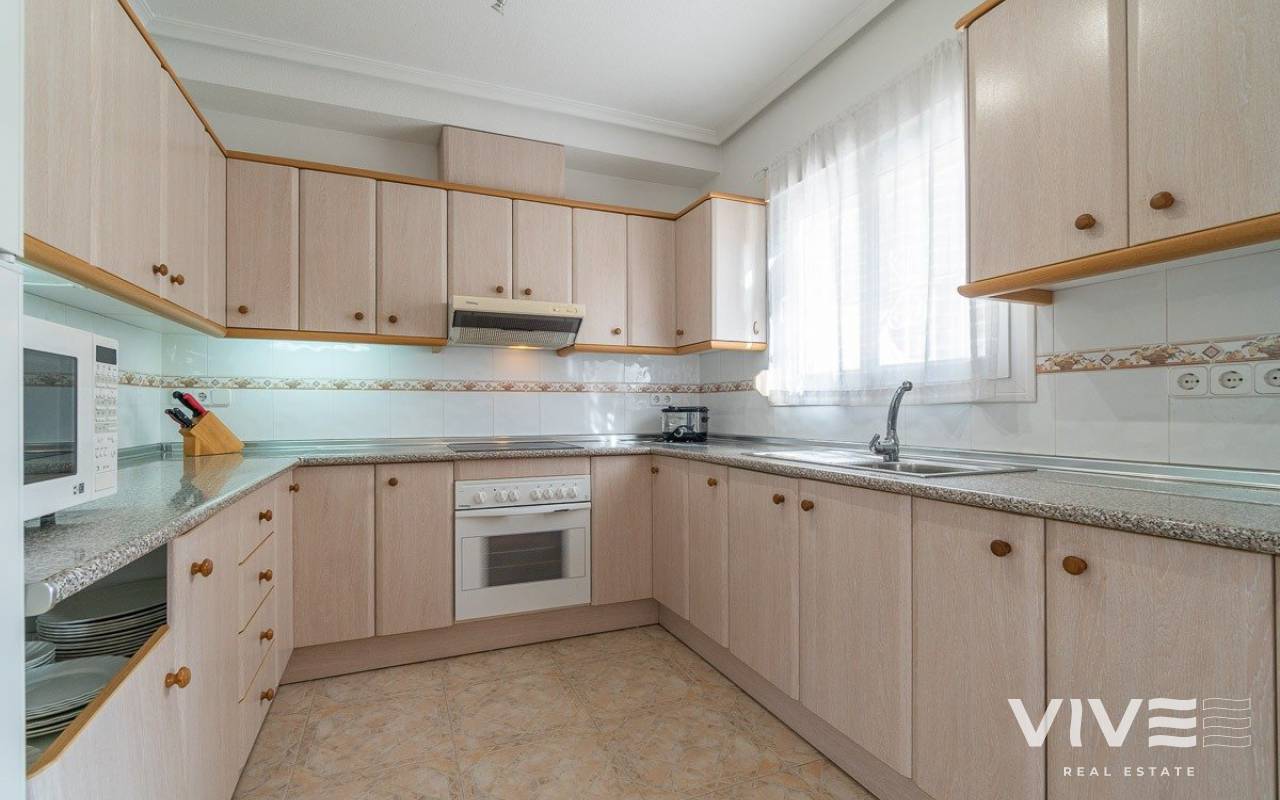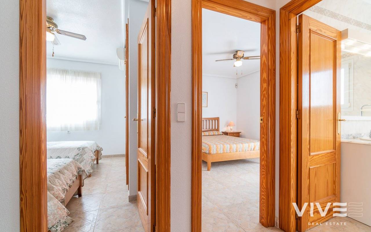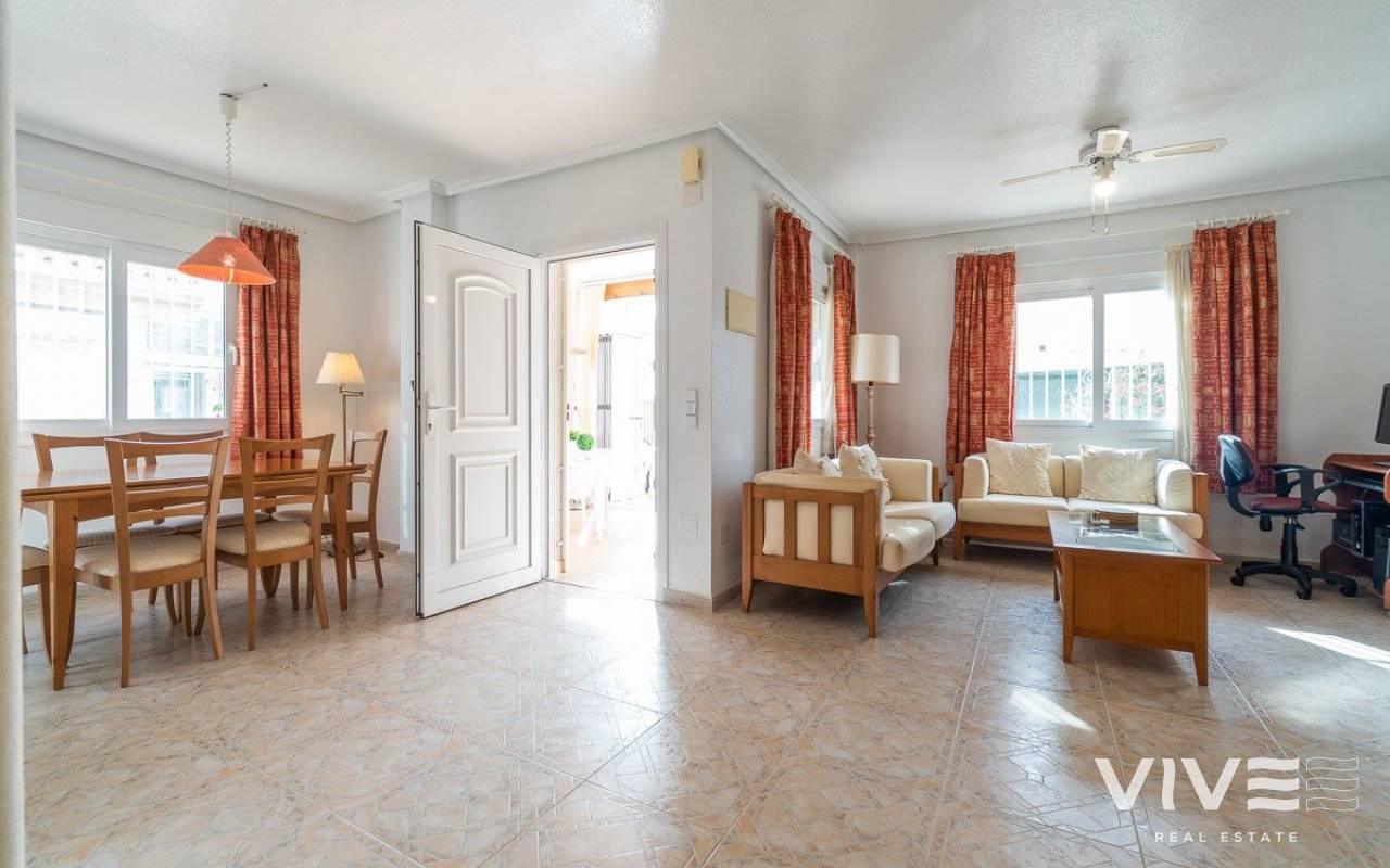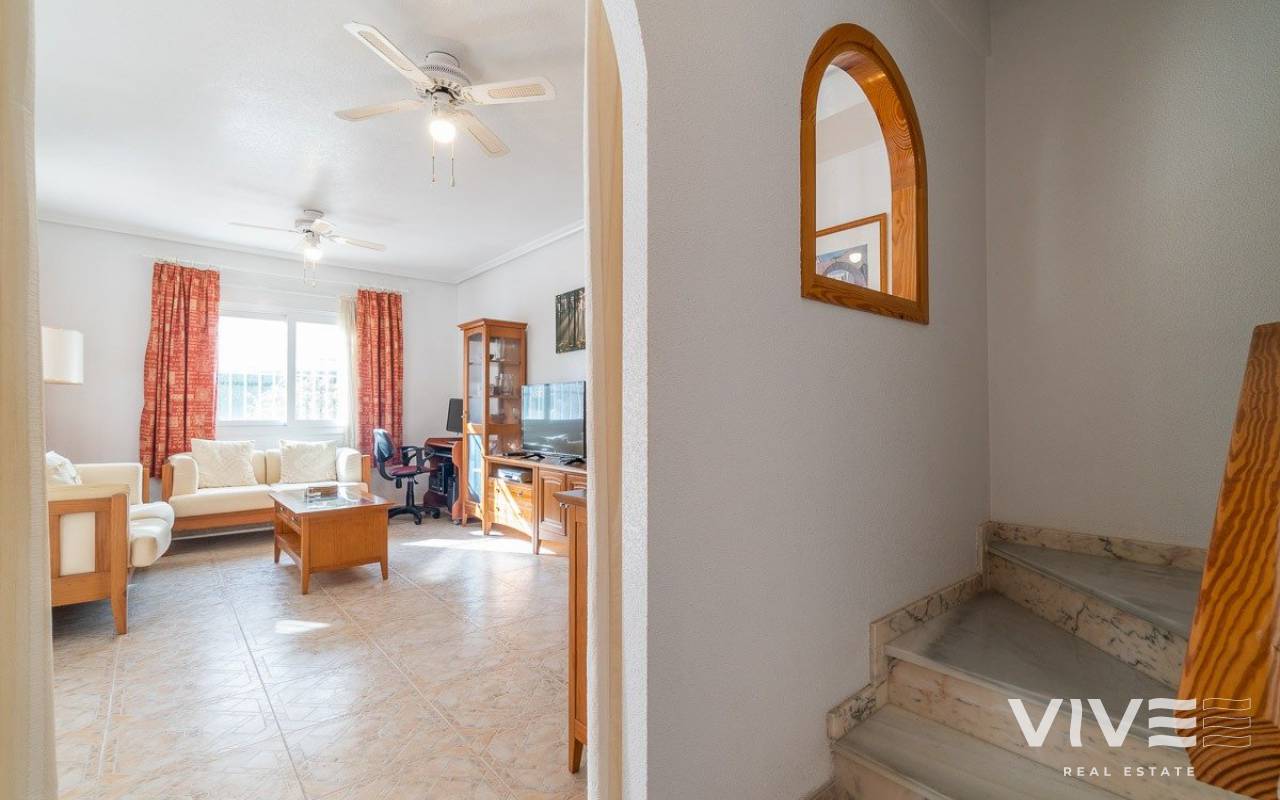 Geräumiges Vier-Ecken-Stadthaus, in einer Urbanisation mit Gemeinschaftspool im Zentrum von Playa Flamenca. Ganz in der Nähe von Sport- und Freizeitanlagen, dem Mercadona-Einkaufszentrum, dem Zenia-Boulevard und anderen Einkaufsmöglichkeiten, nur wenige Gehminuten von den Stränden von Playa Flamenca und den öffentlichen Schulen in der Umgebung entfernt. Die Urbanisation selbst hat nur 44 Grundstücke, so dass es sehr ruhig ist und alle Eigentümer kennen sich untereinander, es hat automatische Tore für den Zugang von Fahrzeugen für Bequemlichkeit und Leichtigkeit des Parkens vor der Tür. Das Grundstück ist nach Süden ausgerichtet, so dass es den ganzen Tag über Sonne hat, von morgens bis abends. Das Haus hat die gleiche Quadratmeterzahl wie ein Haus mit 3 Schlafzimmern, aber der Raum wurde genutzt, um eine andere Verteilung im Erdgeschoss zu machen, um eine größere Küche und ein Wohn-Esszimmer zu haben, um die Tagesbereiche mehr zu nutzen. Das Anwesen verfügt über eine große geflieste Eckterrasse mit Ess- und Liegebereich, die direkt auf die private Zufahrtsstraße blickt, wo Sie Ihr Fahrzeug sicher abstellen können. Im Erdgeschoss gibt es eine verglaste Terrasse, auf der man sich im Winter vor dem kalten Wind geschützt sonnen kann. Von hier aus hat man Zugang zur Eingangshalle, zur großen, unabhängigen Küche, die komplett eingerichtet und mit Geräten ausgestattet ist, mit einem Frühstücksbereich, und neben der Küche gibt es einen Essbereich für formellere Mahlzeiten und einen weiteren großen Wohnbereich mit zwei Räumen, einem für den Fernseher und einem anderen zum Lesen, alle diese Bereiche haben ihre eigenen Fenster, die sie sehr hell machen. Es gibt auch ein Duschbad im Erdgeschoss, so dass Sie es bequem benutzen können, wenn Sie vom Strand oder vom Schwimmbad zurückkommen, ohne nach oben ins Hauptbadezimmer gehen zu müssen, und es endet mit einem großen Abstellraum, um all das Gerümpel zu verstauen, das Sie im Haus haben und von dem Sie nie wissen, wohin es gehört. Im ersten Stock befinden sich die beiden Hauptschlafzimmer, eines davon mit Frühstücksbalkon, beide mit Einbauschränken und ein komplettes Badezimmer, sowie eine Waschküche mit Heizung und Regalen zur Aufbewahrung der Bettwäsche und Handtücher. Auf dem Dach des Hauses gibt es eine große Sonnenterrasse von etwa 30 m2, mit Sonne den ganzen Tag und Meerblick. Die Immobilie ist sehr geräumig, möbliert und wurde gerade erst gestrichen und dekoriert, so dass sie sofort bezugsfertig ist. Es ist einen Besuch wert, um die vielfältigen Möglichkeiten des Grundstücks zu sehen. ALEMAN Ideales Anwesen für diejenigen, die die Ruhe von Orihuela costa genießen möchten, wo Prestige, Sicherheit und gutes Wetter das ganze Jahr über herrschen. Orihuela Costa ist ein Gebiet von besonderem Interesse für diejenigen, die an der Costa Blanca einige der besten Strände und Golfplätze suchen und genießen wollen, da wir von sechs Golfplätzen umgeben sind (C.Golf Villamartin, C.Golf Las Ramblas, C.Golf Campoamor, C. Golf de Entre Naranjos, C. Golf La Finca Golf [amp;]amp; C. Golf Lo Romero). Auch, wenn Sie ein Liebhaber von Shopping und neuen Trends sind, können Sie einen angenehmen Tag verbringen indem Sie unser berühmtes Einkaufszentrum La Zenia Boulevard besichtigen. Als ein wesentlicher Punkt für alle Einwohner und Touristen aus Orihuela Costa und Torrevieja verfügen wir über einen der prestigeträchtigsten Gesundheitsdienste der valencianischen Gemeinschaft: das Krankenhaus von Torrevieja und das Krankenhaus Quiron (privat geführte) sind sehr nahe. Es lohnt sich auch, die lokalen Märkte zu besuchen, wo Sie typische Produkte der Region kaufen können und echte Schnäppchen finden, die Sie nicht enttäuschen werden. Donnerstags in Dehesa de Campoamor (Agua Marina), Freitags in Torrevieja (Industriegebiet Casa Grande) und Samstags in Playa Flamenca (Nicolas de Bussi). Aus all diesen Gründen vertrauen wir, dass Sie auf unsere Gegend für Ihre neue Immobilieninvestition setzen werden.