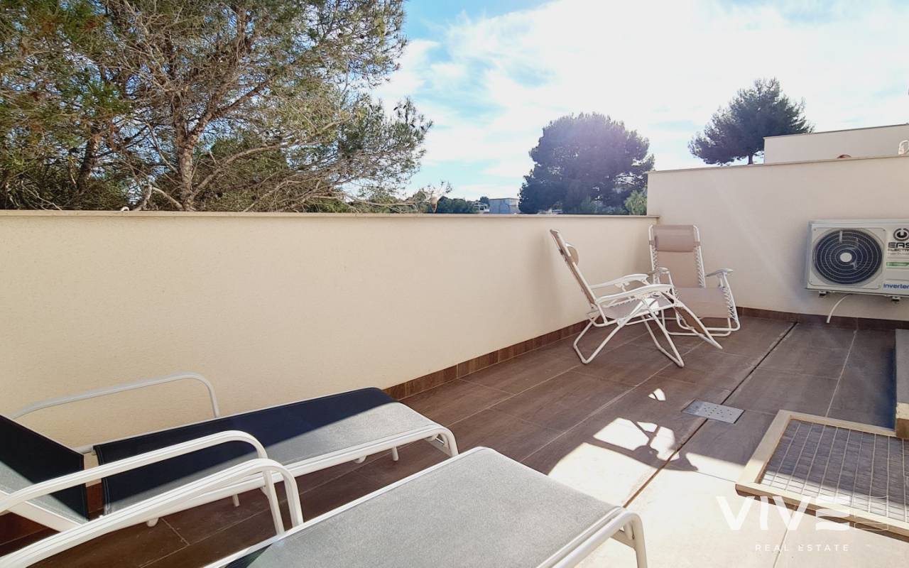 Die Immobilie bietet eine Wohnfläche von 70 m², aufgeteilt in ein helles Wohn- und Esszimmer mit offener Küche, zwei Schlafzimmer, zwei komplette Badezimmer und eine private Terrasse von 10 m² – ideal, um das mediterrane Klima das ganze Jahr über zu genießen.