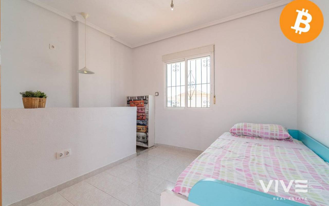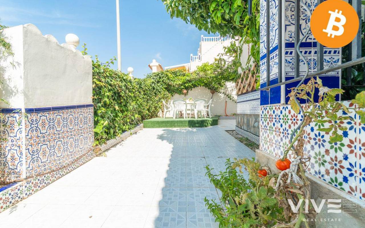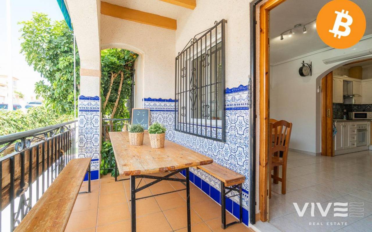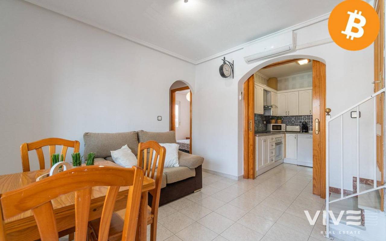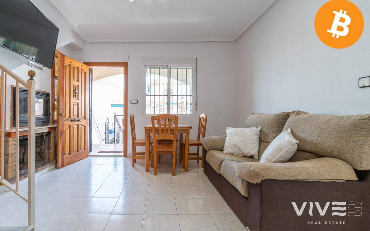Adosado en Los Altos ¡Bienvenido a esta encantadora casa adosada en la vibrante zona de Los Altos en Torrevieja! Con sus características excepcionales y ubicación privilegiada, esta propiedad de 3 habitaciones y un baño es el hogar perfecto para disfrutar de la vida mediterránea. En la planta baja se encuentra un salón, cocina independiente, 2 habitaciones y un baño. En la planta primera encontramos (separada) otra habitación con salida al solarium con caseta de madera anexada (pequeño gimnasio). Con una superficie de 61.00 m² y una amplia parcela de 120 m², esta casa ofrece un espacio acogedor y funcional para toda la familia. Desde el momento en que ingreses, te sorprenderá el estado impecable en el que se encuentra, lista para que puedas mudarte de inmediato y comenzar a disfrutarla. El diseño interior de la propiedad es mediterráneo y muy encantador, con una cocina equipada y una luminosa sala de estar que se abre a una terraza de aproximadamente 9 m², ofreciendo un espacio perfecto para relajarte, disfrutar de comidas al aire libre y deleitarte con las vistas despejadas que te rodean. Los detalles de calidad se pueden apreciar en toda la casa, desde la carpintería interior de madera hasta el suelo de gres que brinda un toque de elegancia. Además, la orientación suroeste garantiza una maravillosa entrada de luz natural durante todo el día. Pero eso no es todo. Esta propiedad cuenta con una variedad de extras que te brindarán comodidad y entretenimiento. Imagina relajarte en la piscina comunitaria en los cálidos días de verano, disfrutar de una barbacoa en el jardín, mantener tu rutina de ejercicios en el gimnasio privado ubicado en el solarium o simplemente disfrutar de una noche acogedora junto a la chimenea tipo casette empotrada. Además, la ubicación no podría ser mejor. A solo 2km de la playa, podrás disfrutar de días soleados en la costa mediterránea y explorar las hermosas playas de Torrevieja. También estarás cerca de todos los servicios necesarios, como autobuses, centros comerciales, centros médicos, colegios, supermercados y mucho más. Con un entorno tranquilo, zonas infantiles y una comunidad bien cuidada, esta casa ofrece el equilibrio perfecto entre comodidad, tranquilidad y acceso a todo lo que necesitas. ¡No dejes pasar esta oportunidad de convertir esta encantadora casa en tu nuevo hogar! Contáctanos ahora mismo para organizar una visita y descubrir todas las maravillas que te esperan en esta propiedad única en Torrevieja. Somos “Crypto-Friendly”, si te interesa hacer la compra con Criptomonedas, no dudes en pedirnos más información. Especialistas en Orihuela Costa