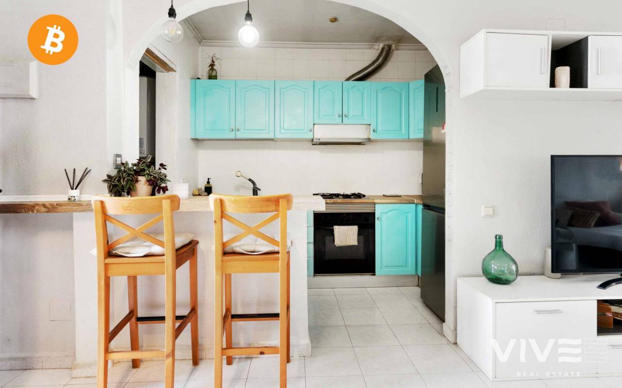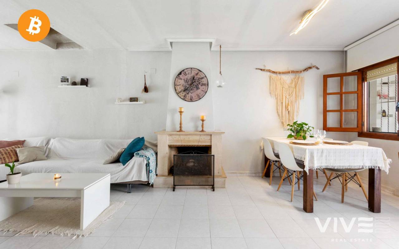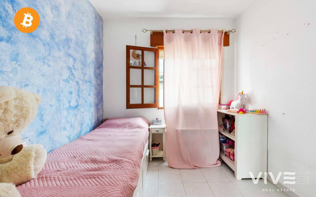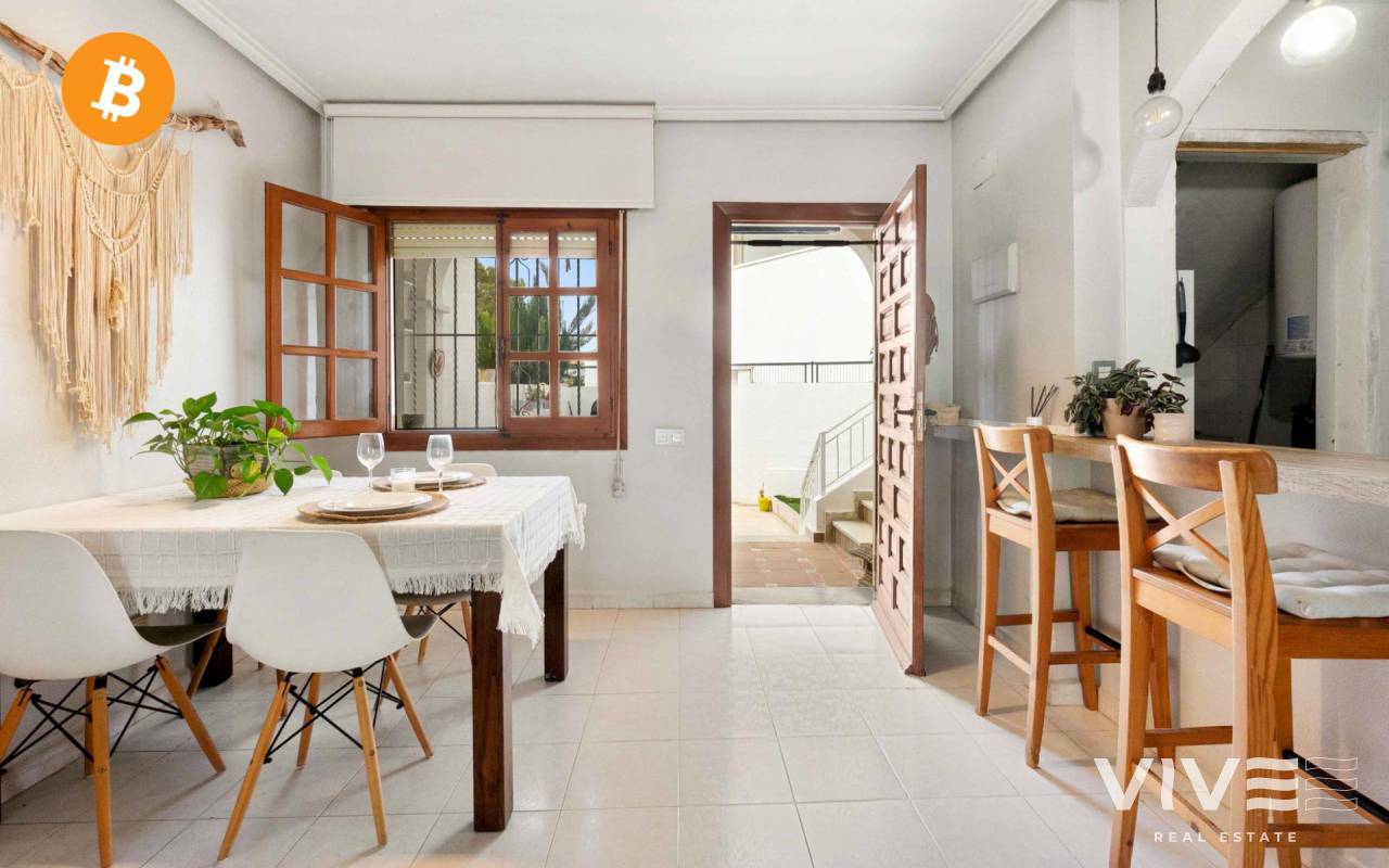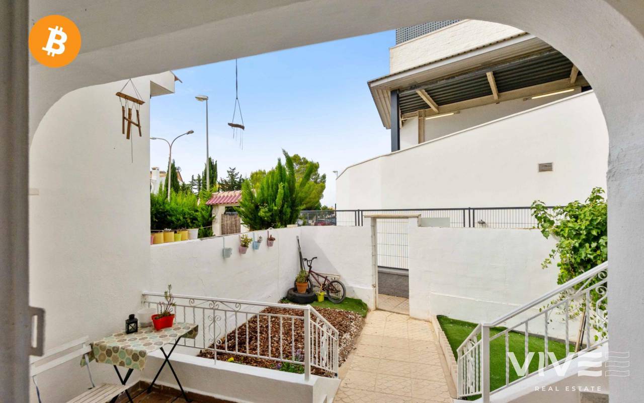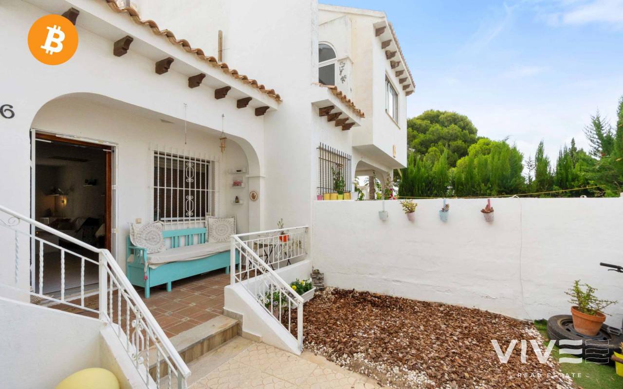 Adosado con encanto en Villamartin (Orihuela costa ) de estilo mediterráneo, muy cerca del campo de golf de Villamartín y club de golf de Campoamor, perfecto para vivir todo el año por su cercania a todos los servicios básicos supermercados, cafeterias, el centro comercial La Fuente se encuentra a pocos metros de la vivienda donde ahí puedes encontrar variedad de tiendas, pubs y restaurantes variados . La vivienda se encuentra en una urbanización muy tranquila, rodeada de zonas verdes, perfectas para pasear. Tiene 67 m2 construidos en la planta de abajo: entras desde la calle a un increíble jardin de 110 m2, perfecto para disfrutar del aire libre todo el año. Está distribuida en salón -comedor, amplia habitación de matrimonio, baño y cocina americana. Tiene una salida desde el salón al porche exterior con otro pequeño jardín con orientación sur,. En la zona delantera de la casa con acceso a la planta de arriba, puedes encontrar una escalera con entrada a la planta primera (no aparece en escritura) una amplia habitación con baño, que se puede utilizar como apartamento anexo a la vivienda, perfecto para tener en el caso de que se quiera más intimidad a la hora de tener visitas o simplemente aprovecharlo con loft . Es una vivienda con muchas posibilidades, tanto para vivir todo el año y también como inversión vacacional .No tiene pisicina comunitaria, por lo que es muy económico la comunidad todo el año. Suma (IBI) 98€ Anuales Comunidad 416€ Anuales