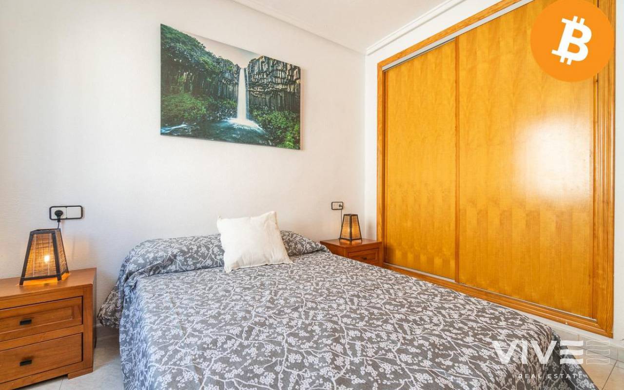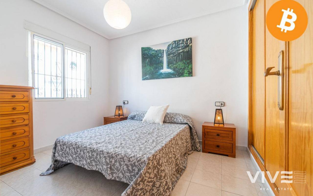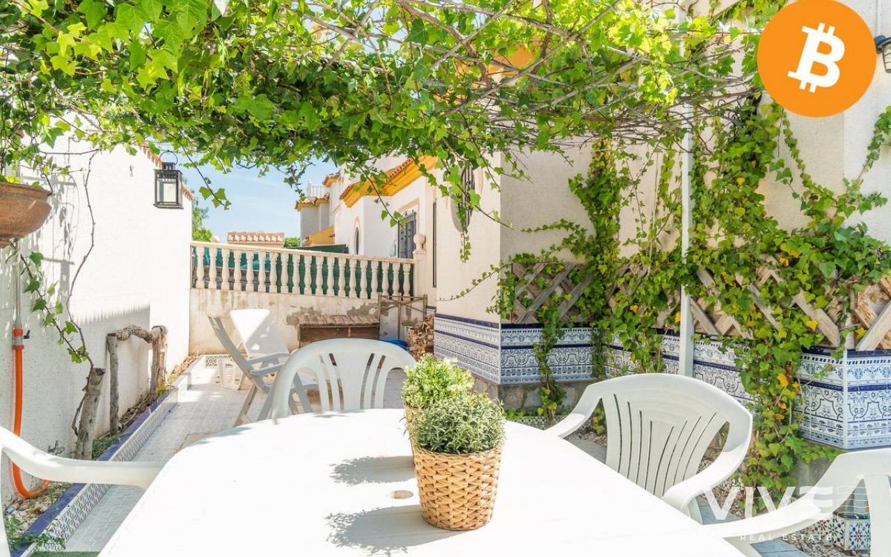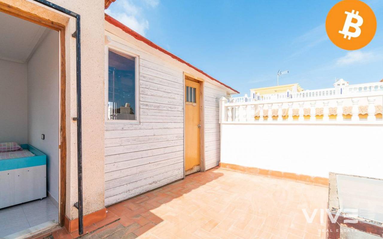 Adosado en Los Altos ¡Bienvenido a esta encantadora casa adosada en la vibrante zona de Los Altos en Torrevieja! Con sus características excepcionales y ubicación privilegiada, esta propiedad de 3 habitaciones y un baño es el hogar perfecto para disfrutar de la vida mediterránea. En la planta baja se encuentra un salón, cocina independiente, 2 habitaciones y un baño. En la planta primera encontramos (separada) otra habitación con salida al solarium con caseta de madera anexada (pequeño gimnasio). Con una superficie de 61.00 m² y una amplia parcela de 120 m², esta casa ofrece un espacio acogedor y funcional para toda la familia. Desde el momento en que ingreses, te sorprenderá el estado impecable en el que se encuentra, lista para que puedas mudarte de inmediato y comenzar a disfrutarla. El diseño interior de la propiedad es mediterráneo y muy encantador, con una cocina equipada y una luminosa sala de estar que se abre a una terraza de aproximadamente 9 m², ofreciendo un espacio perfecto para relajarte, disfrutar de comidas al aire libre y deleitarte con las vistas despejadas que te rodean. Los detalles de calidad se pueden apreciar en toda la casa, desde la carpintería interior de madera hasta el suelo de gres que brinda un toque de elegancia. Además, la orientación suroeste garantiza una maravillosa entrada de luz natural durante todo el día. Pero eso no es todo. Esta propiedad cuenta con una variedad de extras que te brindarán comodidad y entretenimiento. Imagina relajarte en la piscina comunitaria en los cálidos días de verano, disfrutar de una barbacoa en el jardín, mantener tu rutina de ejercicios en el gimnasio privado ubicado en el solarium o simplemente disfrutar de una noche acogedora junto a la chimenea tipo casette empotrada. Además, la ubicación no podría ser mejor. A solo 2km de la playa, podrás disfrutar de días soleados en la costa mediterránea y explorar las hermosas playas de Torrevieja. También estarás cerca de todos los servicios necesarios, como autobuses, centros comerciales, centros médicos, colegios, supermercados y mucho más. Con un entorno tranquilo, zonas infantiles y una comunidad bien cuidada, esta casa ofrece el equilibrio perfecto entre comodidad, tranquilidad y acceso a todo lo que necesitas. ¡No dejes pasar esta oportunidad de convertir esta encantadora casa en tu nuevo hogar! Contáctanos ahora mismo para organizar una visita y descubrir todas las maravillas que te esperan en esta propiedad única en Torrevieja. Somos “Crypto-Friendly”, si te interesa hacer la compra con Criptomonedas, no dudes en pedirnos más información. Especialistas en Orihuela Costa