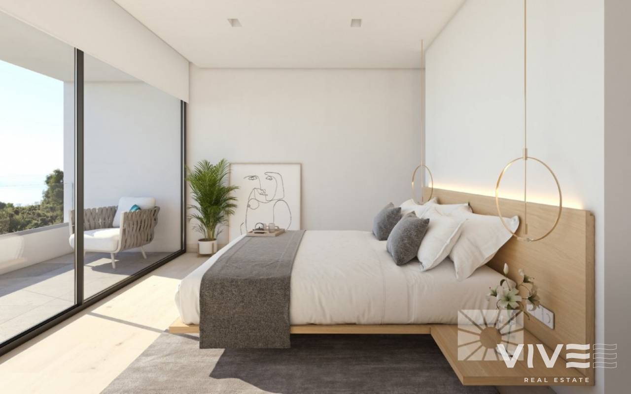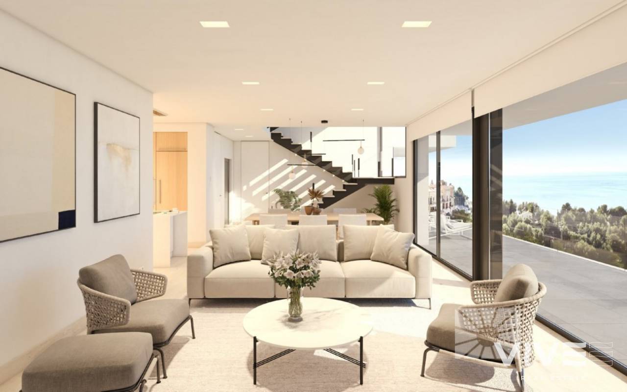 VILLA DE LUJO IMPRESIONANTES VISTAS AL MAR En Sierra de Altea, con impresionantes vistas al mar, nos encontramos con este chalet a estrenar de estilo minimalista, con las mejores calidades y un diseño perfecto. Chalet se distribuye en 3 plantas, la planta superior dispone de garaje para dos coches y un hall de entrada que nos permite acceder al resto de la propiedad. En el piso medio hay tres de los cuatro dormitorios de esta casa, dos dormitorios principales y dos dormitorios adicionales. El dormitorio principal ubicado en esta planta tiene la posición perfecta para disfrutar de las maravillosas vistas al mar, tiene acceso a una terraza privada y cuenta con baño en suite y vestidor. Los otros dos dormitorios también tienen sus propios baños en suite, amplios armarios y comparten una terraza. También hay armarios adicionales en el pasillo que conduce a los dormitorios. La planta principal se distribuye en dos zonas, separadas por un recibidor y la escalera. A un lado se encuentra el cuarto dormitorio con su baño en suite, vestidor y acceso a la terraza principal con área de porche. El otro lado es donde se encuentra un aseo de cortesía, una cocina abierta al comedor, con una isla central, en esta isla central se encuentra la zona de cocina y un bonito lugar para desayunar, el comedor con acceso directo a el porche y un salón muy luminoso. Tres espacios abiertos, resplandecientes con luz natural del Mediterráneo y, lo que es más importante, conectados con el exterior de la propiedad, con varios porches, un aseo exterior para invitados, una gran terraza y una piscina. La piscina tiene un lado infinito para que no te pierdas las vistas al mar ni un segundo. Villa está equipada con ascensor, sistema de seguridad, suelo radiante, aire acondicionado, iluminación técnica y zonas ajardinadas. Diseño, acabados, calidades y maravillosas vistas al mar resumen esta villa que le espera en Altea, Costa Blanca Norte.
