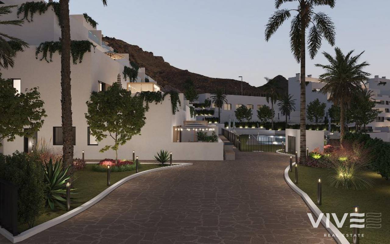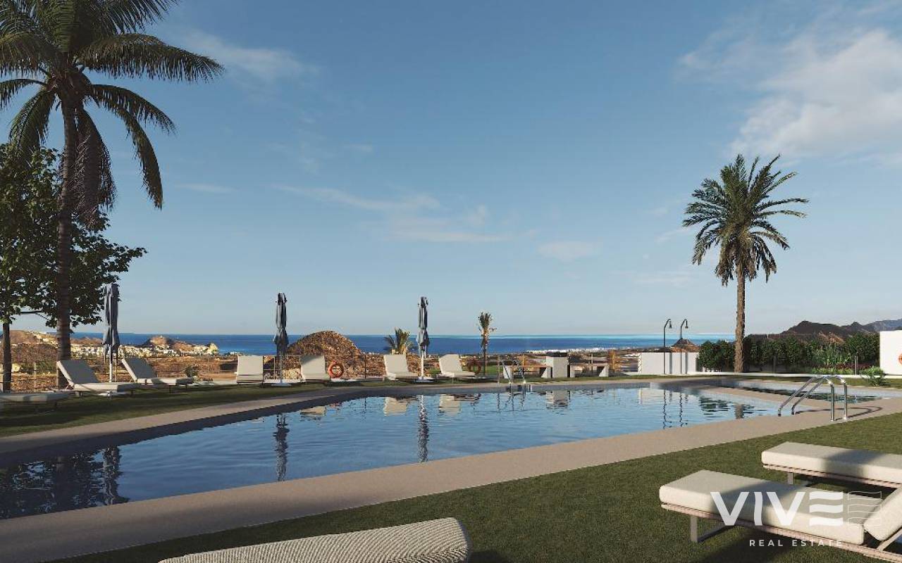 RESIDENCIAL DE OBRA NUEVA CERCA DE PULPI Complejo residencial de obra nueva compuesto por 205 exclusivas viviendas en primera línea del campo de golf Mundo Aguilón cerca de Pulpí. Todas las viviendas con amplias terrazas y con vistas al golf y al mar. El complejo dispone de bungalows, apartamentos y adosados de 1, 2 y 3 dormitorios, cocinas amuebladas y equipadas con electrodomésticos de alta gama, una excelente distribución y orientación, con plaza de garaje y trastero incluidos en el precio. La urbanización dispone de zonas comunes con 3 piscinas, pista de pádel, jardines con zona de juegos infantiles y club de playa. El complejo residencial está situado en el campo de golf Mundo Aguilón, en la zona de Pulpí (Almería), en el entorno privilegiado del mejor campo de golf desértico del sur de Europa y ofrece todo lo necesario para disfrutar del golf con su magnífico campo de 18 hoyos, una casa club con bar y restaurante. Sus increíbles vistas a la Sierra, su proximidad a La Geoda de Pulpí, un atractivo natural único, y su orientación al mar, ofrecen una magnífica oportunidad para disfrutar de la costa almeriense. En esta magnífica urbanización podrá visitar los alrededores, jugar al golf, disfrutar de excursiones al típico pueblo mediterráneo de Mojácar, navegar desde el Puerto Deportivo Juan Montiel por la reserva natural de Cabo Cope y Cabo de Gata, pescar o bucear, disfrutar de los conciertos nocturnos de música clásica en el Castillo de Lorca, comer pescado fresco del día en un restaurante junto al mar... y muchas más cosas por descubrir. Residencial cuenta además con las mejores comunicaciones, con aeropuertos a 45 minutos de Murcia o Almería y la próxima llegada del tren AVE de Alta Velocidad Madrid-Alicante-Murcia.
